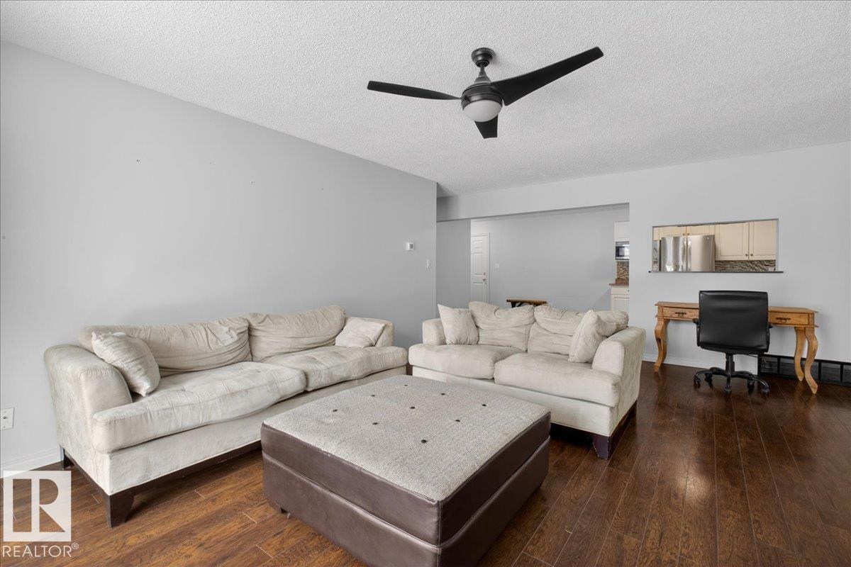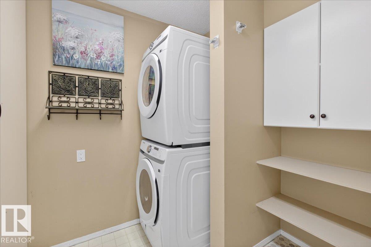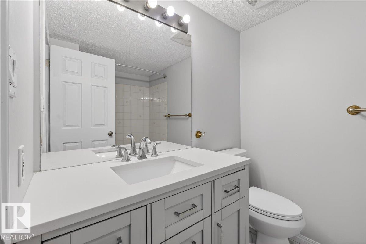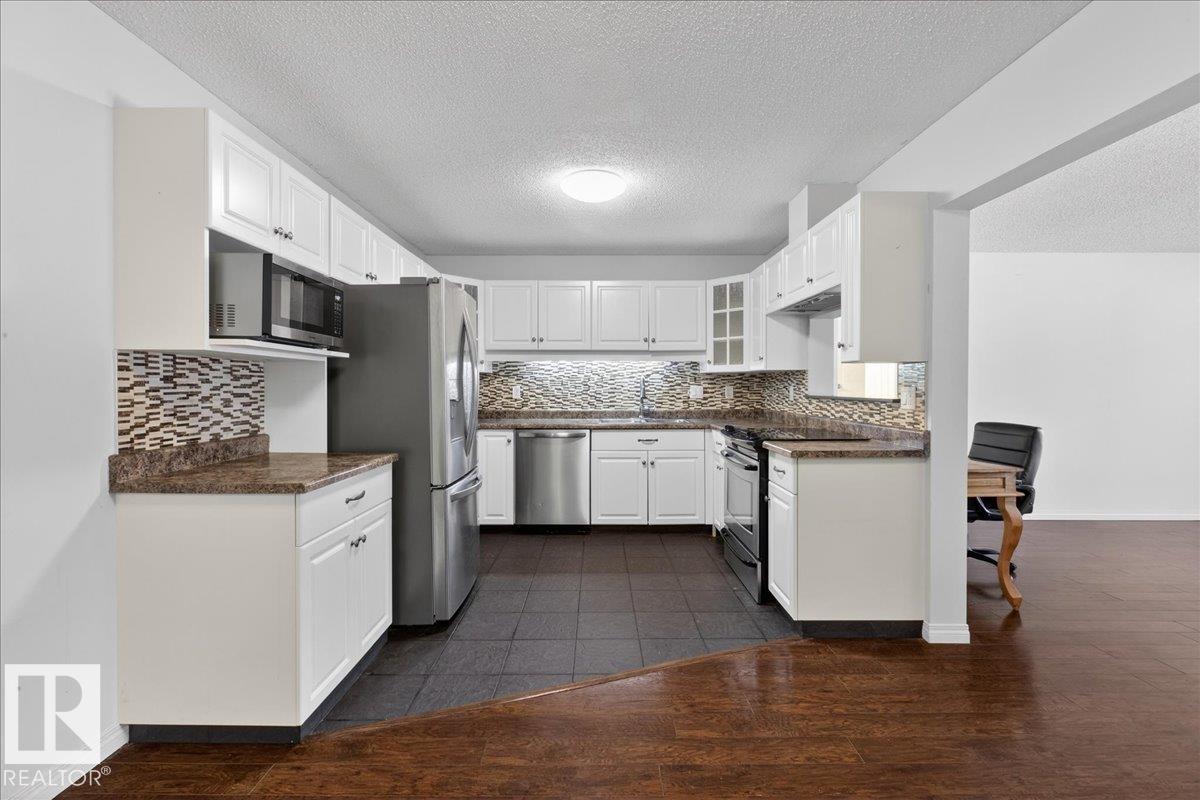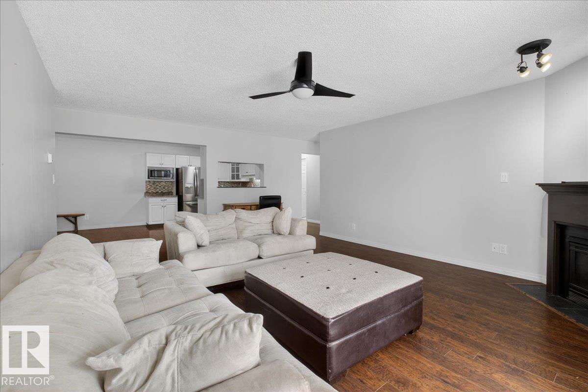 Enjoy downtown living without sacrificing space in this spacious condo offering over 1,300 sq ft of living space, just steps from the River Valley. This bright 3 bedroom, 2 full bathroom unit features a large exclusive-use south-facing patio/deck overlooking the courtyard?perfect for summer, complete with a natural gas BBQ line and additional storage. The updated kitchen offers white cabinetry, newer stainless steel appliances, ample counter space, and laminate flooring, opening to the dining area with a passthrough to the expansive living room filled with natural light from patio doors. The primary bedroom fits a king-sized bed and includes a 4-piece ensuite. Additional highlights include central A/C, a gas fireplace, in-suite laundry, and TWO heated underground parking stalls. Building amenities include an exercise room and sauna. Ideally located minutes to Downtown, Rogers Place, LRT, Little Italy, and Commonwealth Stadium.