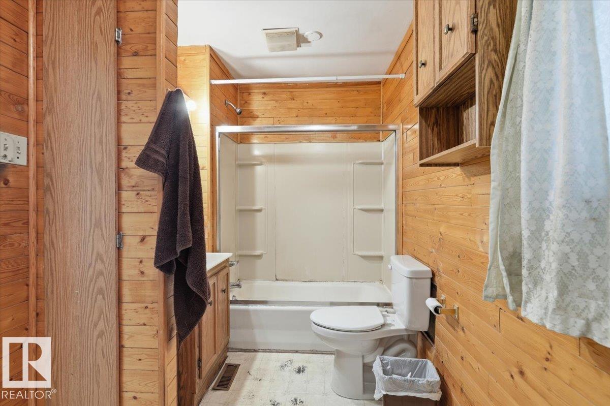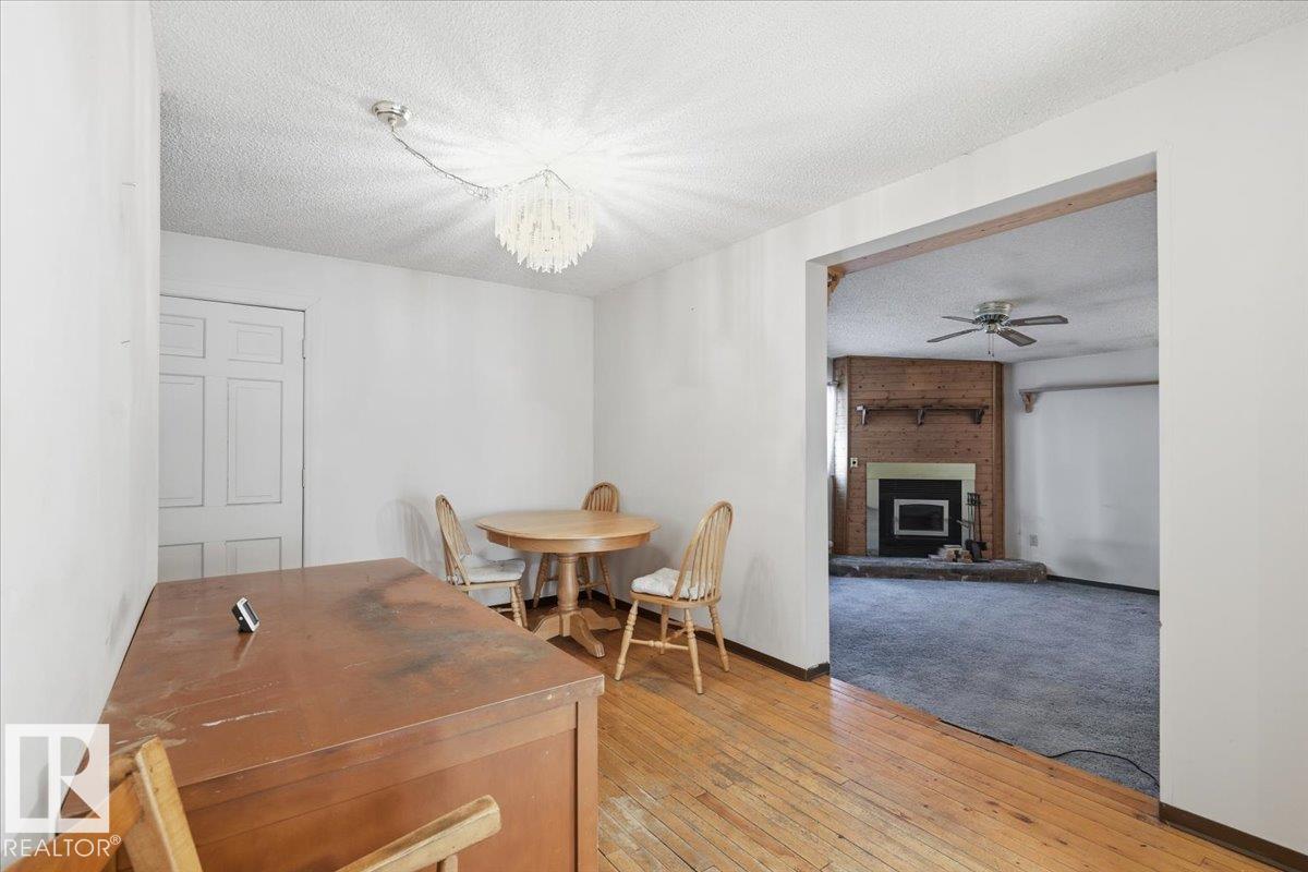 This 1461 sq/ft home is situated on a large fenced corner lot with a garage. The main floor of the home hosts the Primary Bedroom, a 4 piece Bathroom, Kitchen, Dining, and Large Living room with a fireplace. The Upper level is made up of two more bedrooms. A Chain-link fence surrounds the property with gates for access.