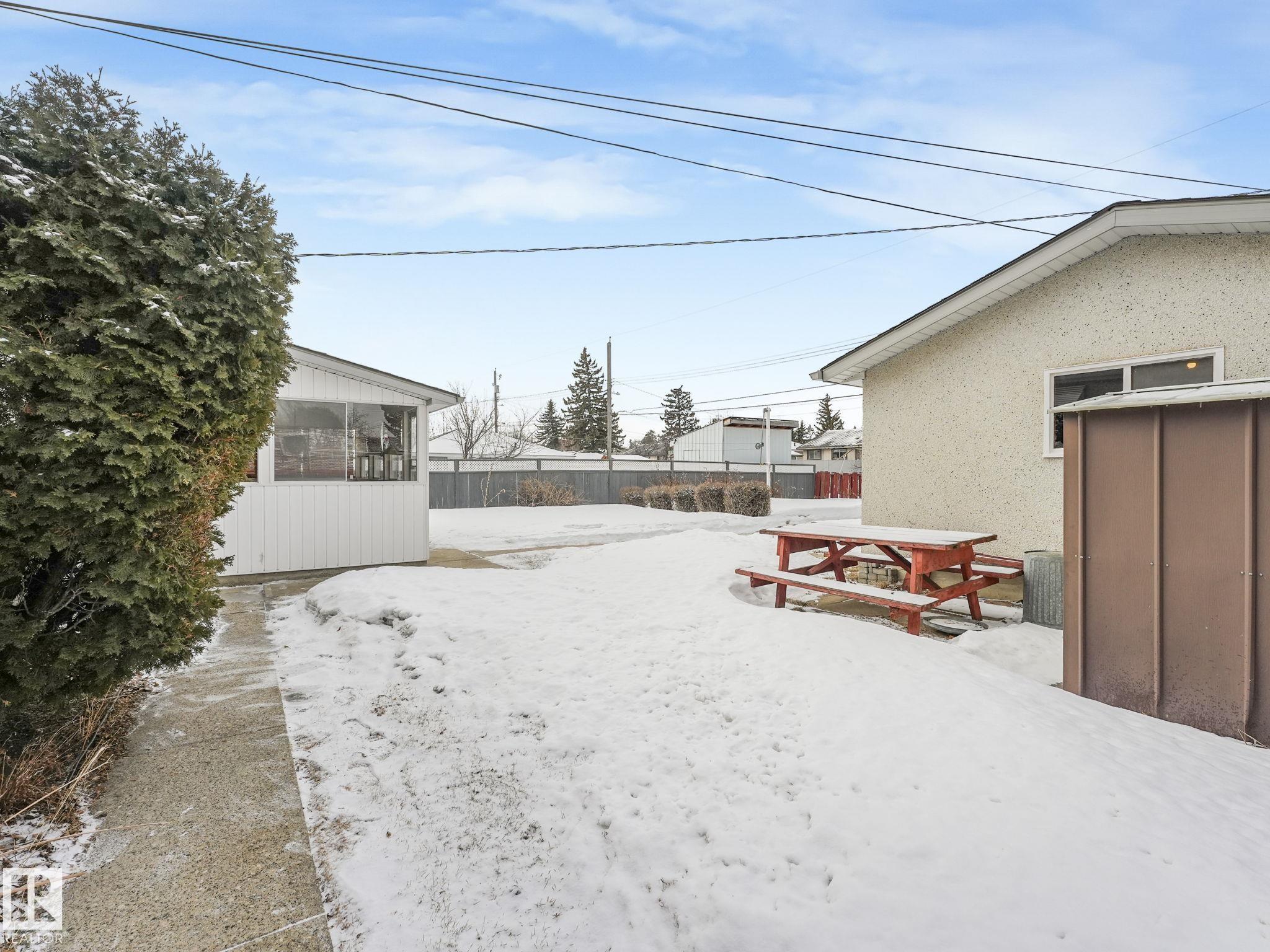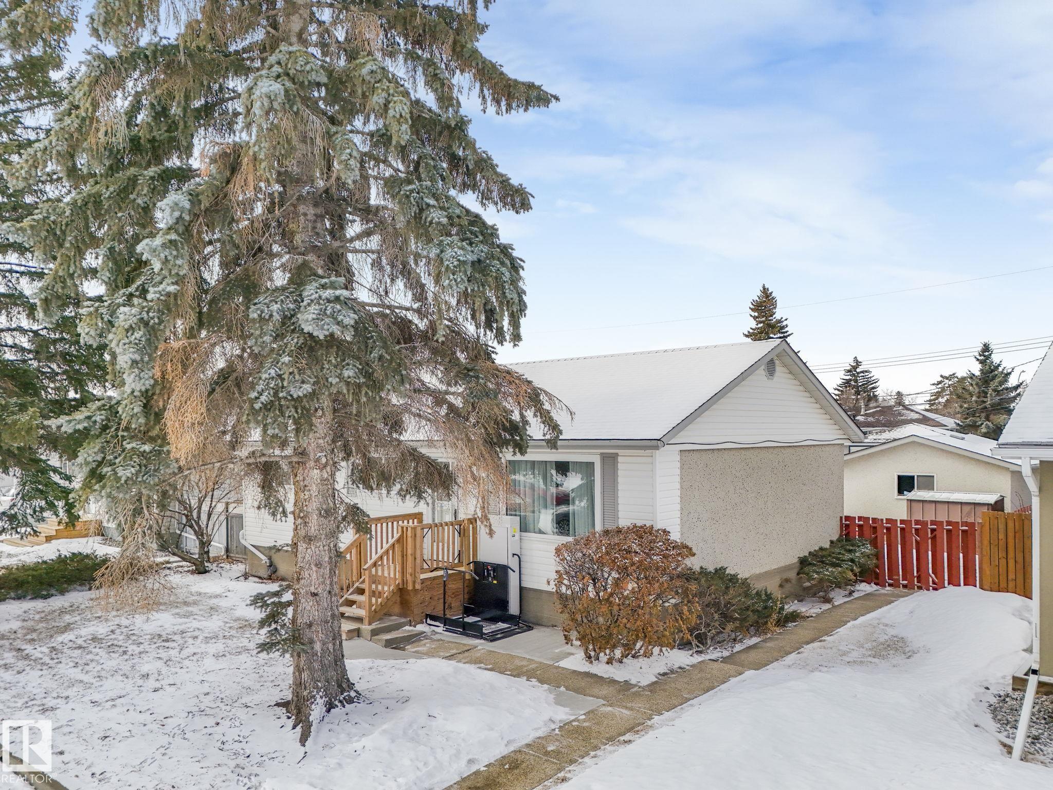 GREAT STARTER HOME 3 BEDROOMS ON MAIN FLOOR BASEMENT DEVELOPMENT HAS BEDROOM NO CLOSET WITH 3 PIECE BATH ATTACHED,VERY LARGE RUMPUS ROOM WITH A BAR,LAUNDRY AREA ,WORKSHOP AREA & STORAGE.GOOD SIZE LOT WITH GARAGE CURRENTLY HAS A WHEELCHAIR LIFT WITH HANDICAP PARKING FRONT OF HOME.SCHOOL ACROSS THE STREET AND CLOSE TO BUS STOP.HUGE ATTACHED SUNROOM TO ENJOY.NOT FAR FROM ALL YOUR SHOPPING NEEDS.ALSO FURNACE & HWT ARE NEWER .PLUS A WATER SOFTNER INCLUDED