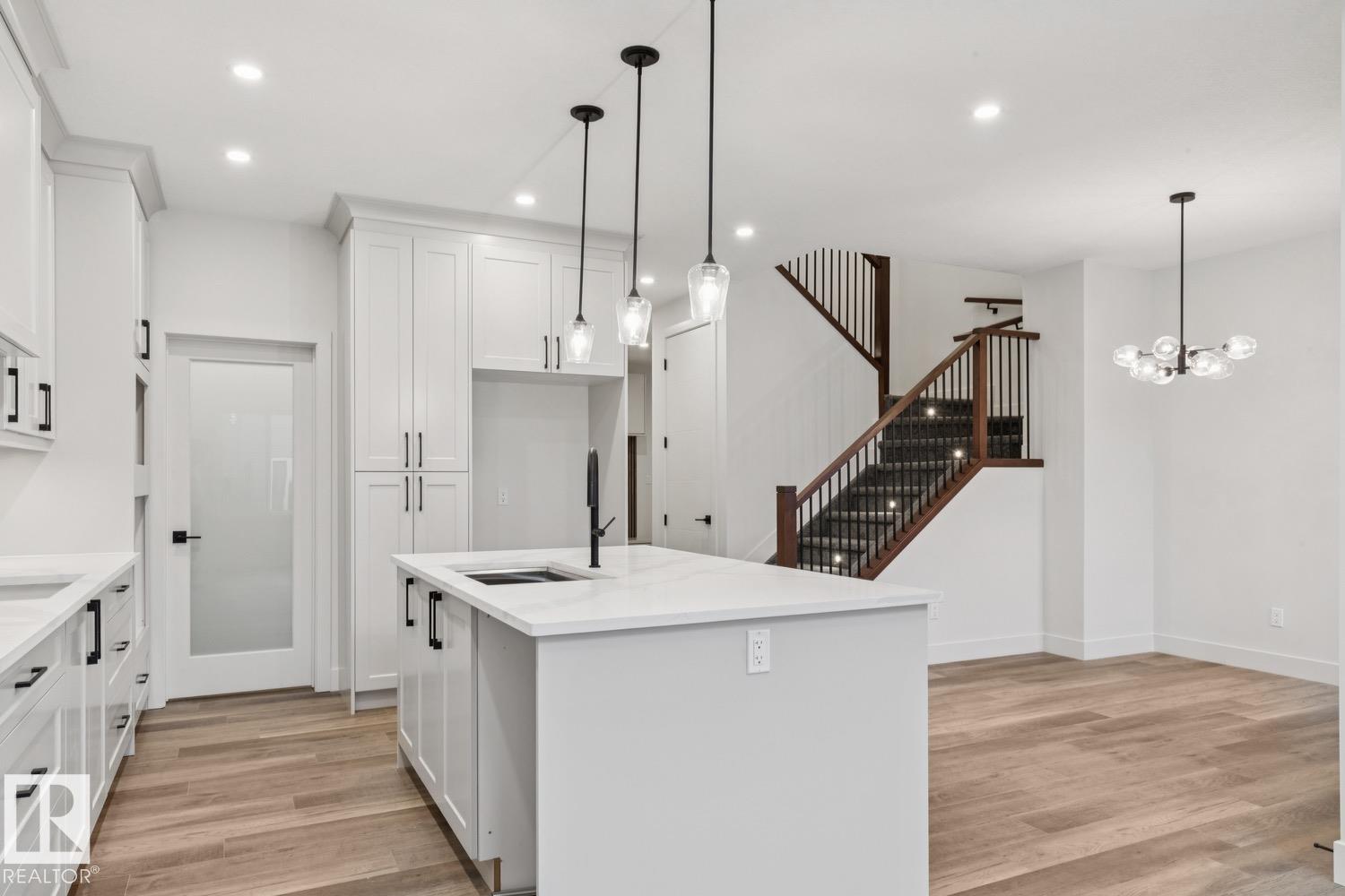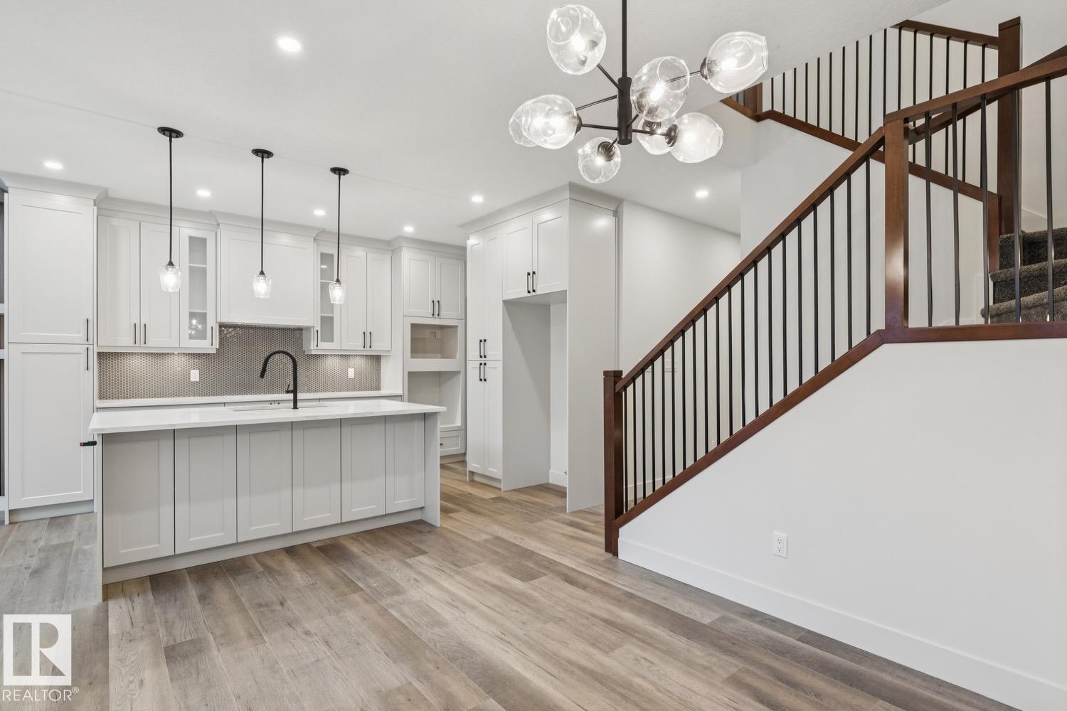 Welcome to this beautiful 3 bedroom + den, 3 bathroom home that includes a SPICE KITCHEN, OPEN TO ABOVE IN LIVING ROOM and SIDE SEPARATE ENTRANCE. This home features beautiful luxury vinyl plank, upgraded plumbing and lighting and more. The functional layout offers a den on the main level which can also be used as a bdrm, a full bath, generous dining area, huge living room with fireplace and a breathtaking kitchen. The custom kitchen features soft close cabinets, quartz countertops and fully equipped with stainless steel appliances. Not to forget, the kitchen also includes a spice kitchen that walks through to the mudroom. The upper level is where you will find the additional 3 bedrooms, 2 full bath, bonus room and laundry. The primary bedroom is absolute stunning and includes its own walk-in closet and beautiful 5pc ensuite with his and her sinks. The side entrance offers the ability to develop your future basement suite. Located minutes to all your shopping needs, schools and public transportation.
