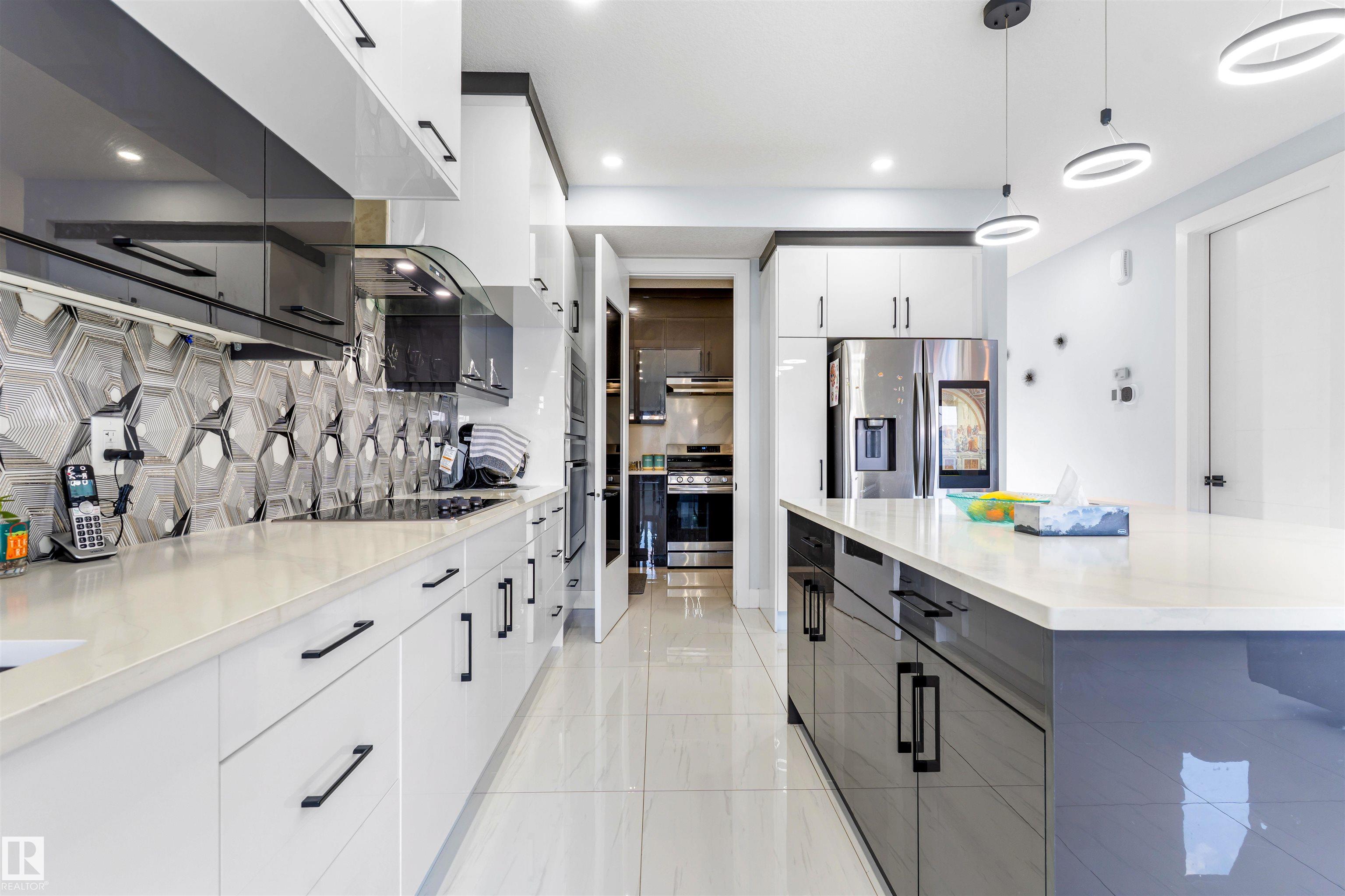 Welcome to this beautiful 2-storey home in the desirable community of Laurel offering 2,563+ sq ft of above-grade living space. This spacious home also features a separate entrance to the basement and a spice kitchen, making it perfect for large families and future basement development potential. The main floor offers a bright open layout with a large living room, family room, dining area, main kitchen with a separate spice kitchen, pantry, and a bedroom with a full 3-piece bathroom, ideal for guests or extended family. Upstairs features a spacious primary bedroom with a 5-piece ensuite and walk-in closet, along with two additional bedrooms, another full bathroom, and a large bonus room/den, providing plenty of space for comfortable family living. The unfinished basement with separate entrance offers excellent potential for future development or a secondary suite. Located in Laurel, this home provides easy access to Anthony Henday Drive and Whitemud Drive and is close to schools, parks, shopping.