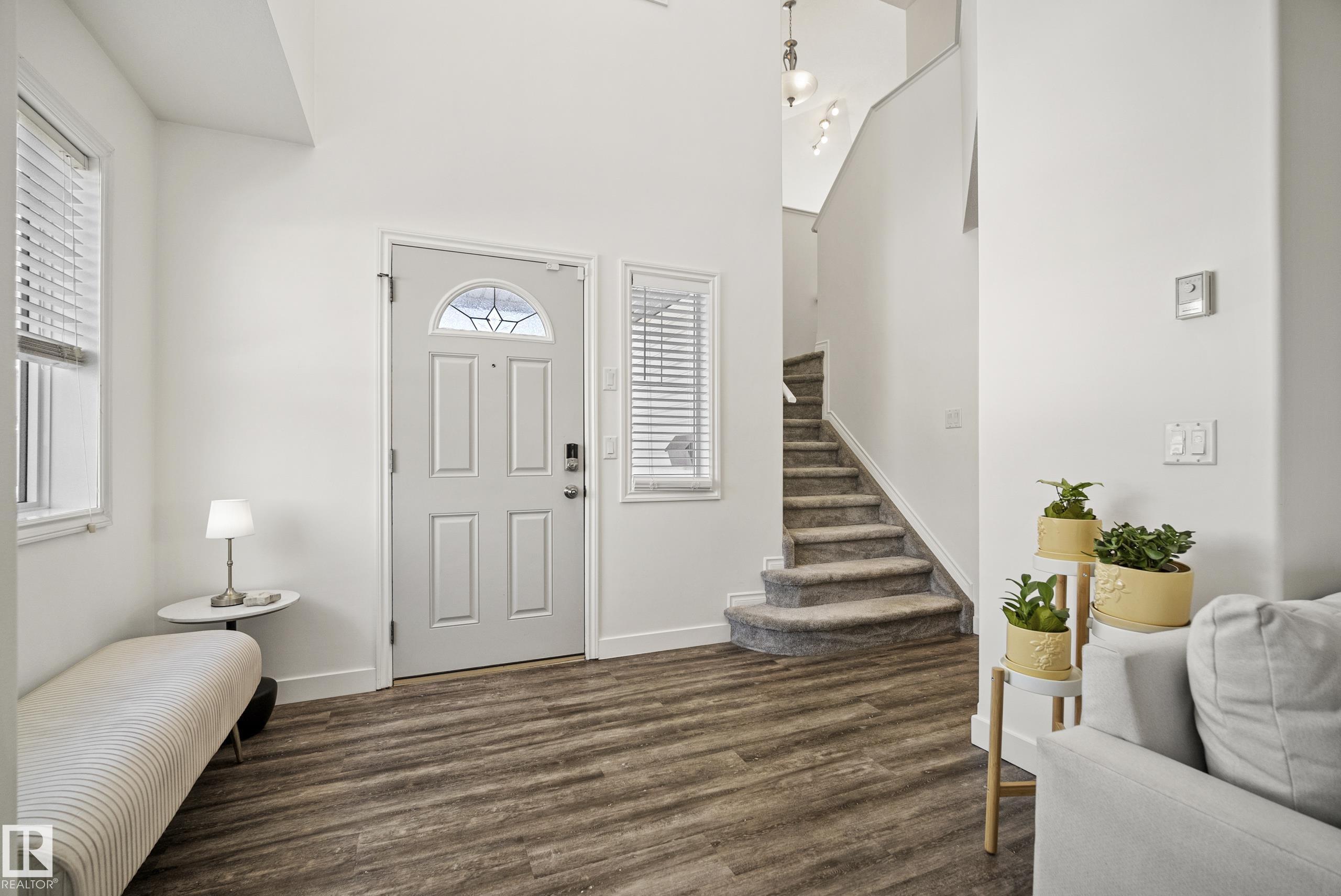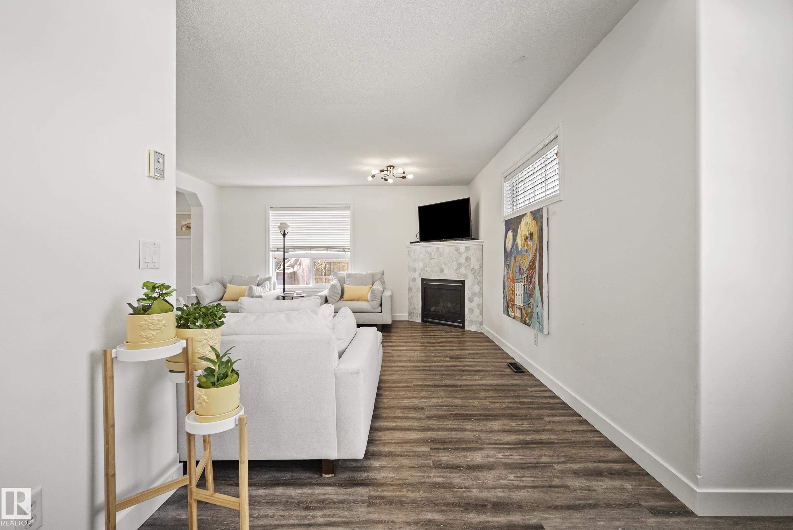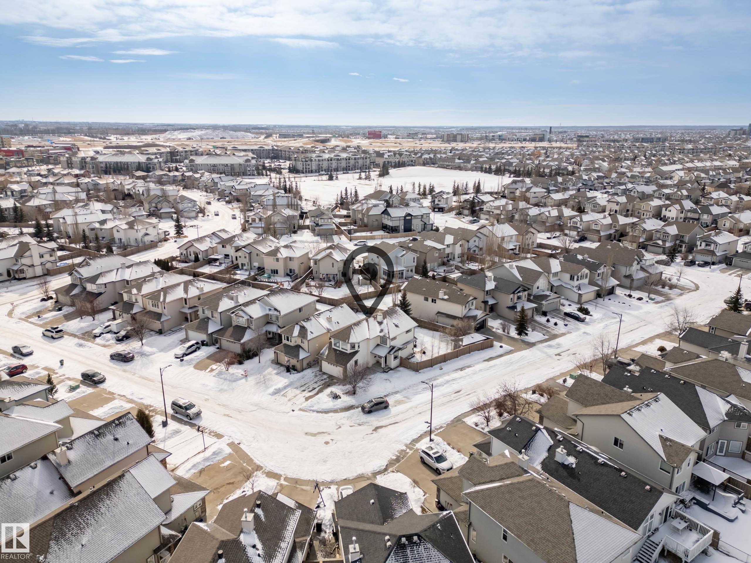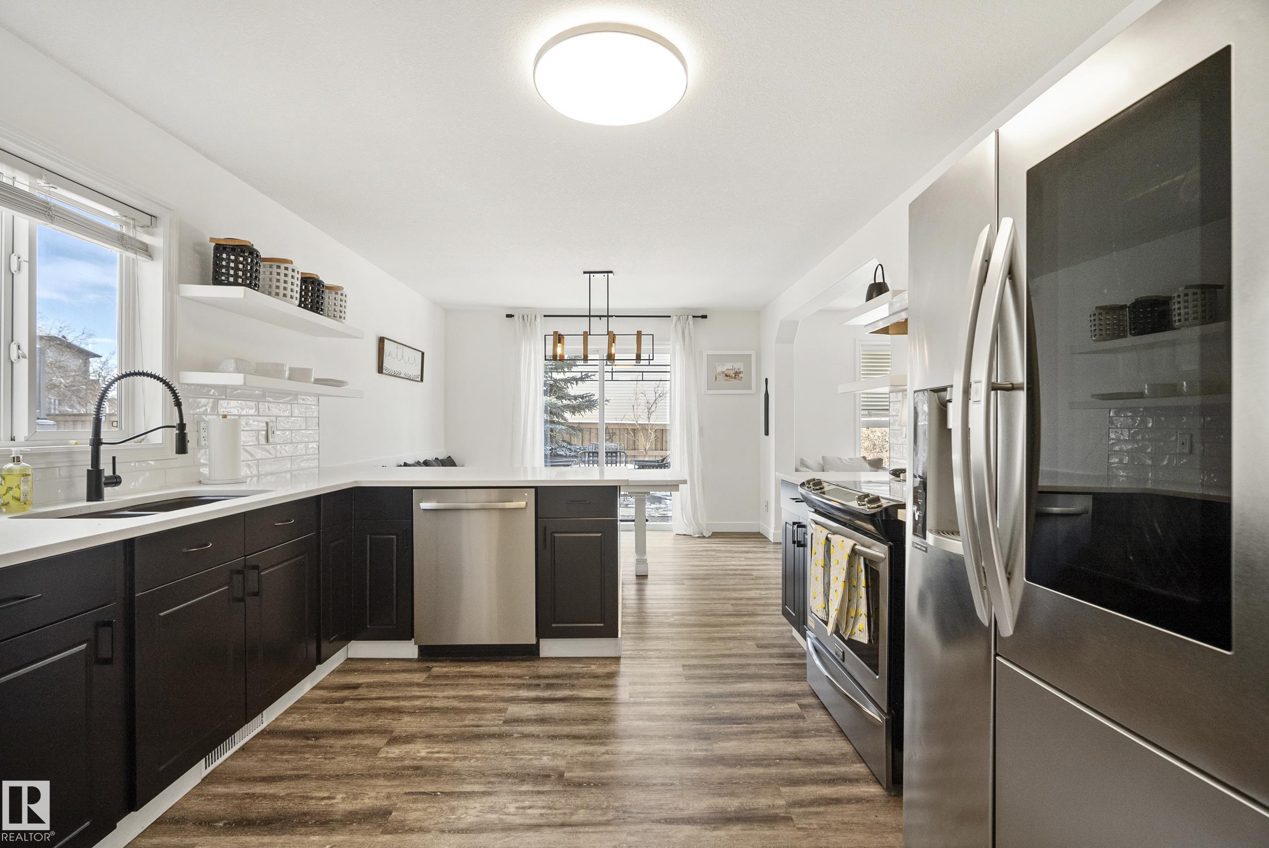 Beautifully renovated, fully finished 2 storey home on a large corner lot in the heart of South Terwillegar! Welcomed by an impressive grand foyer w/ 17' ceiling flowing into the bright & modern main floor flooded w/ natural light from the SW facing yard. The updated kitchen features white quartz countertops, white artisan tile backsplash & premium s/s appliances w/ an induction stove & french door fridge. LVP flooring & modern light fixtures throughout the main floor giving a clean, contemporary feel. Warm & inviting living room w/ gas fireplace & stunning marble tile surround. A convenient 2 pc powder room & laundry complete the main level. Upstairs offers a spacious bonus room w/ vaulted ceilings, the primary retreat w/ 4 pc ensuite & w/i closet, plus 2 additional bedrooms & a 4 pc bath. The fully finished basement features a large rec room w/ recessed lighting, plush carpet & barn door leading to the 4th bedroom. Enjoy A/C & the sunny SW yard w/ deck, exposed aggregate patio, u/g sprinklers & Shed