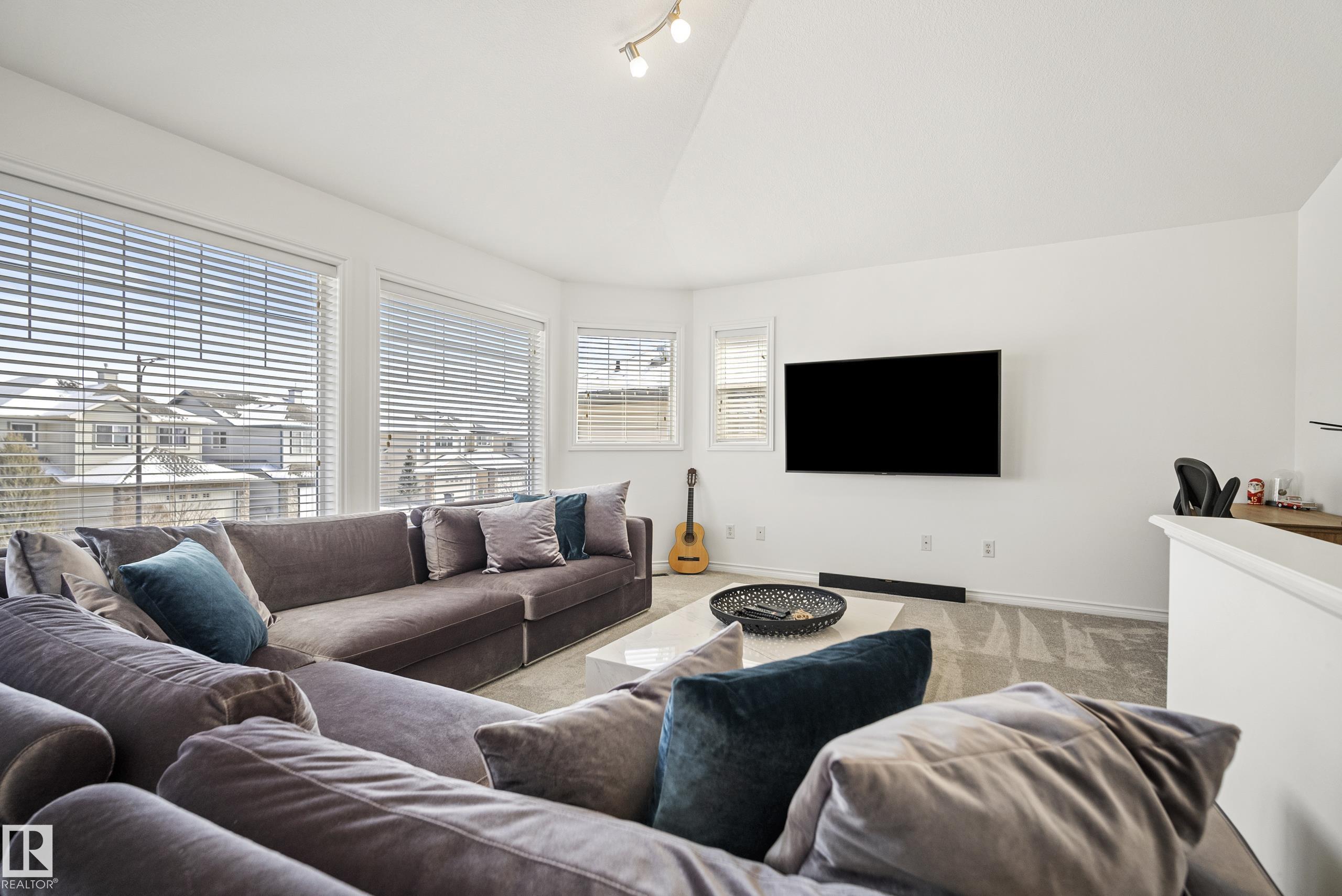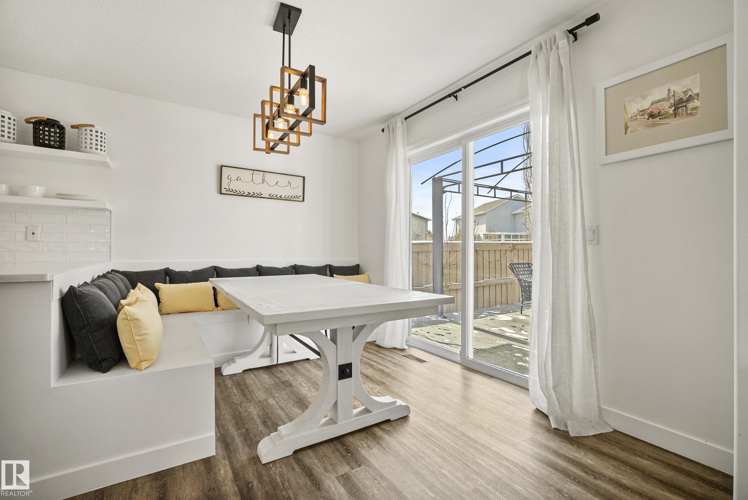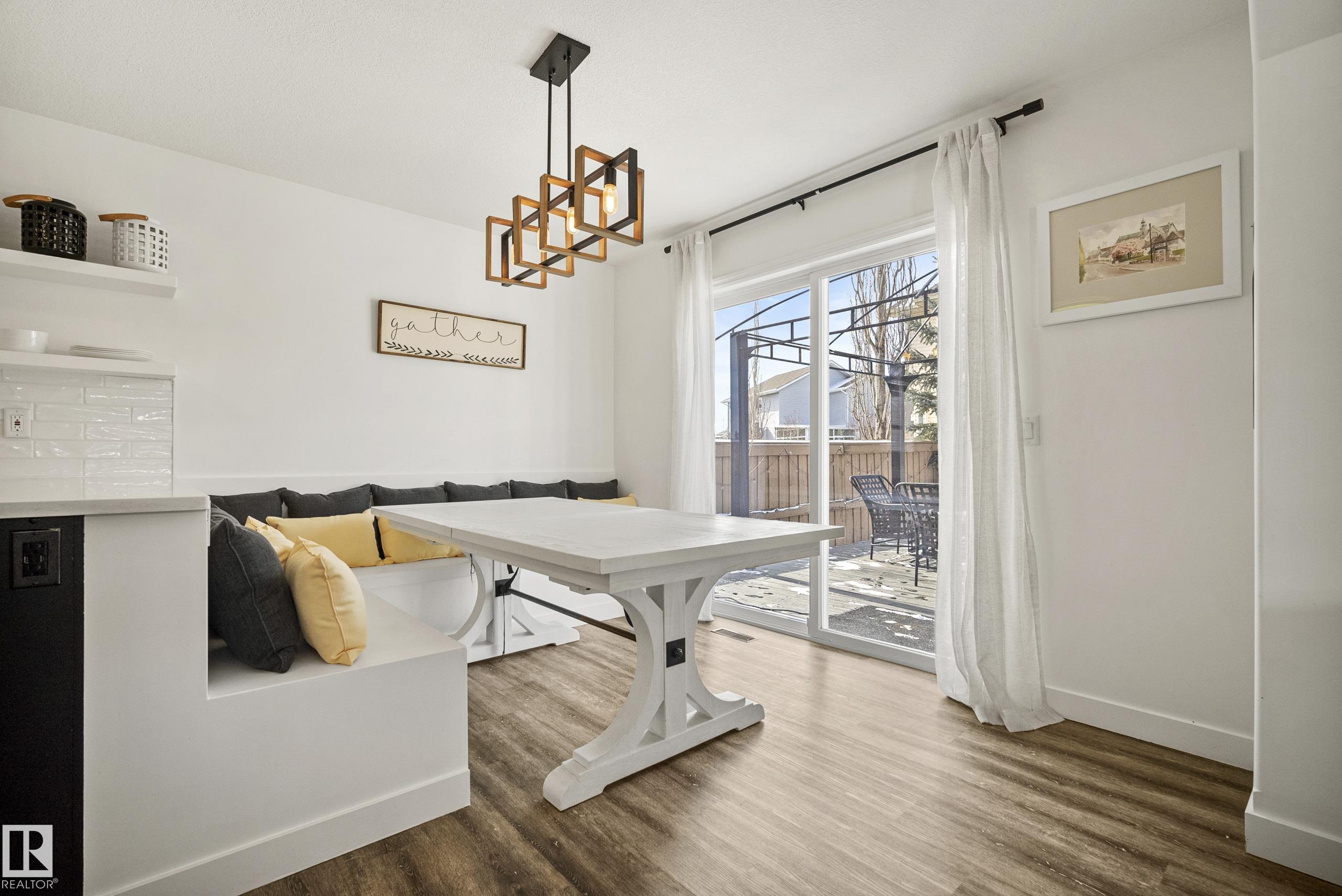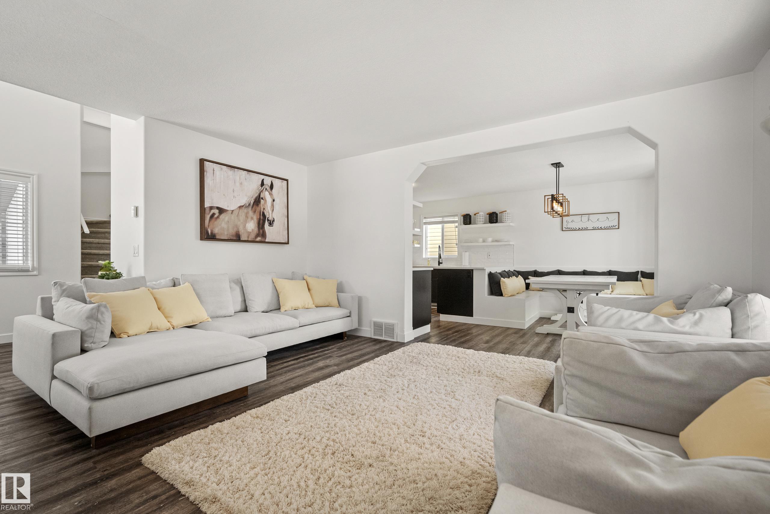 Beautifully renovated, fully finished 2 storey home on a large corner lot in the heart of South Terwillegar! Welcomed by an impressive grand foyer w/ 17' ceiling flowing into the bright & modern main floor flooded w/ natural light from the SW facing yard. The updated kitchen features white quartz countertops, white artisan tile backsplash & premium s/s appliances w/ an induction stove & french door fridge. LVP flooring & modern light fixtures throughout the main floor giving a clean, contemporary feel. Warm & inviting living room w/ gas fireplace & stunning marble tile surround. A convenient 2 pc powder room & laundry complete the main level. Upstairs offers a spacious bonus room w/ vaulted ceilings, the primary retreat w/ 4 pc ensuite & w/i closet, plus 2 additional bedrooms & a 4 pc bath. The fully finished basement features a large rec room w/ recessed lighting, plush carpet & barn door leading to the 4th bedroom. Enjoy A/C & the sunny SW yard w/ deck, exposed aggregate patio, u/g sprinklers & Shed