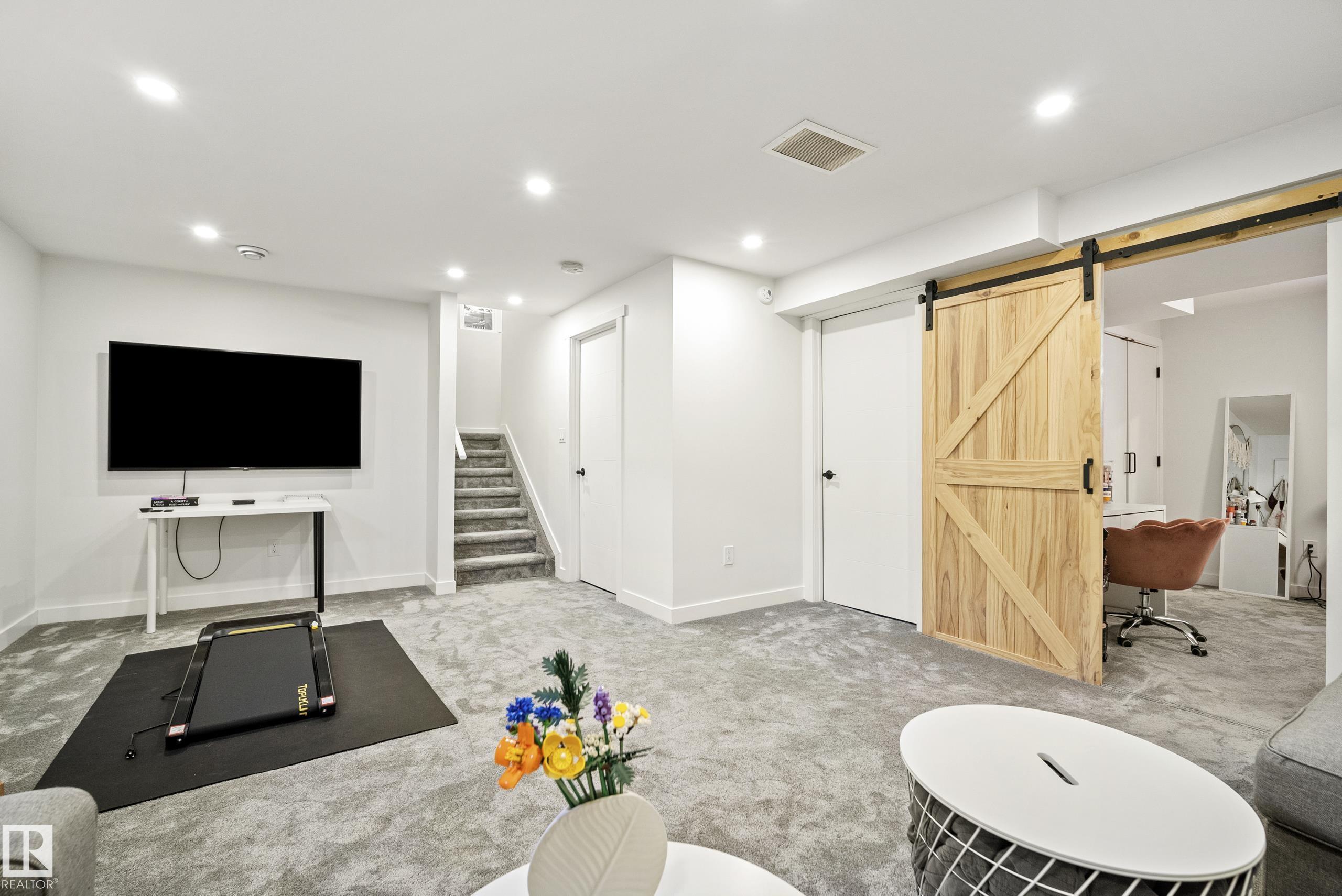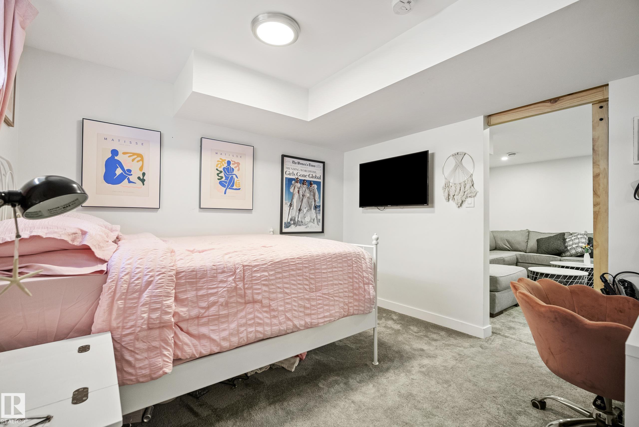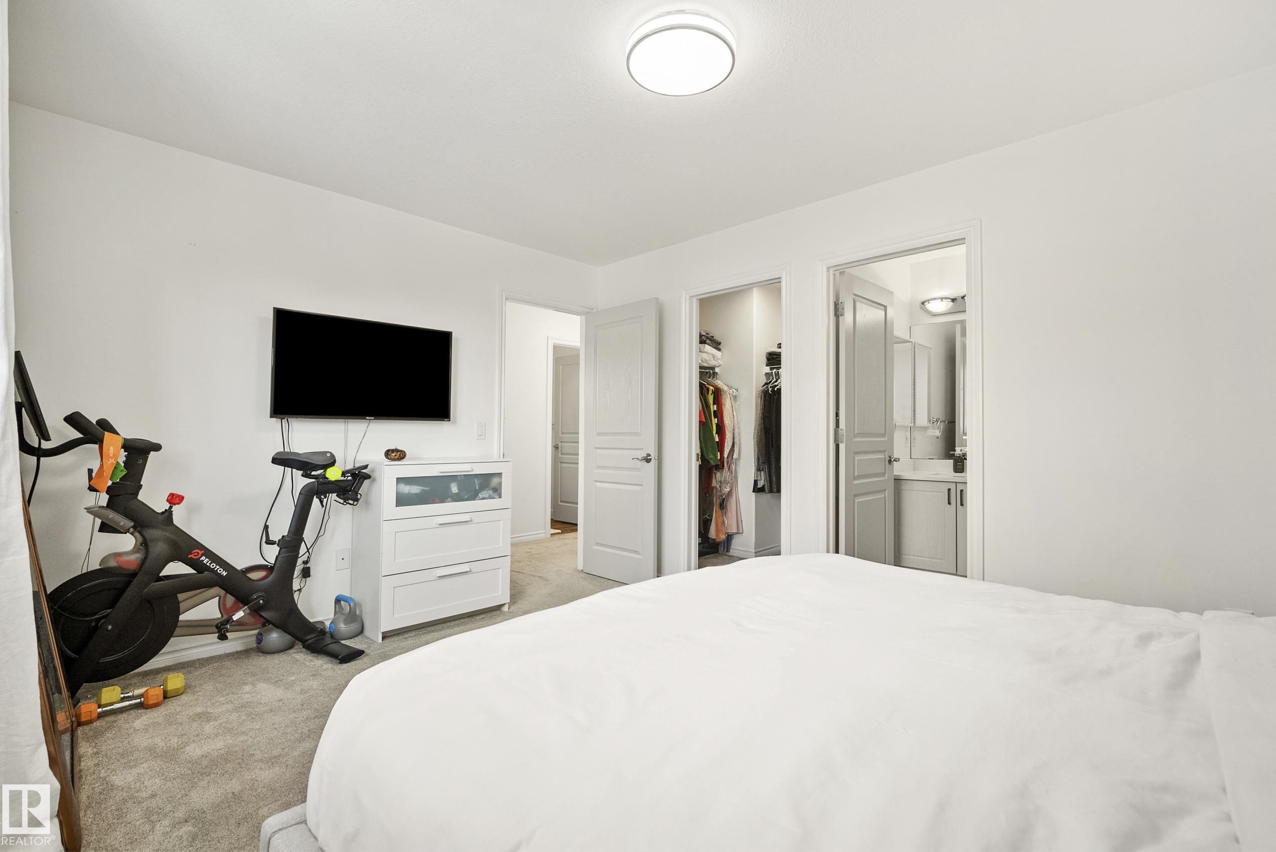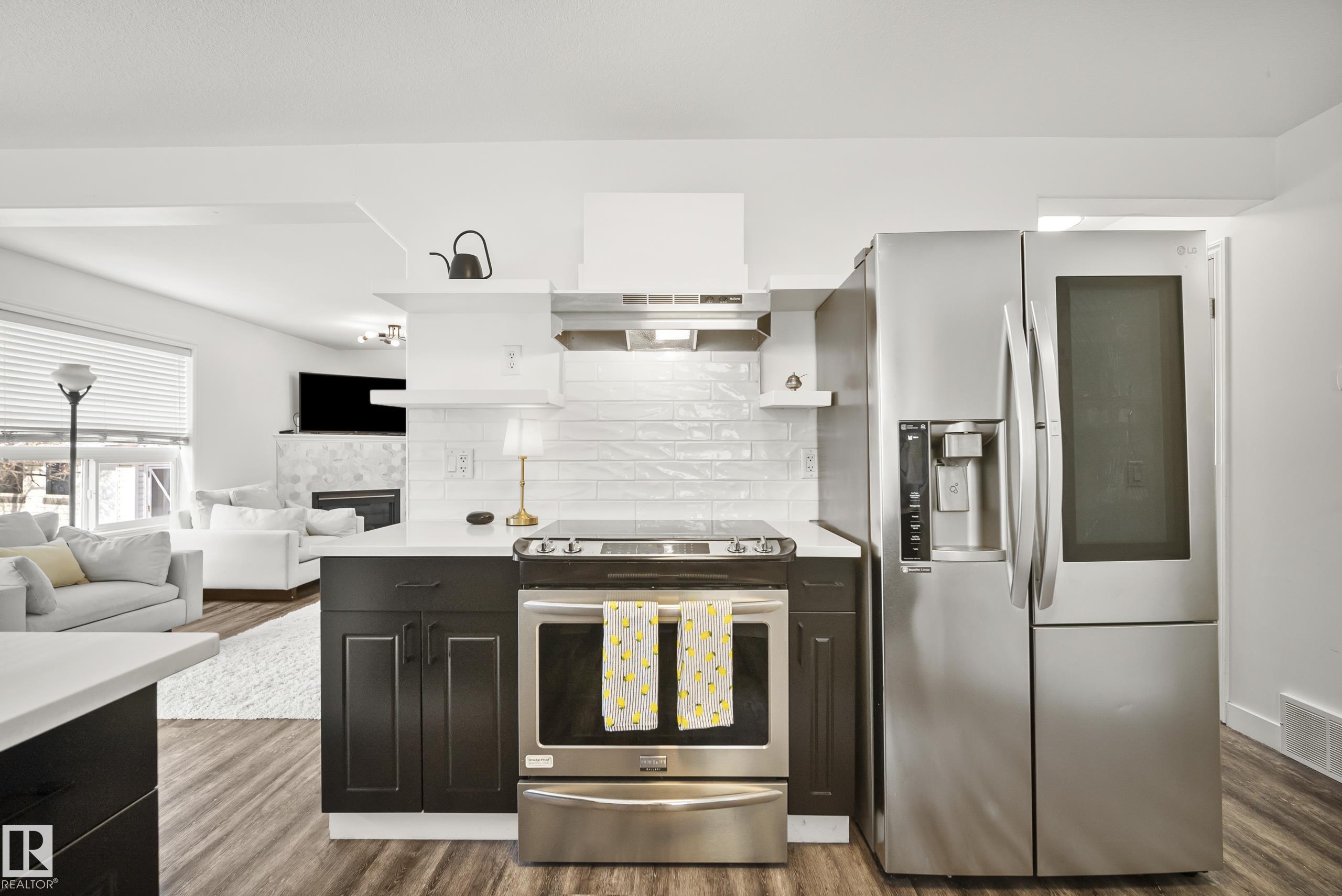Beautifully renovated, fully finished 2 storey home on a large corner lot in the heart of South Terwillegar! Welcomed by an impressive grand foyer w/ 17' ceiling flowing into the bright & modern main floor flooded w/ natural light from the SW facing yard. The updated kitchen features white quartz countertops, white artisan tile backsplash & premium s/s appliances w/ an induction stove & french door fridge. LVP flooring & modern light fixtures throughout the main floor giving a clean, contemporary feel. Warm & inviting living room w/ gas fireplace & stunning marble tile surround. A convenient 2 pc powder room & laundry complete the main level. Upstairs offers a spacious bonus room w/ vaulted ceilings, the primary retreat w/ 4 pc ensuite & w/i closet, plus 2 additional bedrooms & a 4 pc bath. The fully finished basement features a large rec room w/ recessed lighting, plush carpet & barn door leading to the 4th bedroom. Enjoy A/C & the sunny SW yard w/ deck, exposed aggregate patio, u/g sprinklers & Shed