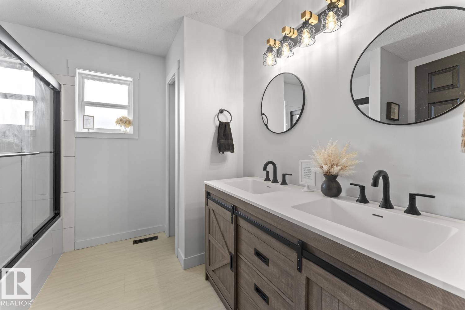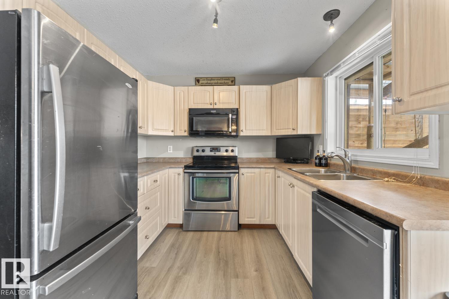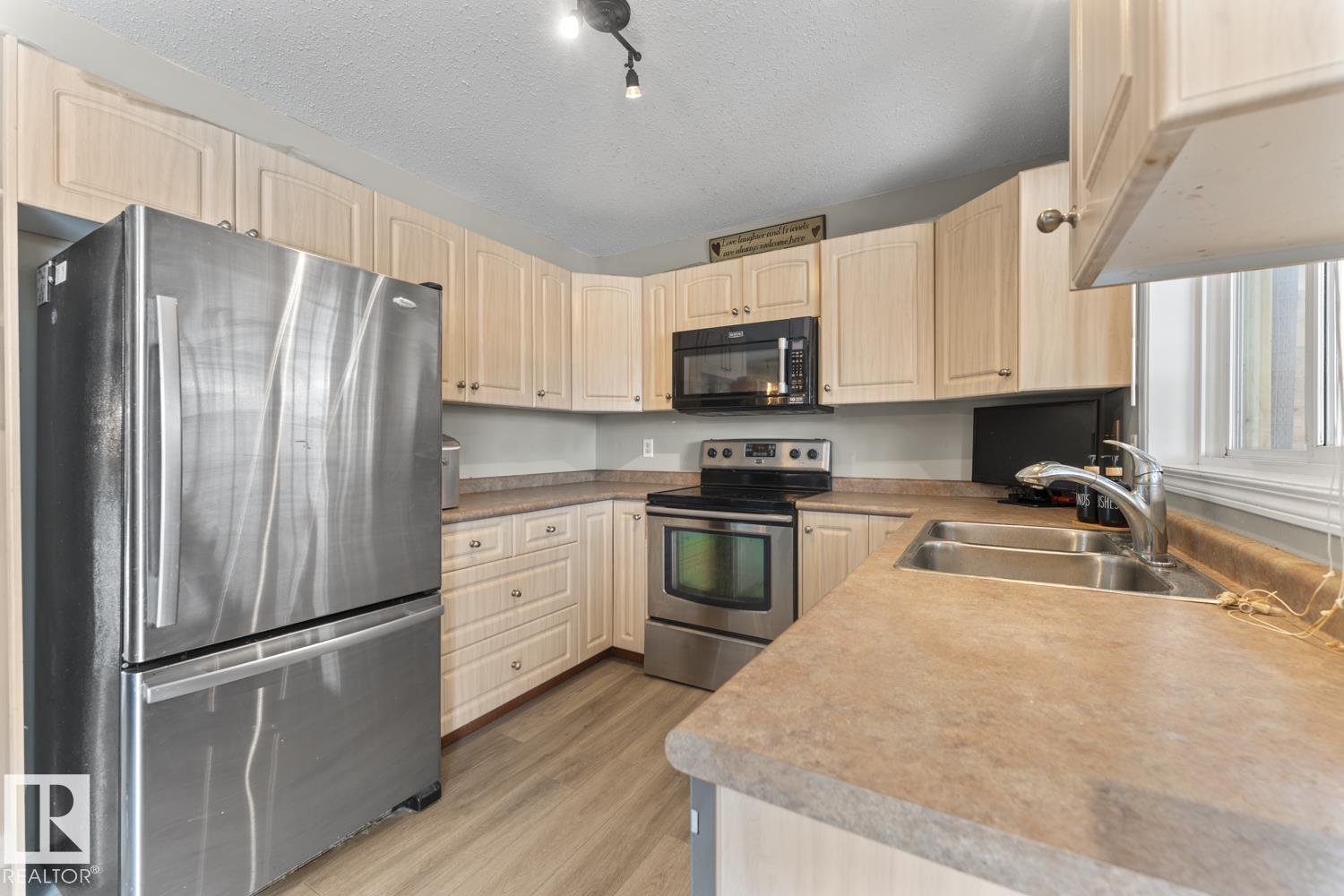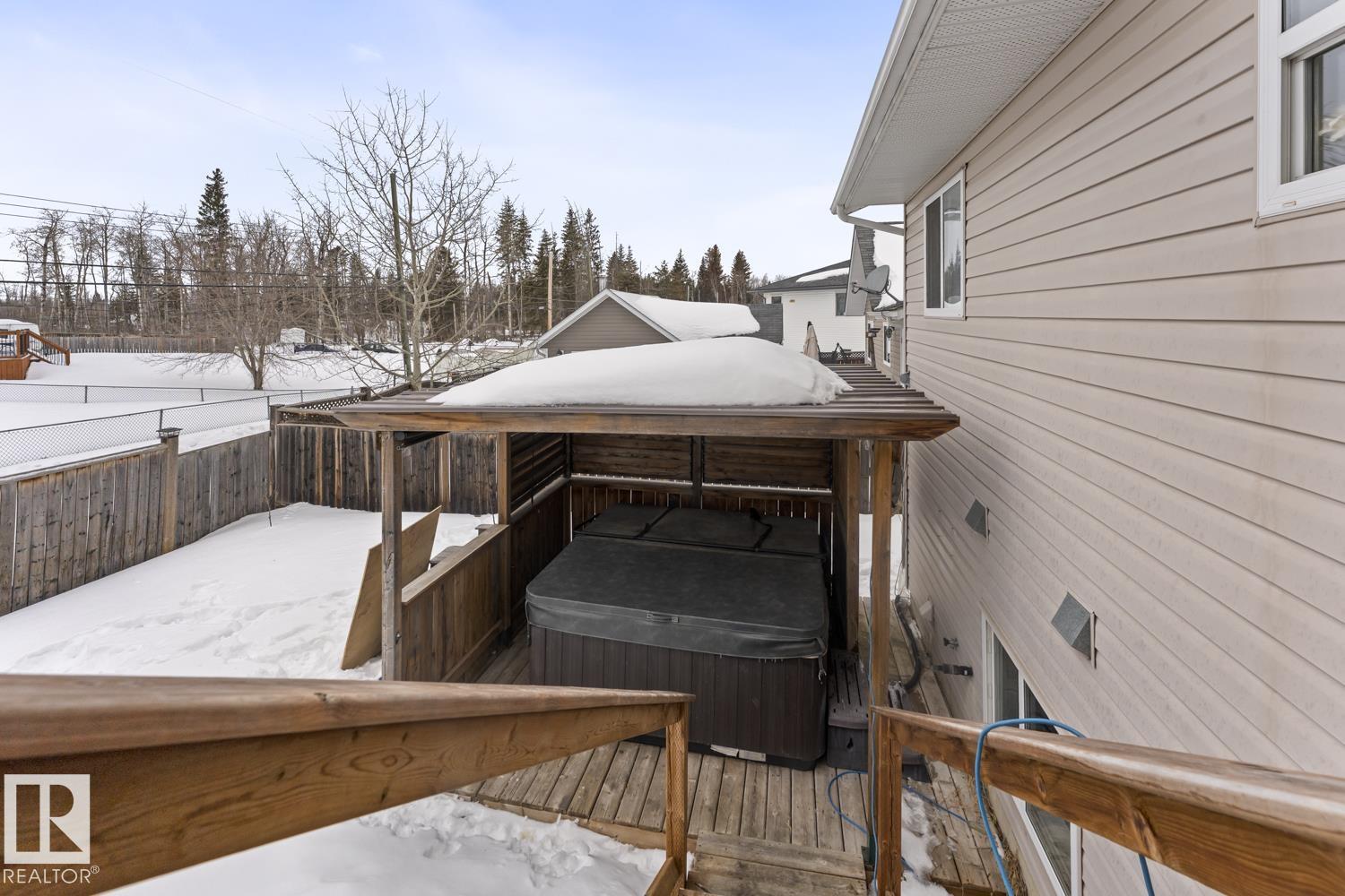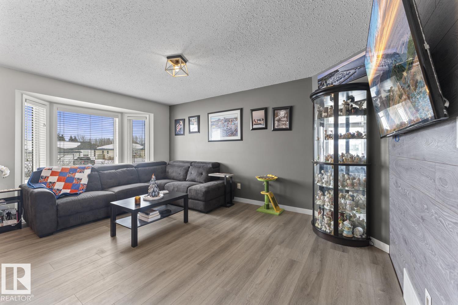 This 1022 SF bi-level style home, is located on a quiet cul-de-sac in Cold Lake South, close to parks, 4 Wing, shopping, schools and more! Main floor features NEW vinyl plank flooring throughout with large living room and big window! Large dining area leads through sliding doors to large covered deck with privacy slats, as well as a lower level deck with covered Pergola. 2 bedrooms on main level including large primary bedroom with walk-in closet. A newly upgraded main bathroom has been completely renovated with new shower/tub, flooring, vanity, paint and more. Fully finished basement is warmed with cozy wood burning stove, features 9' ceilings and has a large family room, massive 3rd bedroom (perfect for teens or guests) and a 3pc bathroom. Outside you will find a fully fenced yard, with back alley, a double attached garage, shingles to be completed this Spring and the best neighbours one could ask for! This is a smart start into the market!