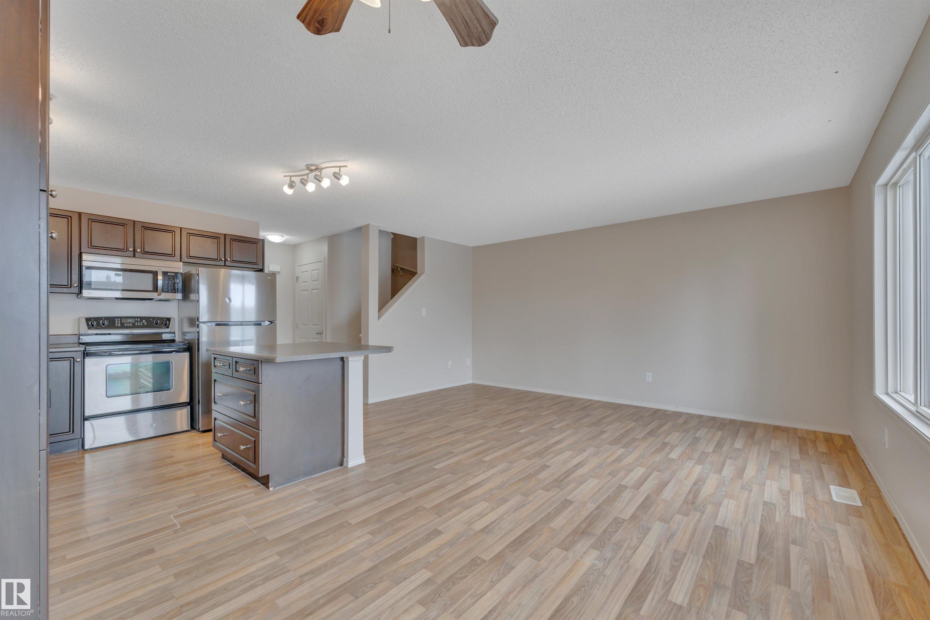 IMMEDIATE POSSESSION! FINISHED BASEMENT! Searching for a functional & clean starter home or investment property? This 1285 sq ft 3 bedroom duplex END UNIT with no neighbour directly north or west has been refreshed for its new owners. Laminate flooring throughout the main allows for an open concept living / dining / kitchen space; great for entertaining & enjoying the west facing large windows for ample natural light. Stainless steel appliances, laminate countertops, and 2 pce bathroom. Upstairs brings 3 good sized bedrooms, including the primary bed w/ 3 pce ensuite & double closets. Additional 4 pce bath & linen storage. Basement is fully finished with large rec room for play space for kids or movie night with the family, another 2 pce bath, & mechanical / storage room. West facing backyard w/ wood deck & room for the firepit for bonfire season! Located blocks from multiple schools & amenities; solid street parking & single attached garage. Time to own this terrific home! *Some photos virtually staged*