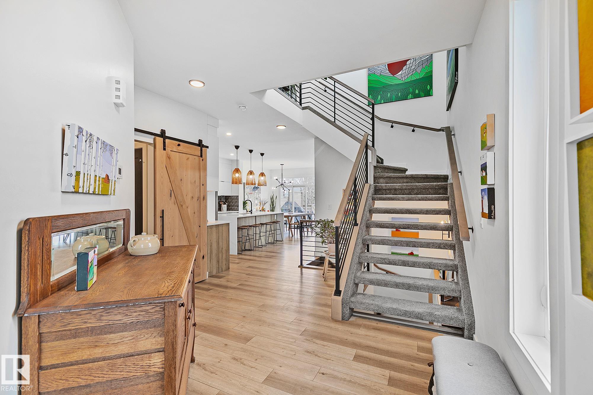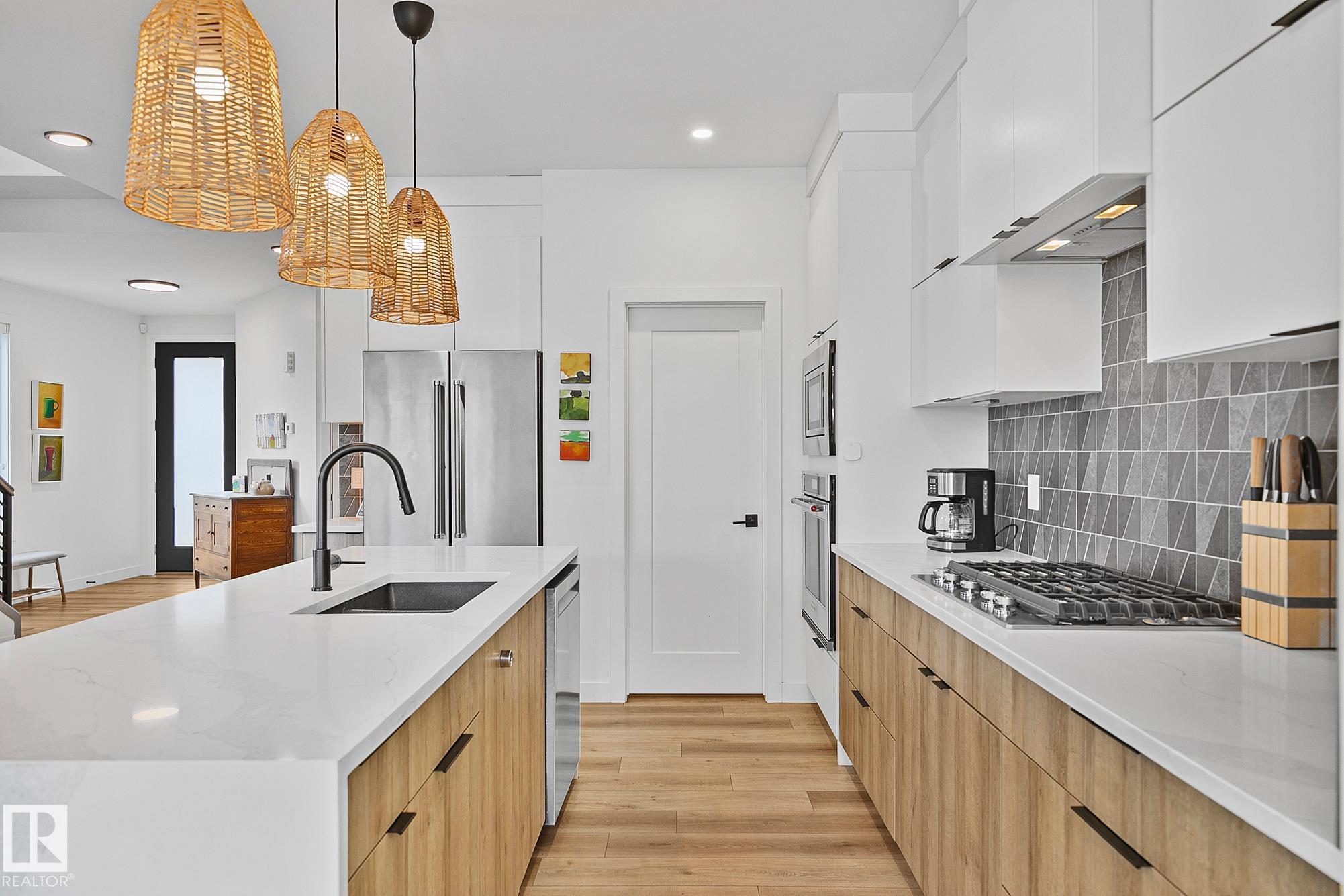 DESIRABLE NEIGHBOURHOOD! IDEALLY located walking distance to the River Valley & scenic trail system! Modern 2 storey offers a functional open concept floor plan filled w/natural light! Stunning kitchen has stainless appliances including gas cooktop, massive island w/seating, expansive quartz counters, tons of contemporary Scandi inspired cabinetry & spacious walk-thru pantry w/exceptional storage. Upstairs the primary suite feels like a true retreat showcasing a luxurious ensuite w/steam shower, deep soaker tub, double sinks & walk-in closet. Finished basement expands the living space w/2 additional bedrooms, 4pce bath, comfortable family room & storage. FEATURING upper level laundry, bonus room, mudroom, A/C, water softener & tankless hot water, heated garage, striking open staircase & 9ft ceilings on all levels. With 5 bedrooms, generous living spaces, stylish finishes & an unbeatable location near the river valley, this home offers the PERFECT BLEND OF MODERN STYLE & THOUGHTFUL FUNCTIONALITY! MOVE IN!