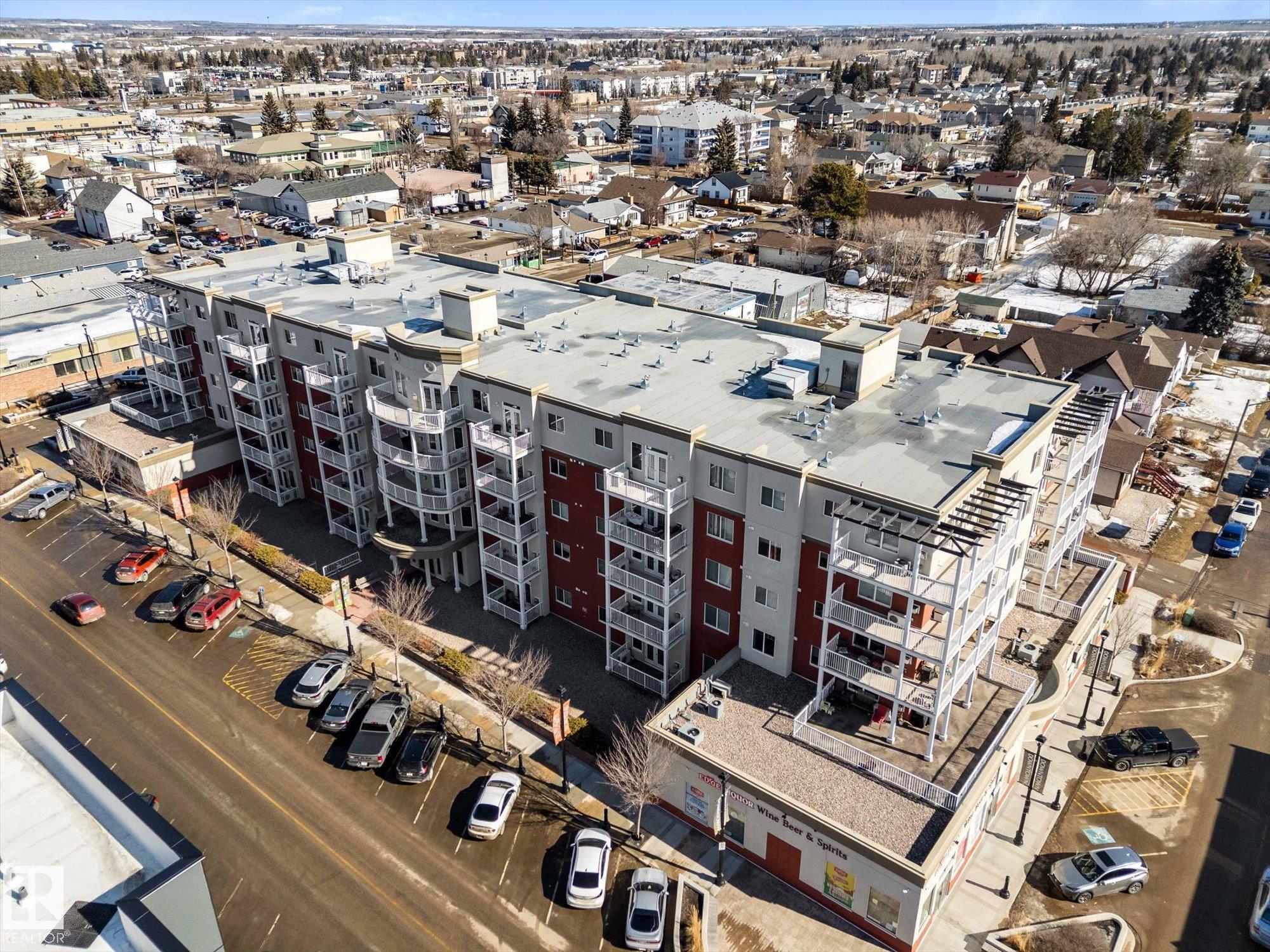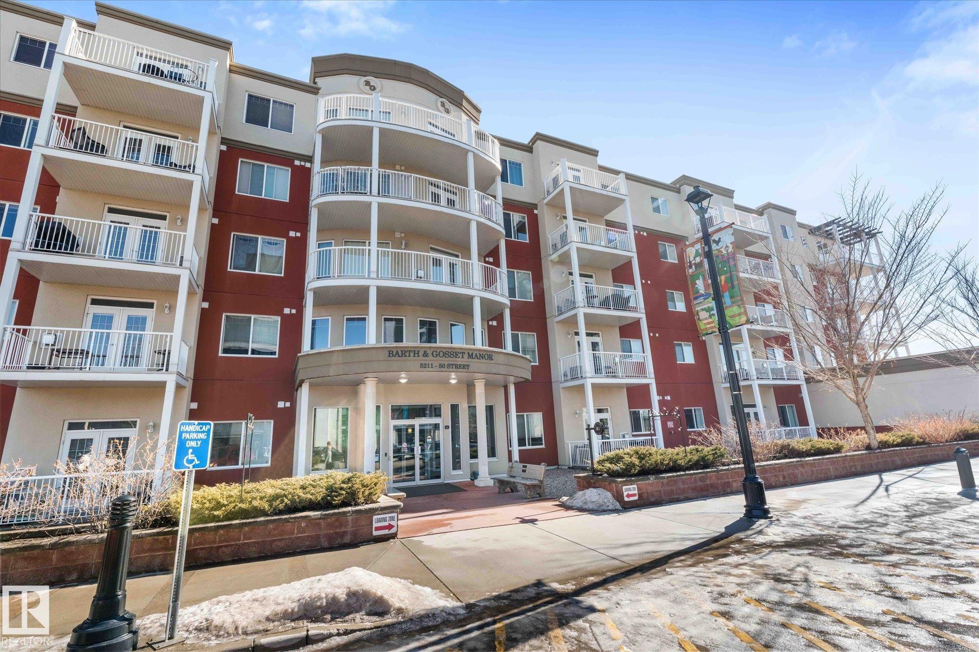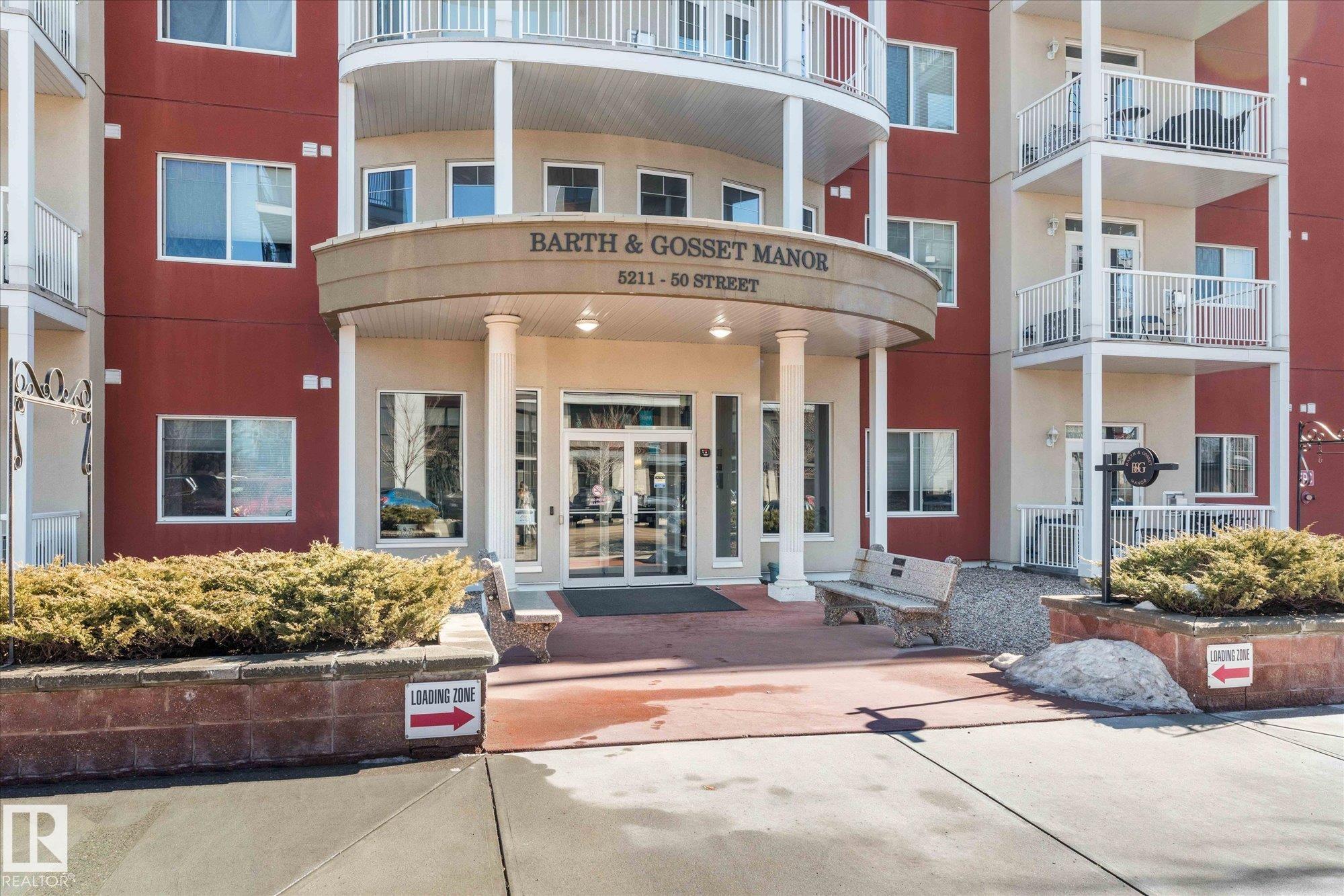 RARE GROUND-FLOOR CONDO in the highly regarded Barth & Gosset Manor downtown Stony Plain! This 2-bed, 2-bath unit offers low-maintenance living in a quiet, secure, concrete-built building. Freshly painted, the bright & functional layout features a corner gas fireplace, granite countertops, s/s appliances & a brand new electric stove. The primary bedroom includes a private 3-piece ensuite w/ an accessible walk-in shower. Step out to the oversized patio, perfect for relaxing without the upkeep of a yard. This ground-floor unit incl. a titled heated underground parking stall w/ storage. The building offers secure entry, a car wash bay & elevator access. Residents enjoy the fireside lounge + two social/activity rooms, incl. one w/ a kitchenette for gatherings. Situated on Main Street, you?re within walking distance to shops, cafés & professional services. Ground-floor convenience, solid construction & a well-maintained building?an exceptional opportunity to simplify your lifestyle in the heart of Stony Plain!