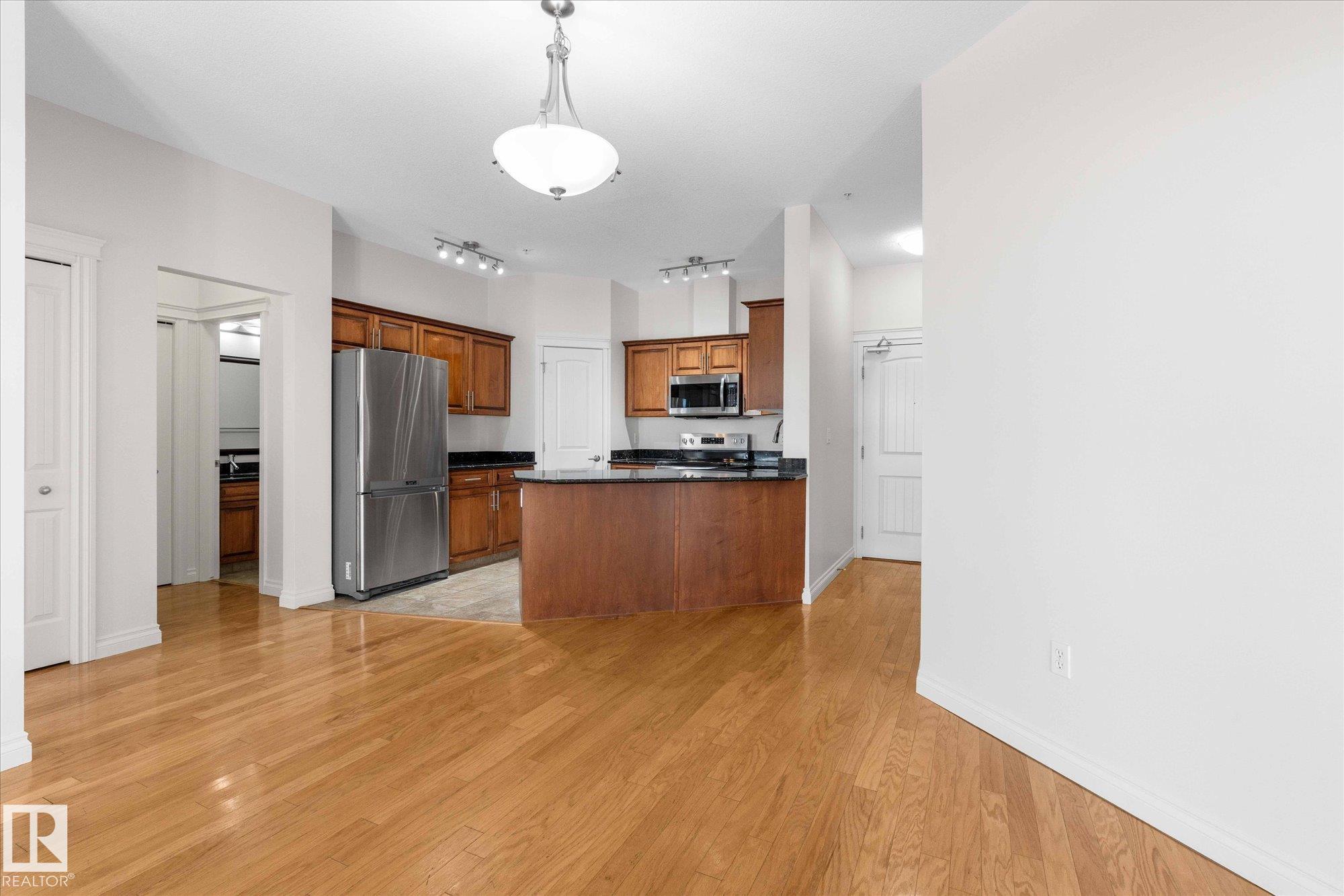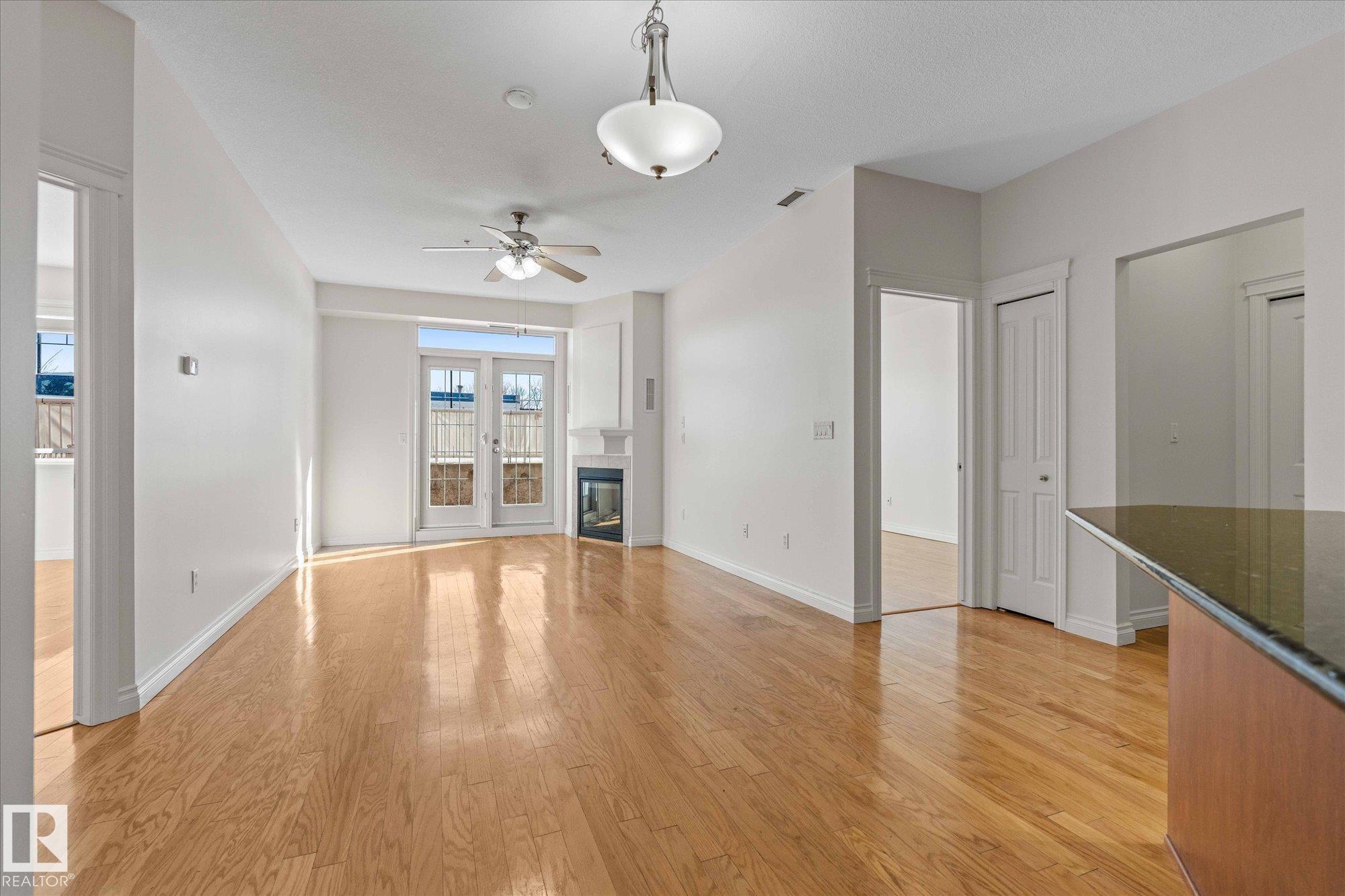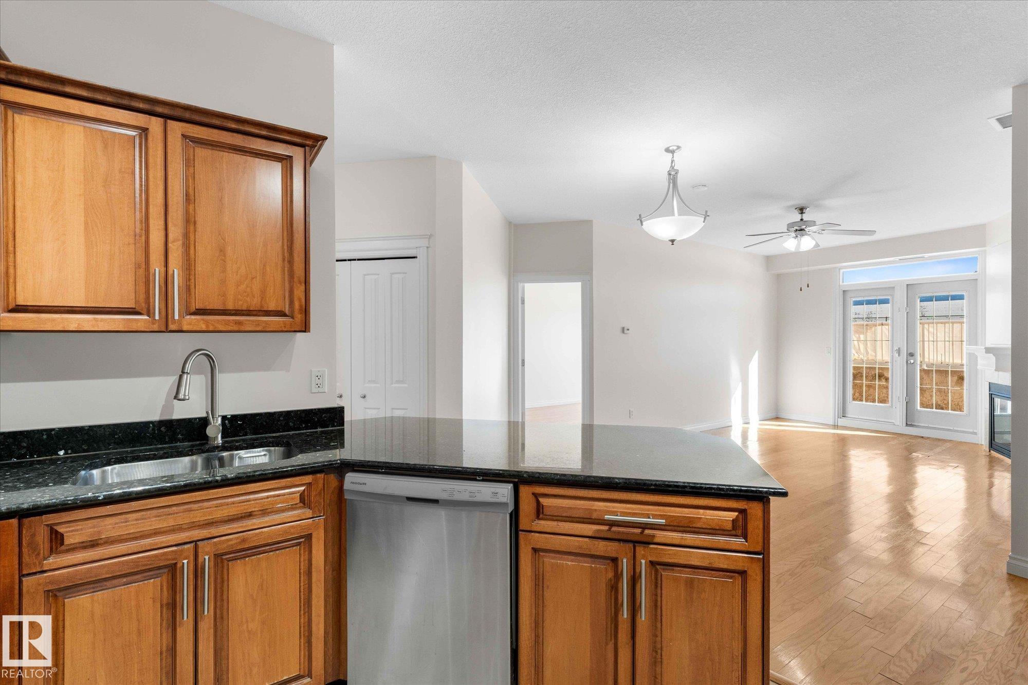 RARE GROUND-FLOOR CONDO in the highly regarded Barth & Gosset Manor downtown Stony Plain! This 2-bed, 2-bath unit offers low-maintenance living in a quiet, secure, concrete-built building. Freshly painted, the bright & functional layout features a corner gas fireplace, granite countertops, s/s appliances & a brand new electric stove. The primary bedroom includes a private 3-piece ensuite w/ an accessible walk-in shower. Step out to the oversized patio, perfect for relaxing without the upkeep of a yard. This ground-floor unit incl. a titled heated underground parking stall w/ storage. The building offers secure entry, a car wash bay & elevator access. Residents enjoy the fireside lounge + two social/activity rooms, incl. one w/ a kitchenette for gatherings. Situated on Main Street, you?re within walking distance to shops, cafés & professional services. Ground-floor convenience, solid construction & a well-maintained building?an exceptional opportunity to simplify your lifestyle in the heart of Stony Plain!