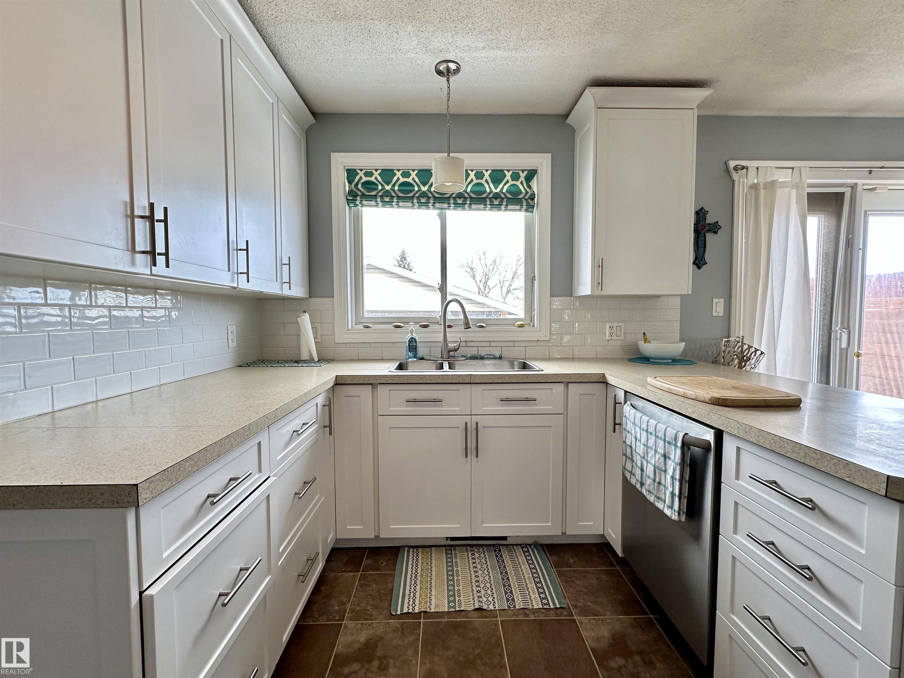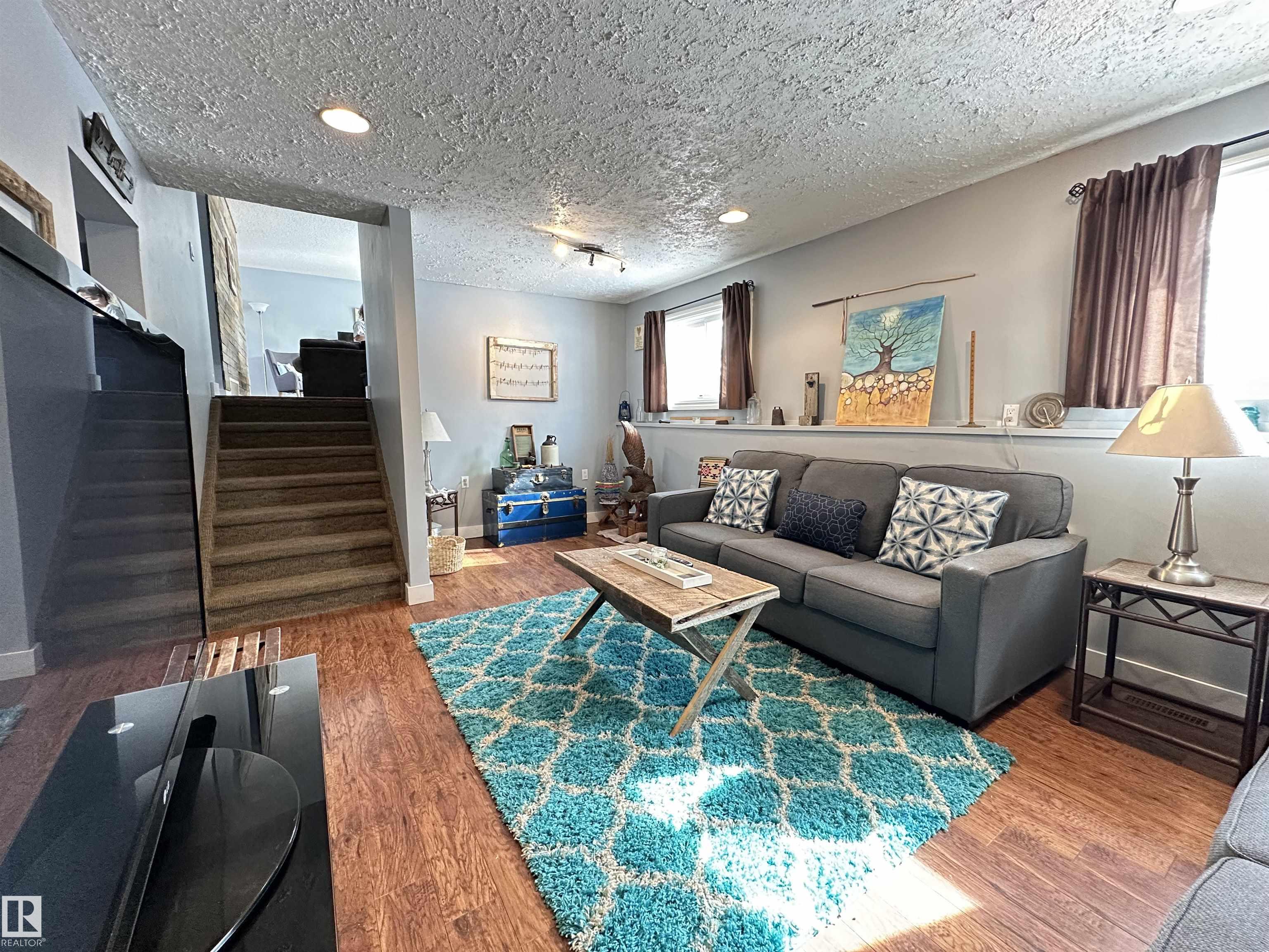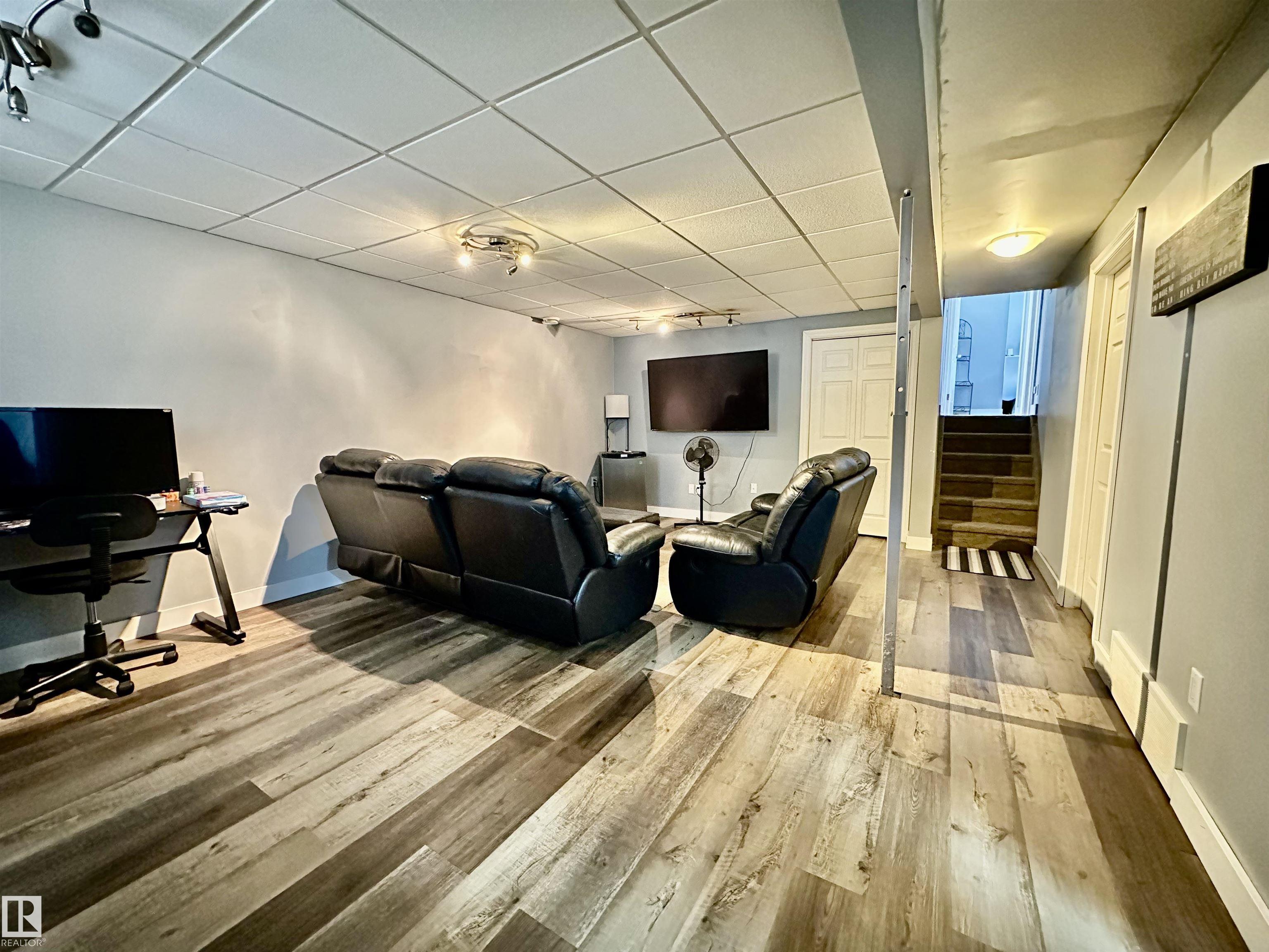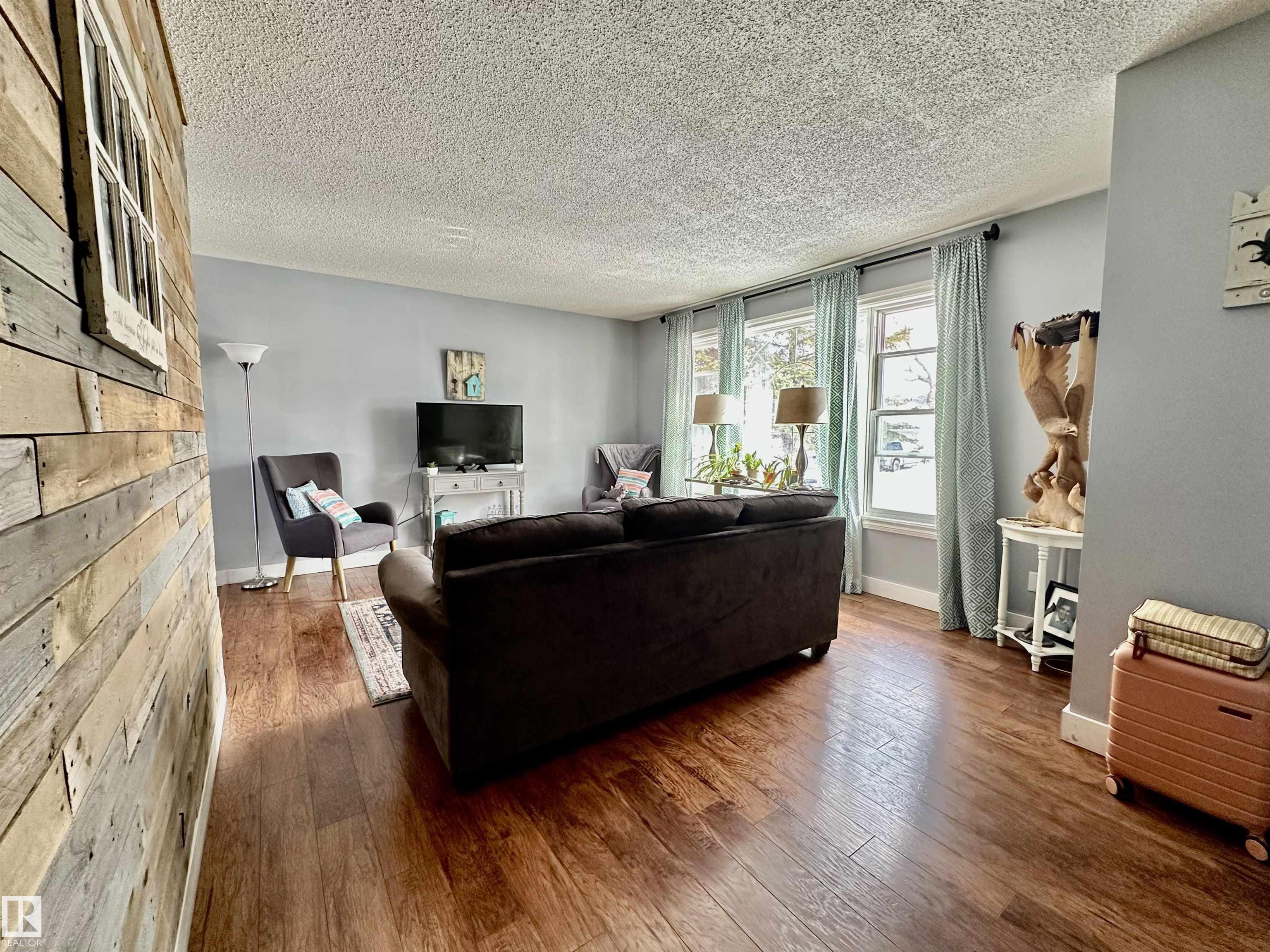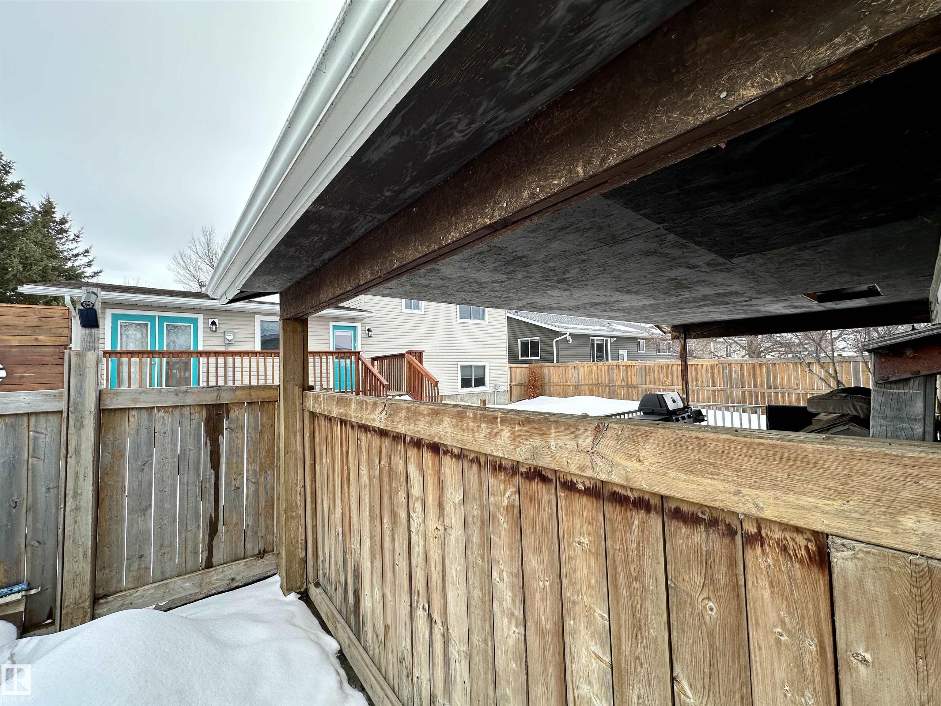 Location, location, location! Welcome home to this picture perfect, 4 bedroom, 3 bathroom, 4 level split in a fantastic neighbourhood of Bonnyville. Main floor features living room with striking wood feature wall, dining room and classic white kitchen. Upstairs you will find king size master bedroom with ensuite, 2 secondary bedrooms and main bathroom. Third level boasts a family room area, 4th bedroom and 3 pc bathroom. Basement provides ideal space for pool table or theatre room with office and mechanical room/laundry room. Exterior offers a super sized deck overlooking the fully fenced backyard. Back lane has access to the double detached garage that also has an amazing roof extension into the back yard giving yet another great place to hangout in the warmer months. Quiet neighborhood, family friendly and close to schools and shopping. This property makes it so easy to picture yourself here!