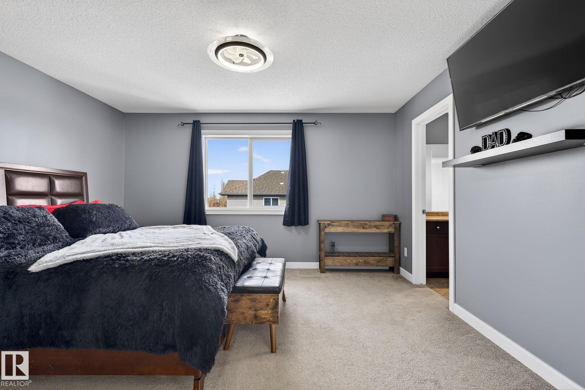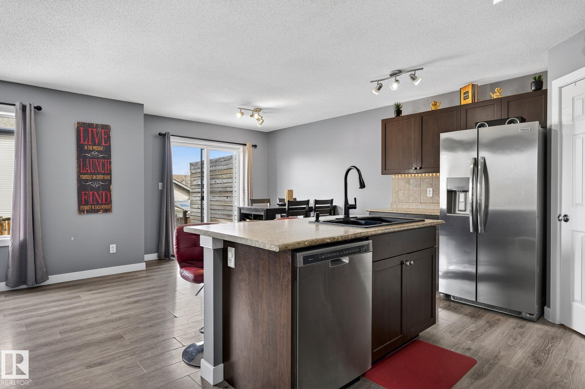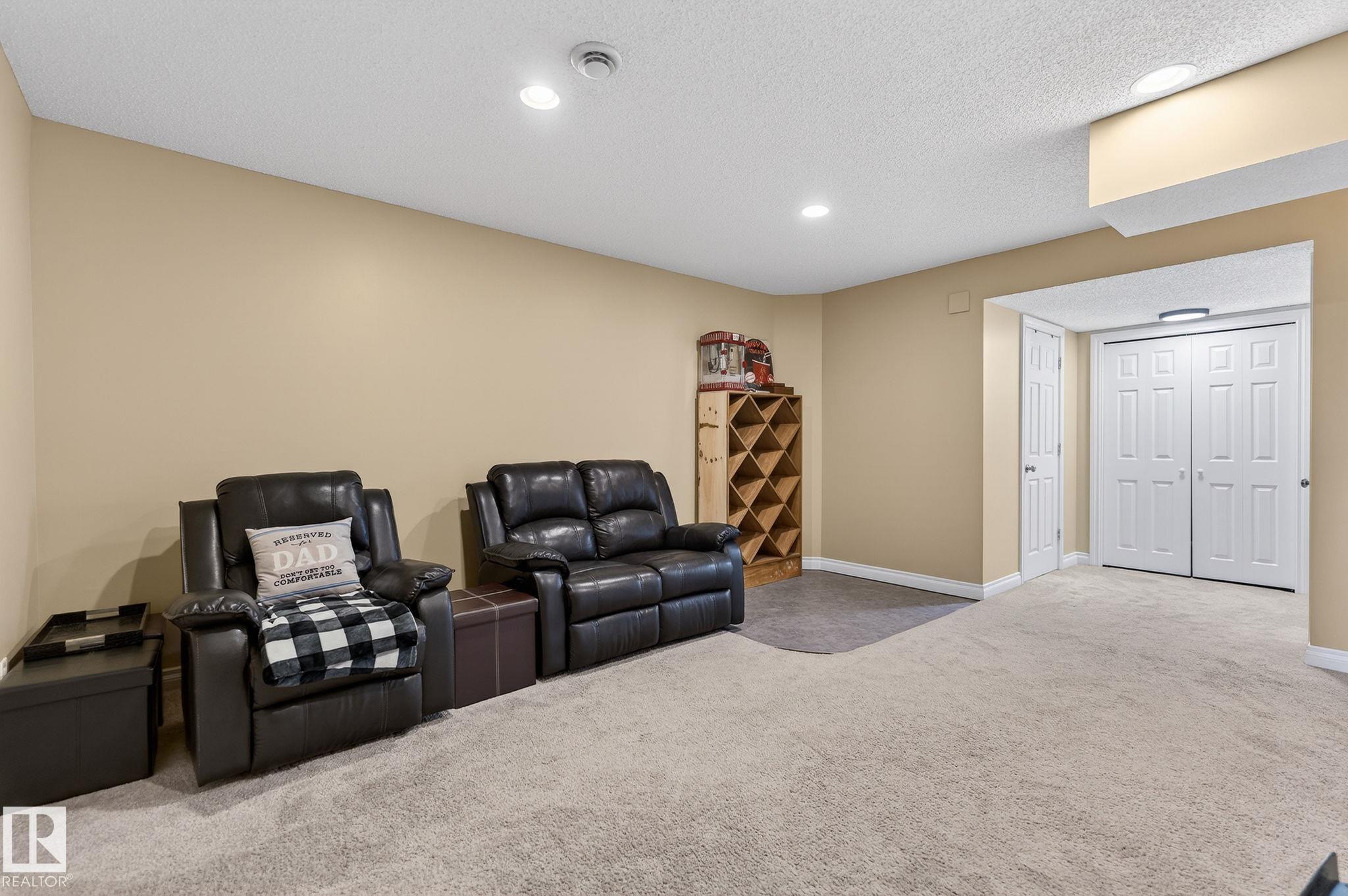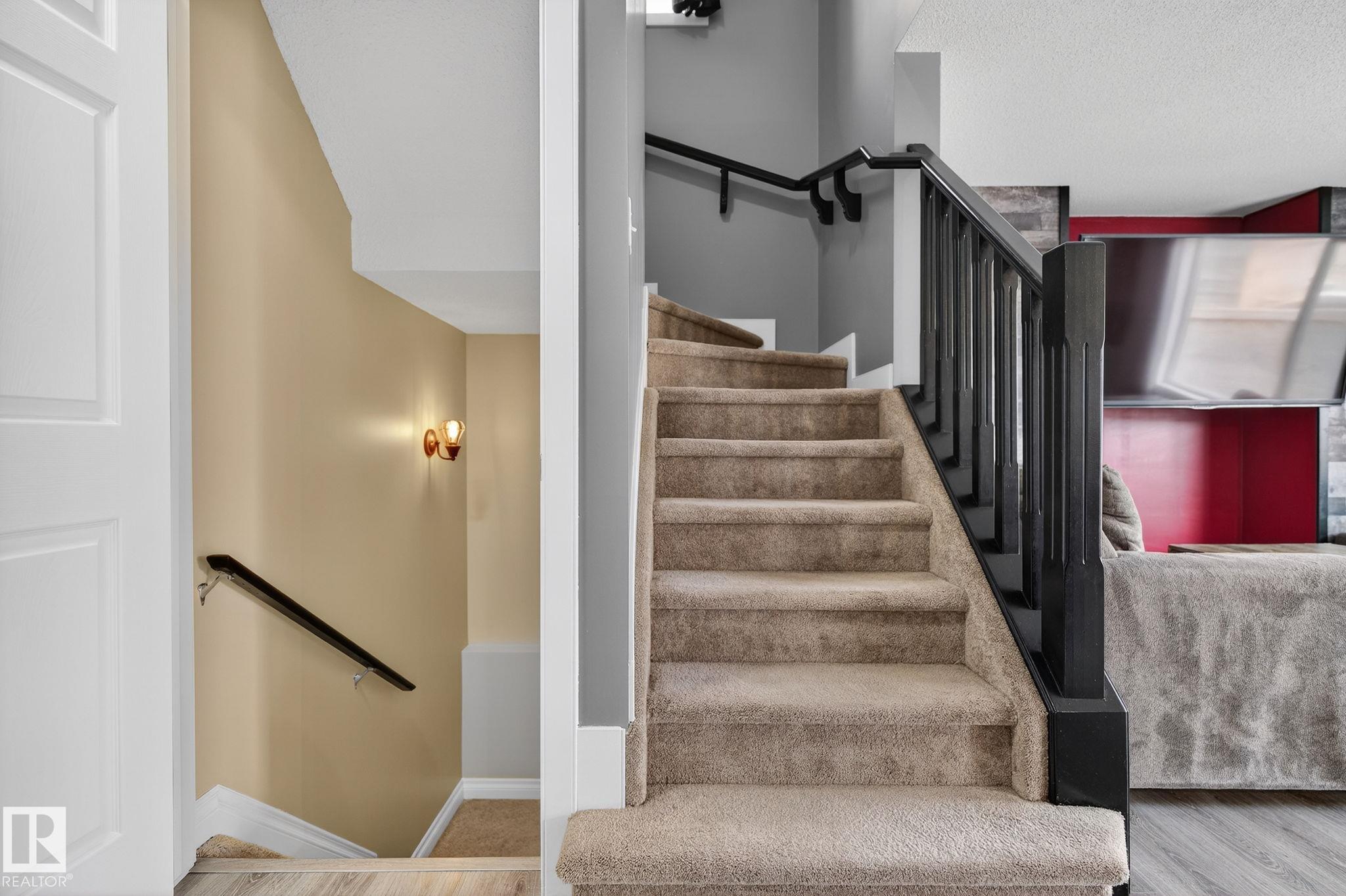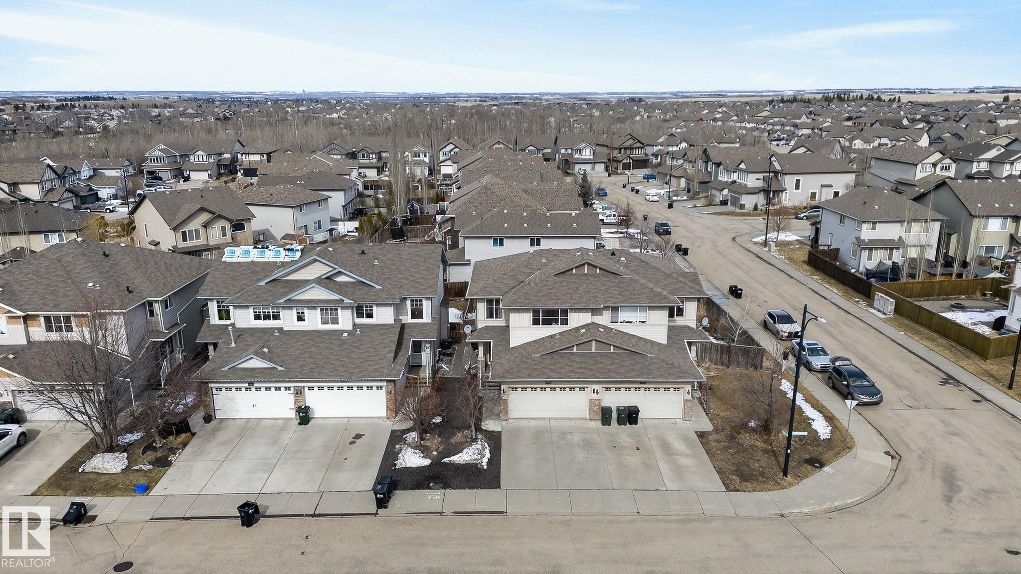Welcome to Summerwood in wonderful Sherwood Park! Conveniently located just mins from Hwy 21 for a quick & efficient commute, this beautiful original owner 1/2 duplex offers exceptional value & is waiting for you to call it home! Upon entry you're greeted by a bright & spacious foyer which sets the tone for the open concept layout. The kitchen boasts functionality feat SS appliances, lots of counter & cabinet space, large island & a walk-through pantry! The dining & great room flow seamlessly together providing ample space for family & friends, & a 1/2 bath completes the main floor.Upstairs you'll find laundry, 2 MASSIVE bedrooms with full 4 pc ensuite baths, closet space and a flex area perfect for HOME OFFICE!! The finished bsmt offers a 3rd bed, 3rd full bath & rec area perfect for entertaining or lounging. You'll enjoy the back yard feeling a sense of added privacy as you won't be looking into your neighbours home. Sunny days on the deck await! A dbl garage & AC tops off this lovely home. Don't wait!!