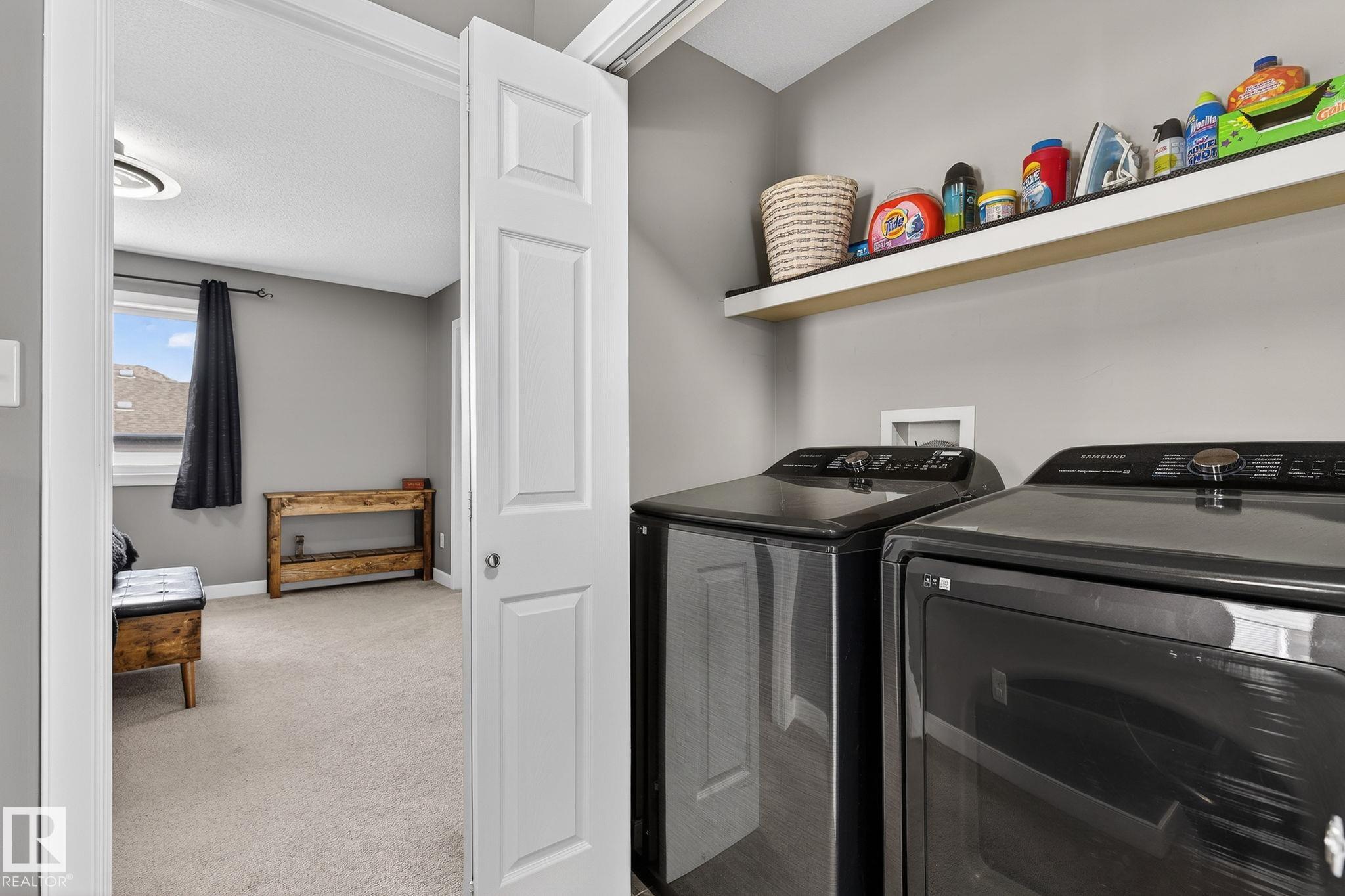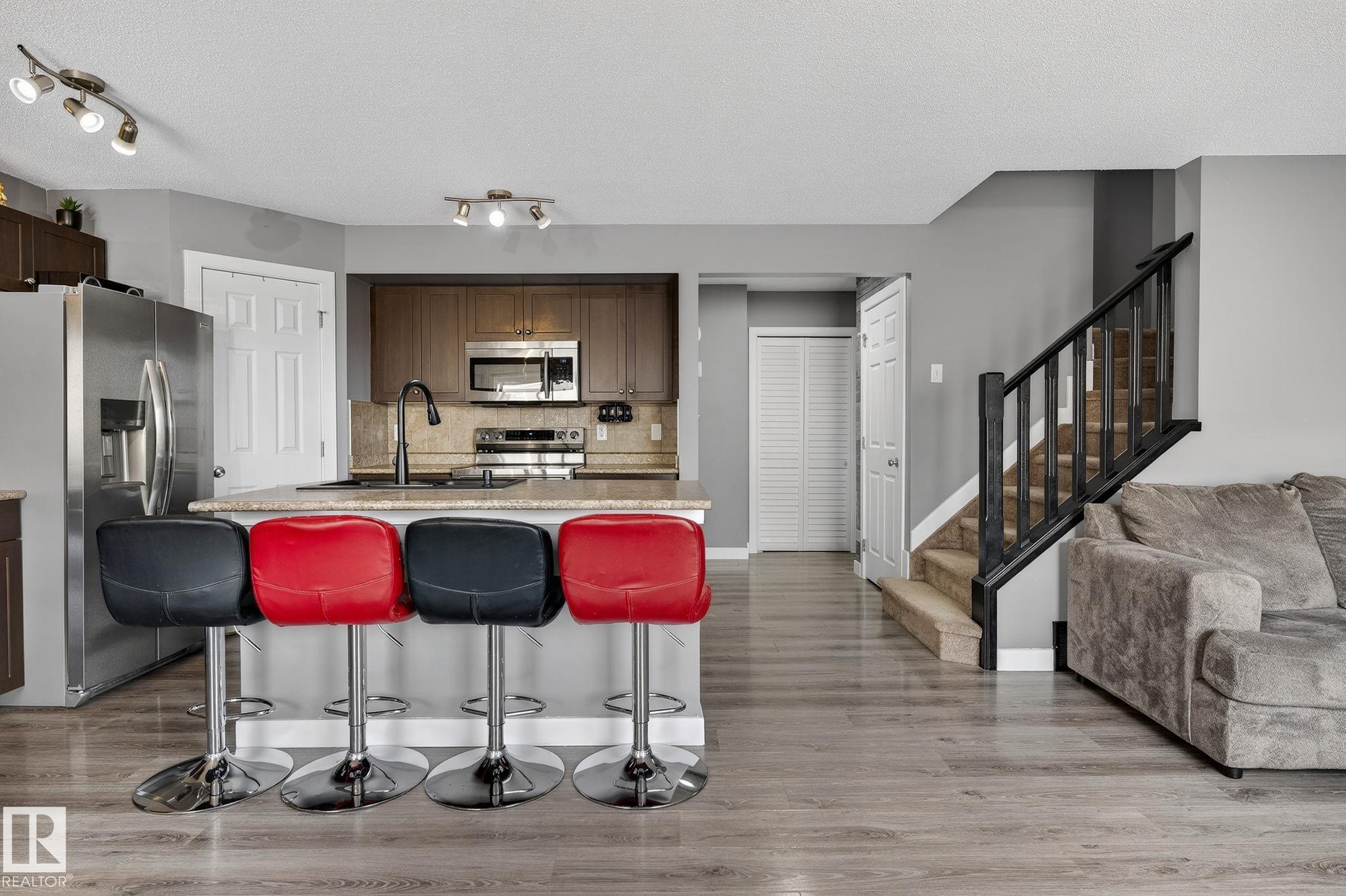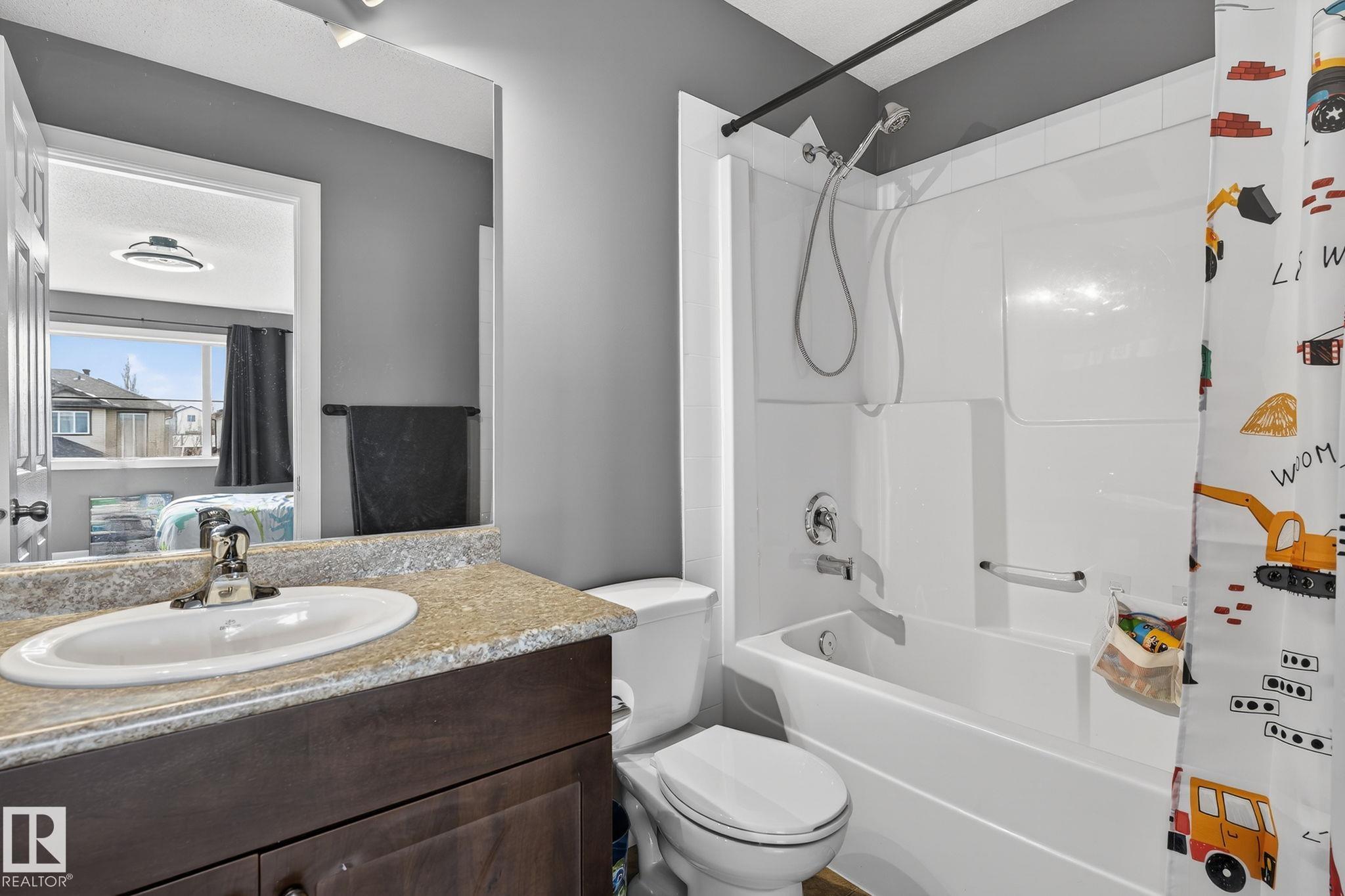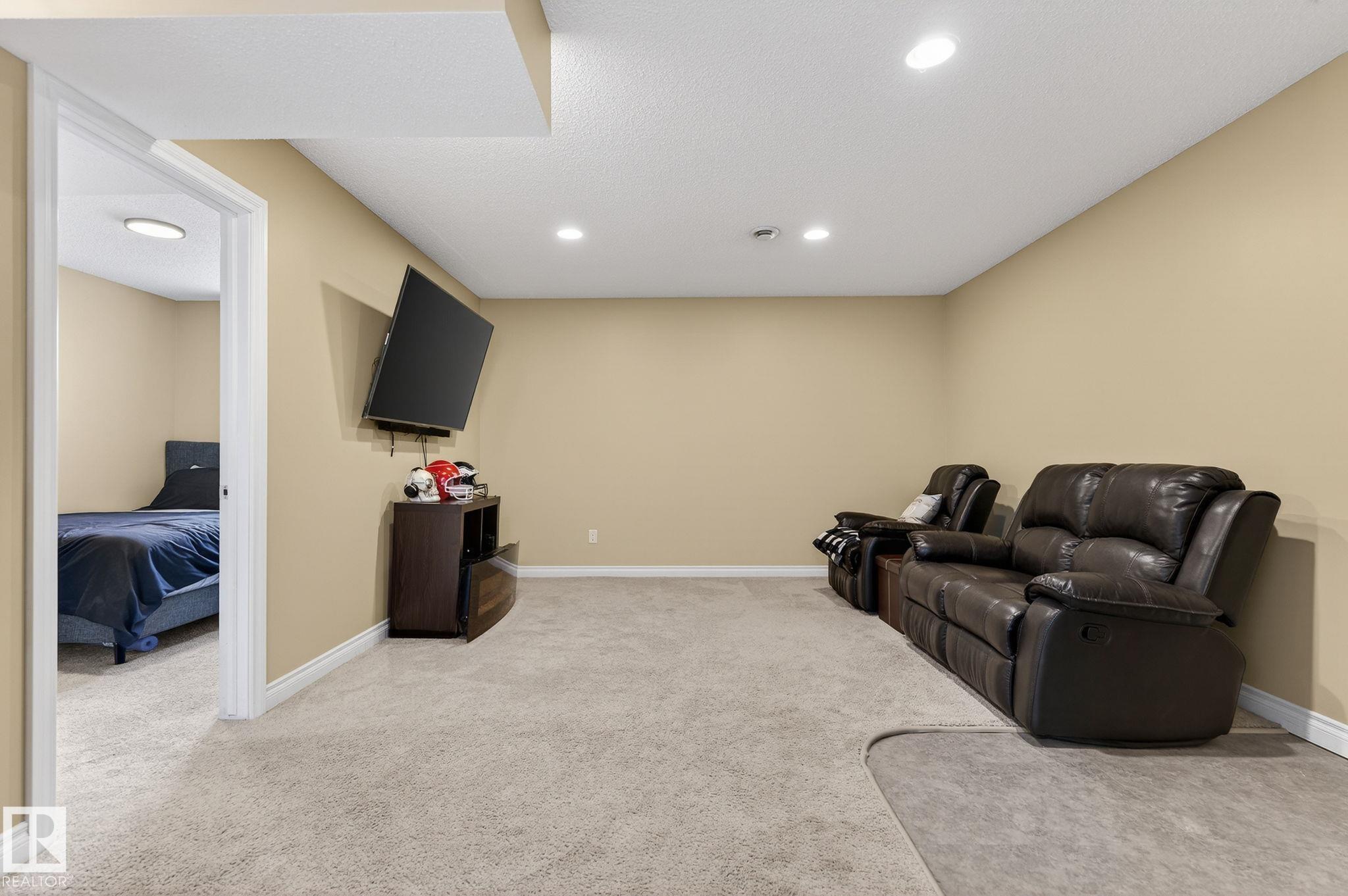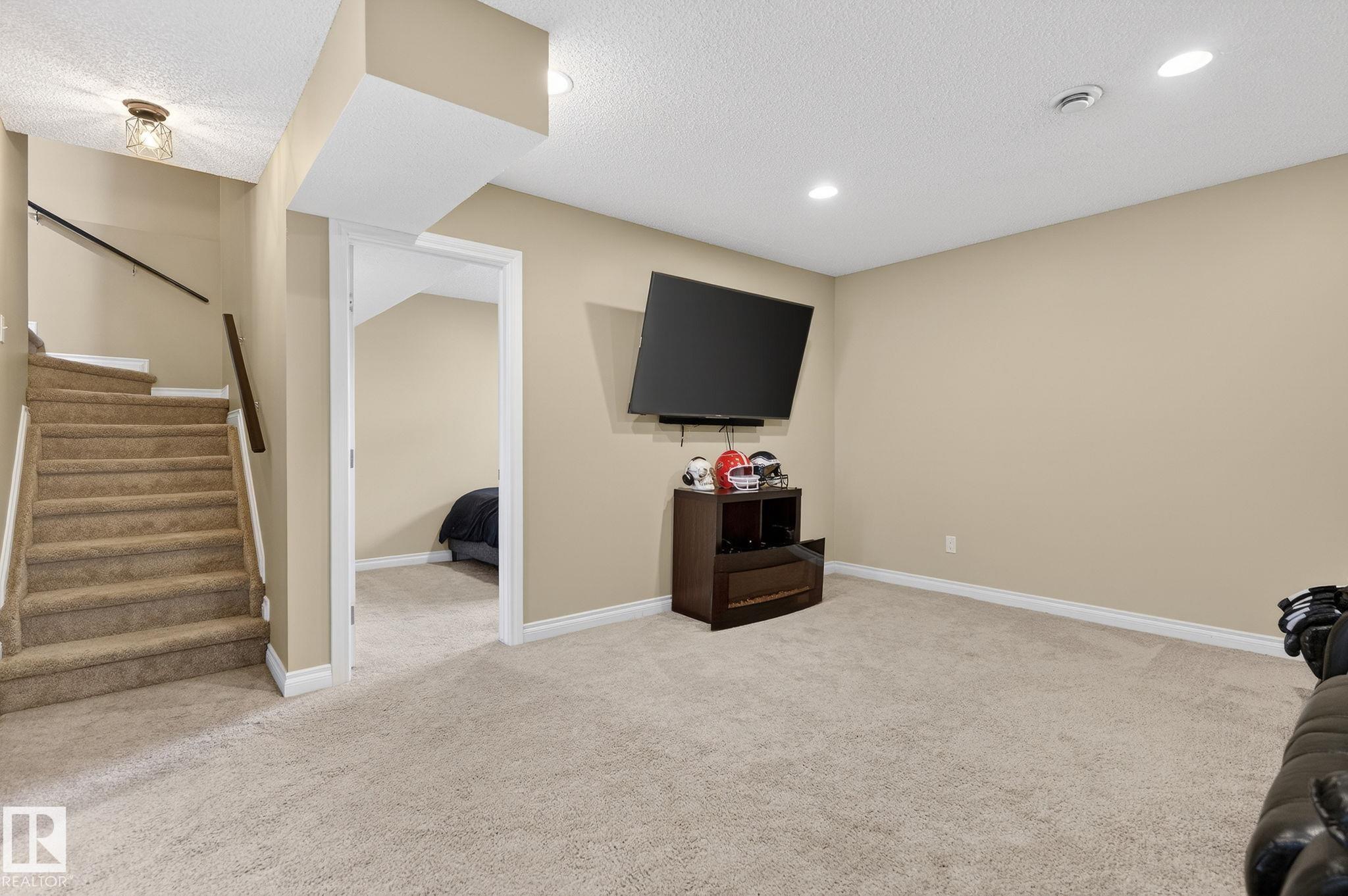 Welcome to Summerwood in wonderful Sherwood Park! Conveniently located just mins from Hwy 21 for a quick & efficient commute, this beautiful original owner 1/2 duplex offers exceptional value & is waiting for you to call it home! Upon entry you're greeted by a bright & spacious foyer which sets the tone for the open concept layout. The kitchen boasts functionality feat SS appliances, lots of counter & cabinet space, large island & a walk-through pantry! The dining & great room flow seamlessly together providing ample space for family & friends, & a 1/2 bath completes the main floor.Upstairs you'll find laundry, 2 MASSIVE bedrooms with full 4 pc ensuite baths, closet space and a flex area perfect for HOME OFFICE!! The finished bsmt offers a 3rd bed, 3rd full bath & rec area perfect for entertaining or lounging. You'll enjoy the back yard feeling a sense of added privacy as you won't be looking into your neighbours home. Sunny days on the deck await! A dbl garage & AC tops off this lovely home. Don't wait!!