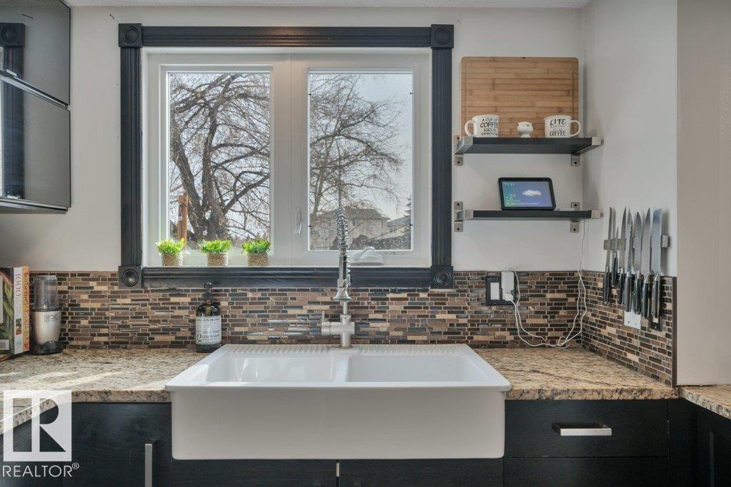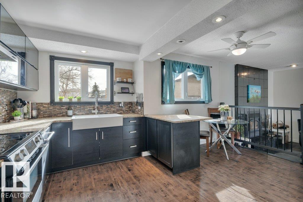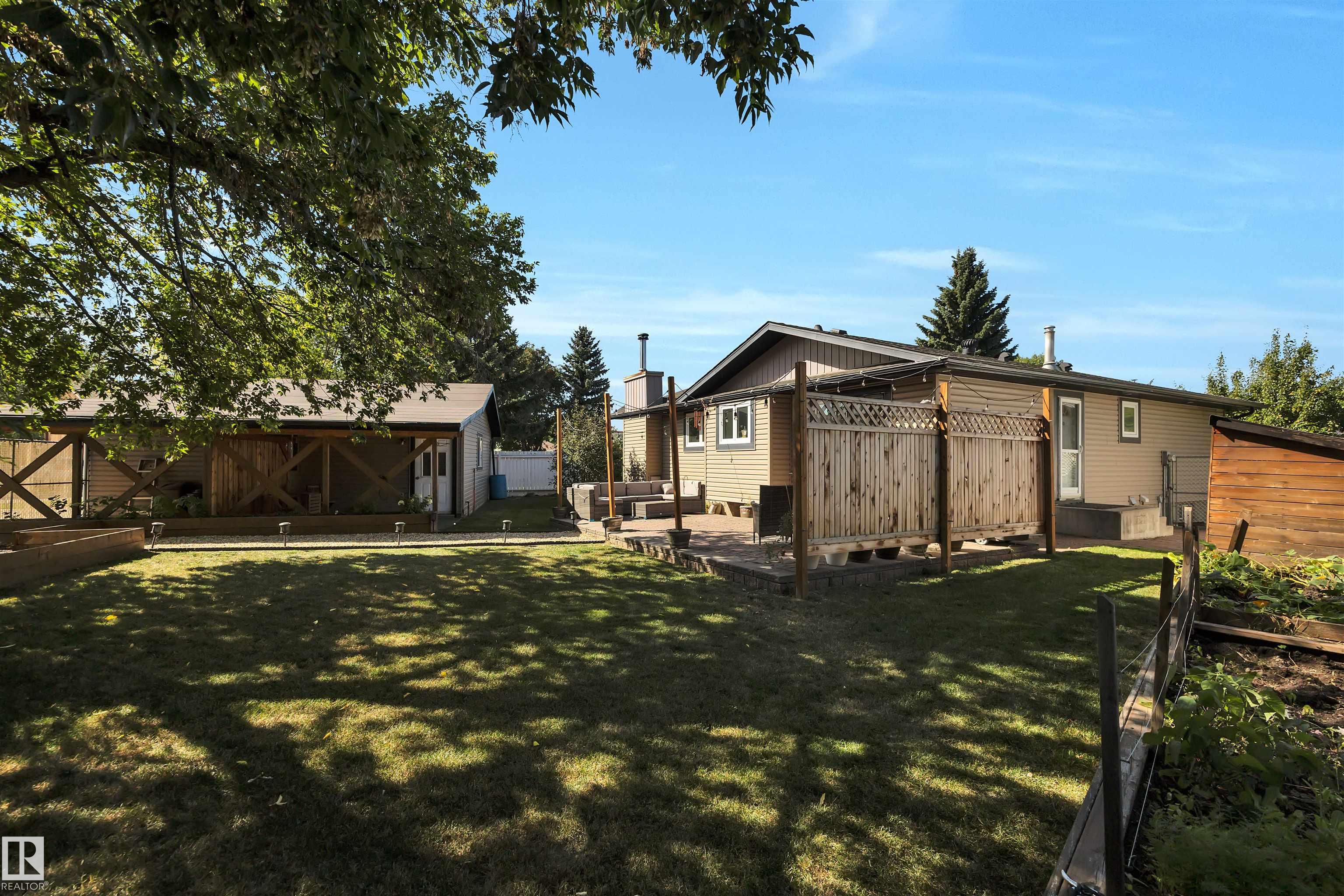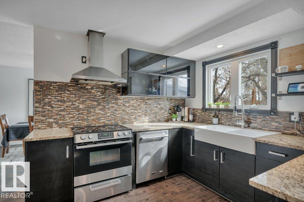This is the ONE! Updated and immaculately kept BUNGALOW in a QUIET CUL-DE-SAC with over 1,300 SF above grade and a HUGE 7,500+ SF lot. Main floor features 3 BEDROOMS, including a primary with 3-PIECE ENSUITE, plus an updated full 4-piece bath. RUSTIC REFINISHED HARDWOOD + UPDATED MODERN KITCHEN w/SS APPLIANCES, rich GRANITE countertops, beautiful tile backsplash, FARMHOUSE SINK, dining nook AND a SEPARATE DINING AREA that leads to the GORGEOUS BACKYARD PATIO. Additional SIDE ENTRANCE, too! Spacious sunken living room with WOOD-BURNING fireplace adds charm and character. FULLY FINISHED BASEMENT includes LARGE REC ROOM, WET BAR, 3-piece bathroom, LARGE OFFICE SPACE + room for a play area. Wait for it... there's also a BEAUTIFULLY MAINTAINED BACKYARD with raised garden beds, playhouse structure, woodshed + DOUBLE DETACHED GARAGE w/covered carport for EXTRA PARKING. GREAT LOCATION near schools + parks, shopping, transit/LRT, and major routes. MOVE-IN READY with fresh paint throughout! A truly RARE find.