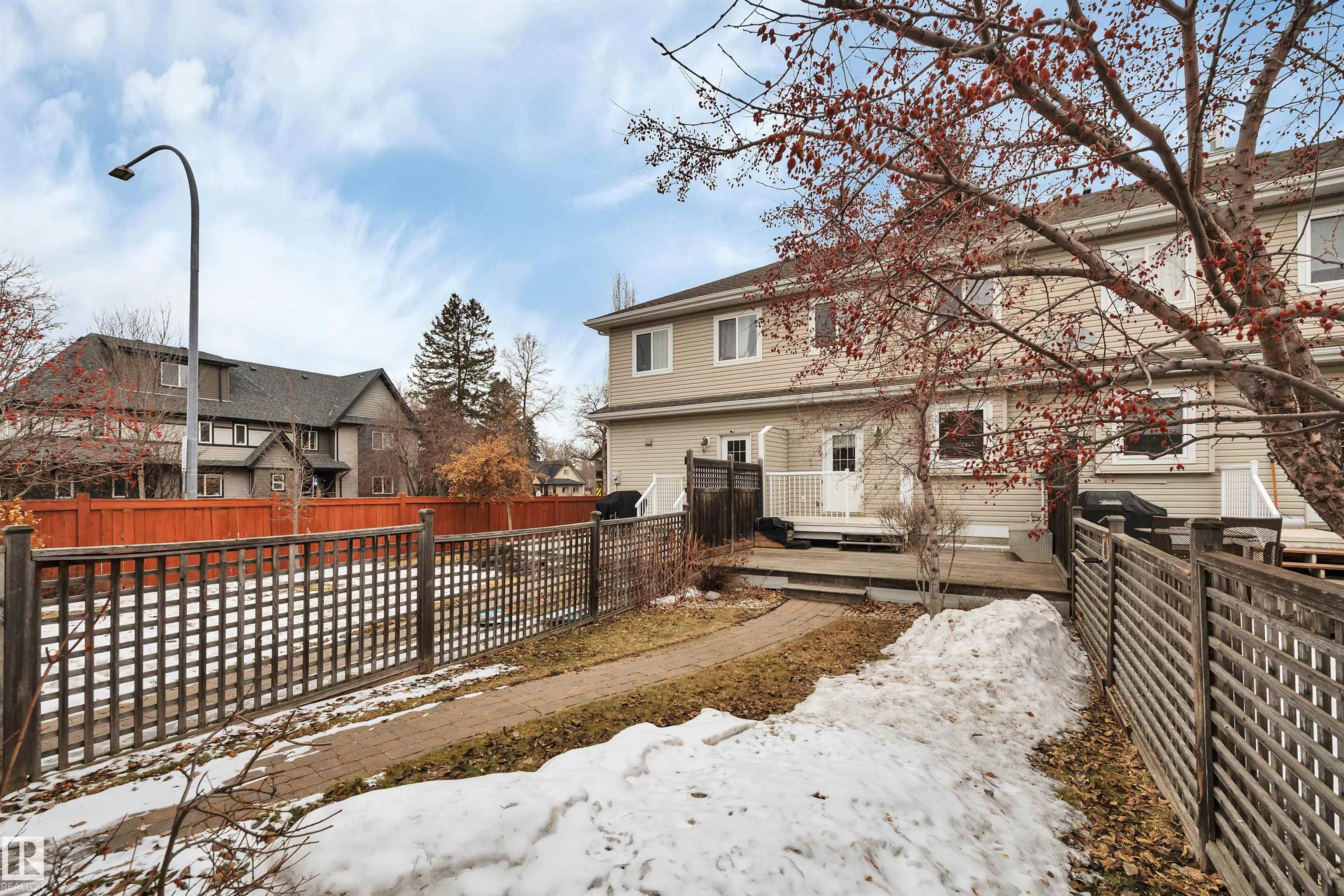 Very Bright & Spacious Townhome Featuring Hardwood Flooring Throughout The Living Room & Dining Room With A Double Sided Fireplace, Good Size Kitchen With Ample Cupboard & Counter Space As Well As A Raised Breakfast Bar. Upstairs Has A Large Master Bedroom With A Walk In Closet & Full Ensuite Bathroom, Spacious Second Bathroom, Full Bathroom & Office/Bonus Room. The Fully Finished Basement Has An Additional Bedroom With Walk In Closet & Full Bathroom. Sunny South Facing Fully Fenced Yard With A Deck & Double Garage. Numerous Upgrades Throughout Including Furnace (2022) and Hot Water Tank (2021). Situated On A Quiet Tree Lined Street & Just Minutes To Mill Creek Ravine & U of A. Nothing To Do Here, Just Move Right In!!