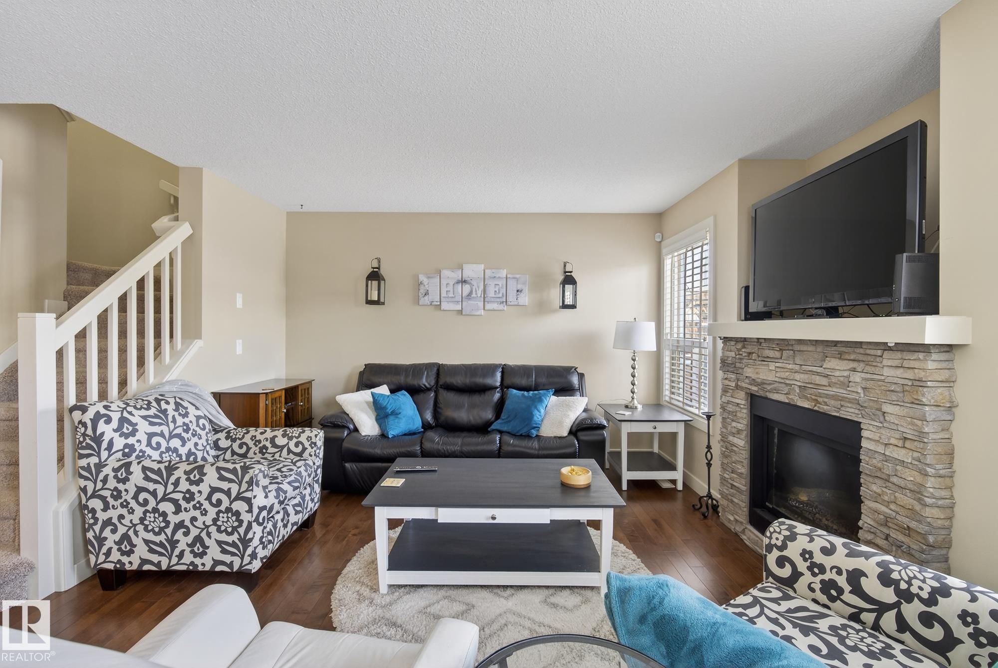 BEAUTIFUL MODERN 1536 sq/ft, 2+1 Bedroom Summerwood Half-Duplex. NO CONDO FEES! A Desirable location in East Sherwood Park very close to the Hospital, Schools, Shopping & access to Hwy 21, Anthony Henday & the Yellowhead. Inviting Foyer with Half Bath between Main Entry and Garage Entry. The Living room features Two Large Window & a Gas F/P! The Kitchen offers a Great Layout with a Large Island, Corner Pantry & Granite Countertops. Nice Dining area next to sliding Patio Door to the Deck with Morning Sunshine and Natural Gas Line. The Upstairs offers a Bonus area for a Den/Office, Laundry area Plus TWO HUGE Primary Bedrooms each with a Walk-In Closet (One boasts a Custom Designed Closet) and 4pce Ensuite. The IMPRESSIVE Finished Basement boasts a Family/Rec Room, Bedroom, 3pce Bathroom & a Storage room! Other FEATURES/UPGRADES: A/C, Hardwood Flowing thru the Main Level plus a 20'x20' Deck! The Backyard is Fenced / Landscaped!
