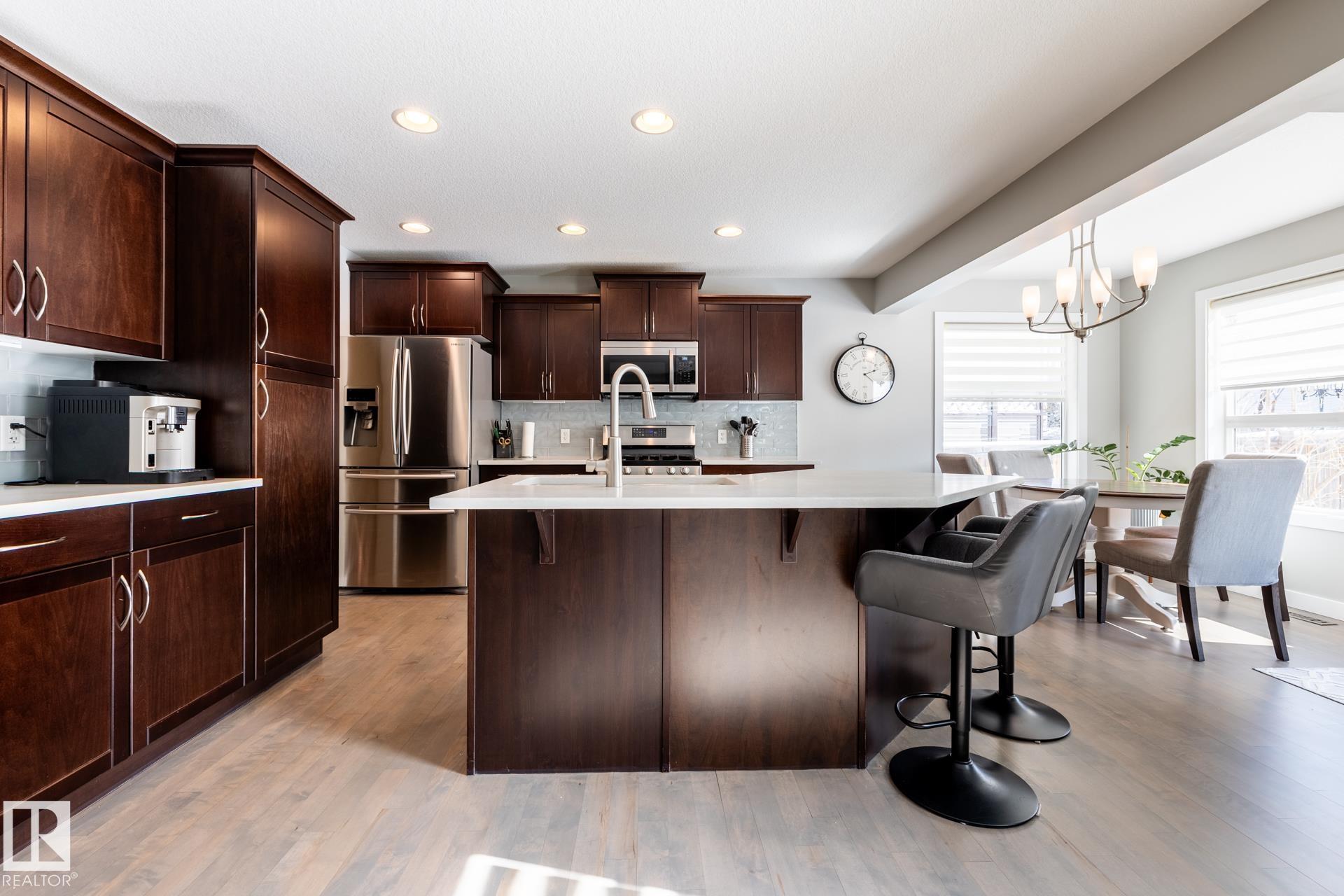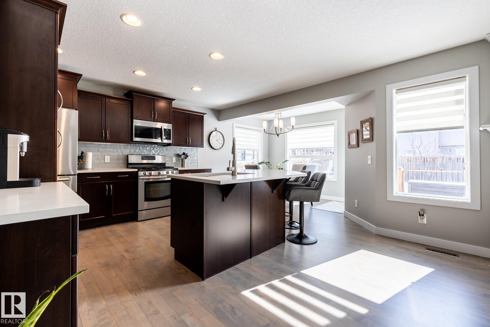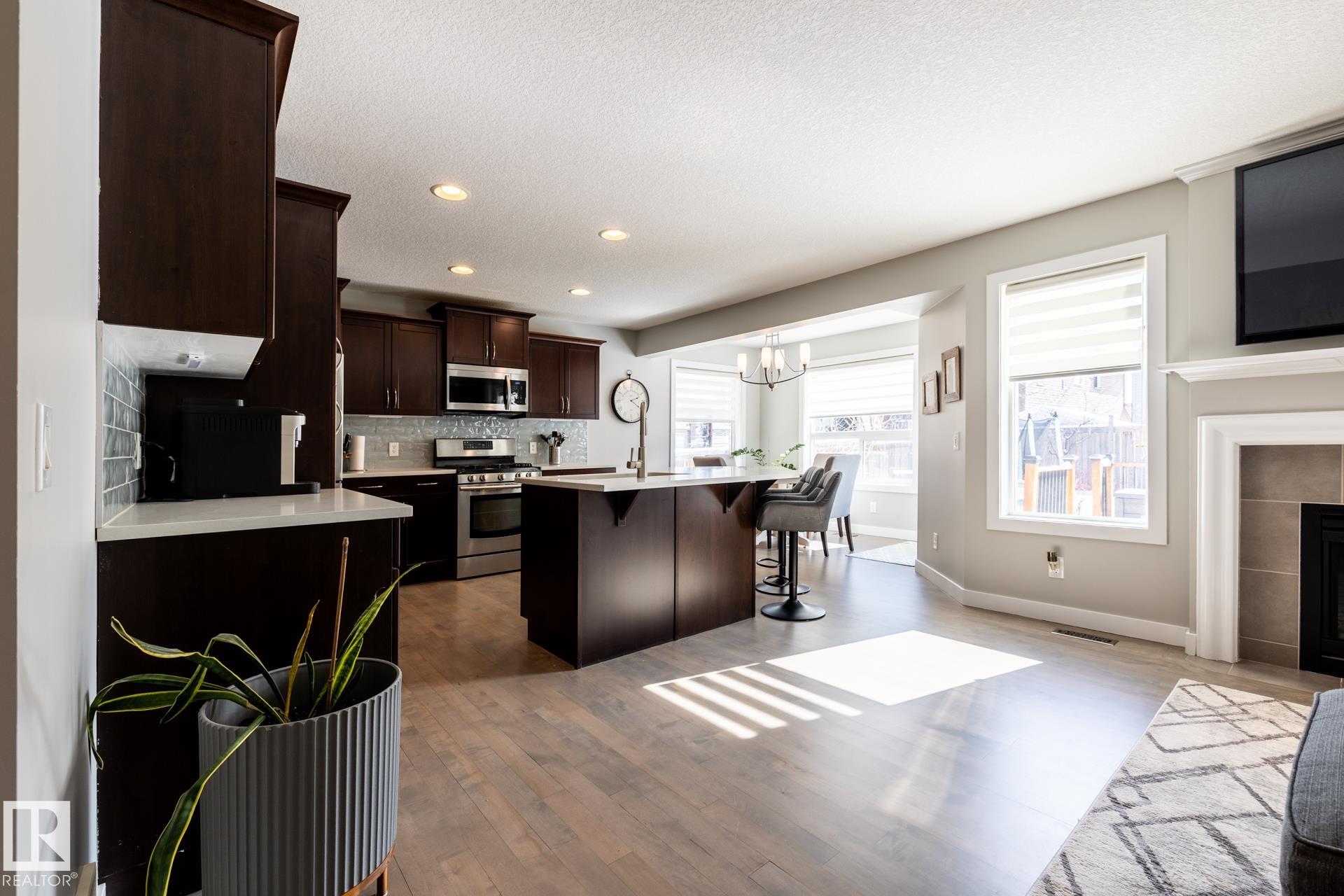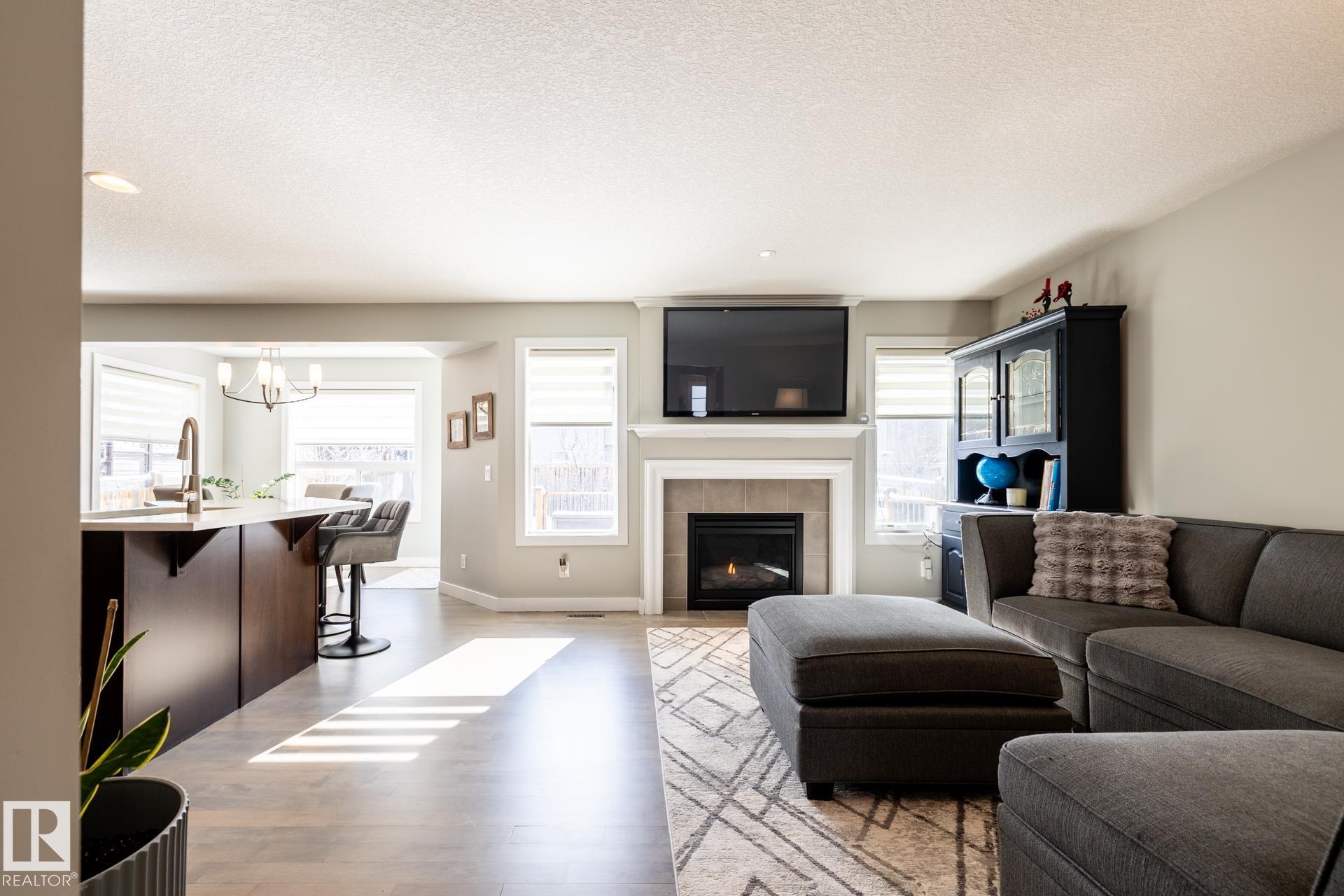 Fantastic 1800 sq ft two-storey home in Sherwood Park, ideally located within walking distance to Emerald Hills amenities, shopping, restaurants, and more! This bright and inviting home features a sun-soaked main floor with a desirable south-facing backyard and an abundance of windows that flood the space with natural light. The open-concept layout is highlighted by refinished hardwood floors, a cozy gas fireplace, and stylish upgrades including newer countertops and backsplash in the kitchen. Upstairs, you?ll find a spacious primary retreat complete with a walk-in closet and private ensuite, along with two additional generously sized bedrooms. A versatile bonus/flex space offers the perfect spot for a home office or play area. Finished basement provides even more living space, ideal for entertaining, a home gym, or movie night. This is the perfect family home in a prime location?close to everything you need while tucked into a welcoming community.