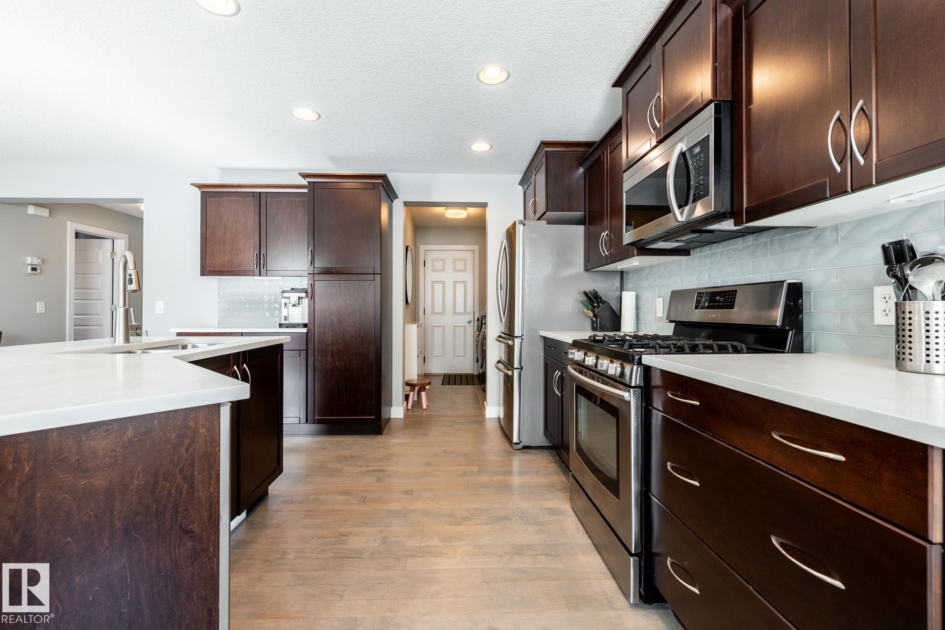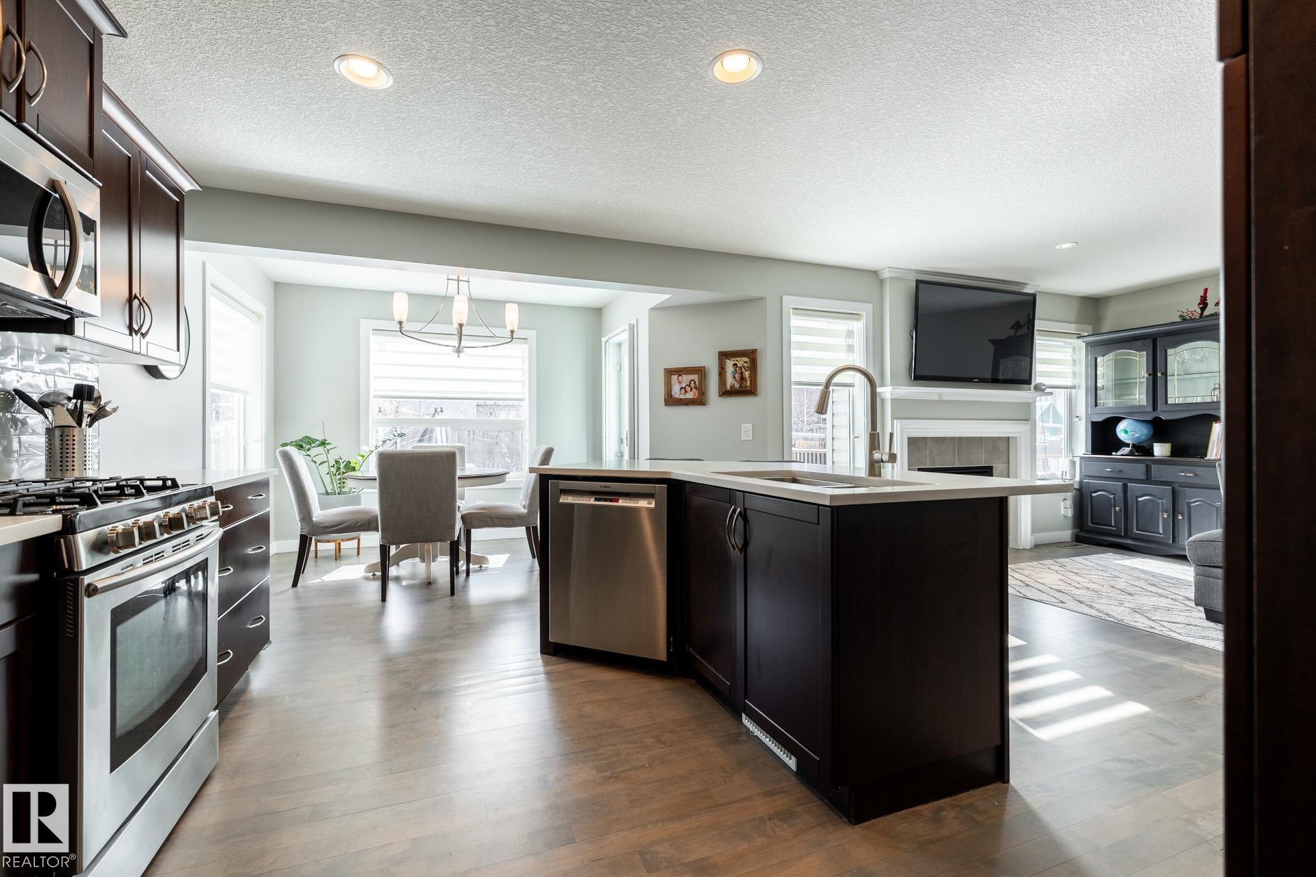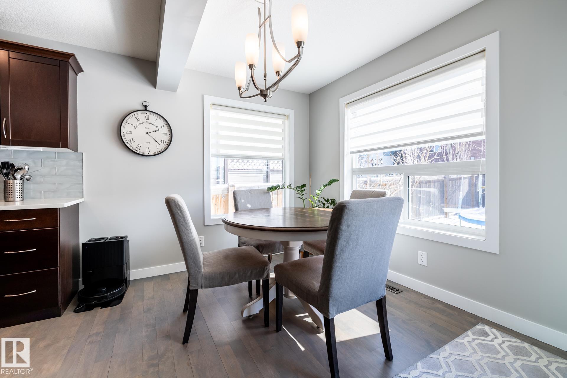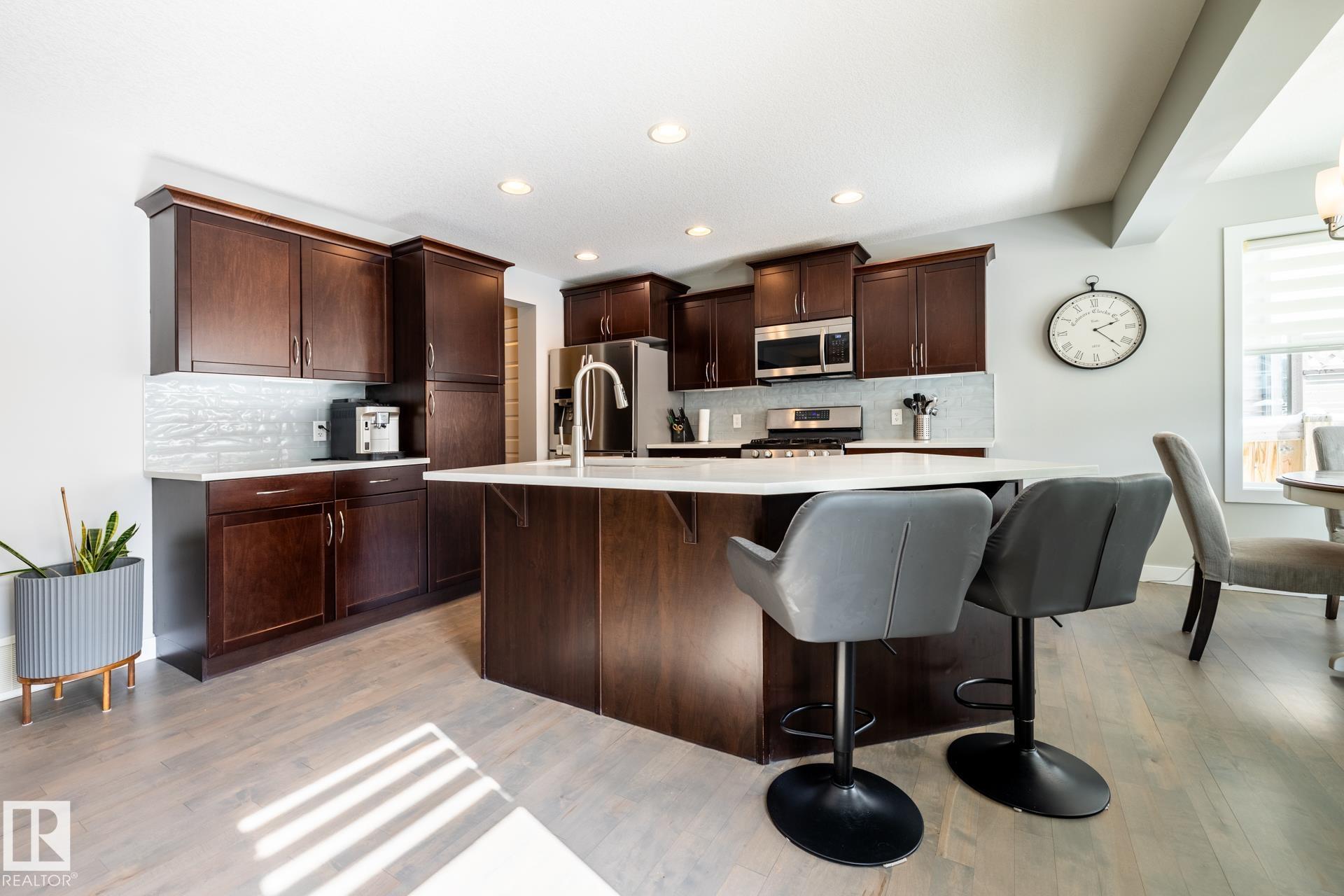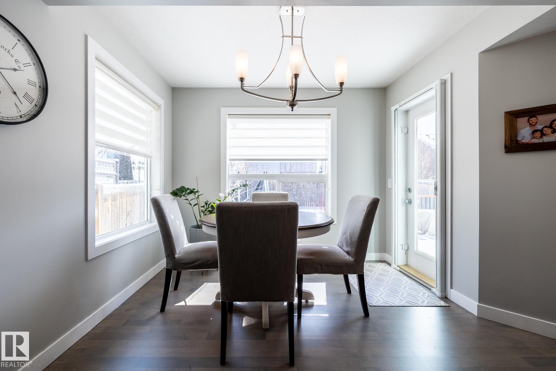 Fantastic 1800 sq ft two-storey home in Sherwood Park, ideally located within walking distance to Emerald Hills amenities, shopping, restaurants, and more! This bright and inviting home features a sun-soaked main floor with a desirable south-facing backyard and an abundance of windows that flood the space with natural light. The open-concept layout is highlighted by refinished hardwood floors, a cozy gas fireplace, and stylish upgrades including newer countertops and backsplash in the kitchen. Upstairs, you?ll find a spacious primary retreat complete with a walk-in closet and private ensuite, along with two additional generously sized bedrooms. A versatile bonus/flex space offers the perfect spot for a home office or play area. Finished basement provides even more living space, ideal for entertaining, a home gym, or movie night. This is the perfect family home in a prime location?close to everything you need while tucked into a welcoming community.