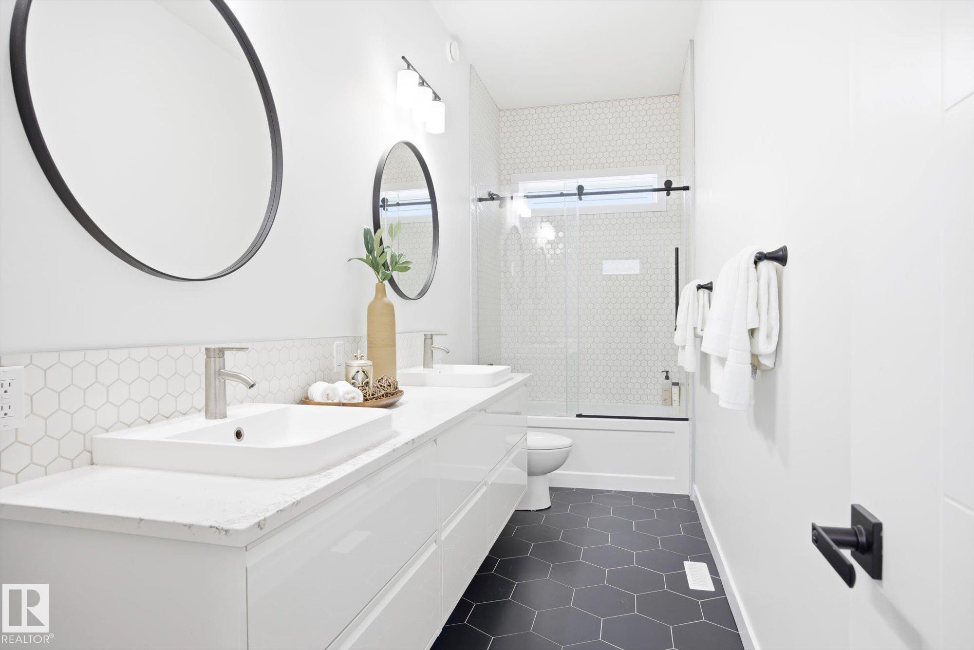 This gorgeous, contemporary "Canmore-styled" home is stunning in every way! The exterior features a large front deck and extraordinary curb appeal. With over 2100 sq. ft. above basement, 10' high ceilings, floor to ceiling windows, your family will have plenty of space and natural light. The main floor features an office, guest bathroom, and living room with extensive natural light, hardwood floors, and 10' high ceilings. The open concept kitchen has white cabinetry with black hardware, spacious island, quartz countertops, stainless steel appliances, and walk-in pantry. Dining area is adj to kitchen and large eating nook behind along windows with view of deck/yard. This home has "Light Zone" windows with 4 panes of glass w. 50 yr. warranty, ICF Foundation from basement all the way to the top of the second level. Second level has 3 large bedrooms, laundry, 2 full bathrooms and large primary w. walk-in closet. Bsmt is unfinished. On demand hot water, HRV, Radon det., Solar Panels. Dbl detached garage.