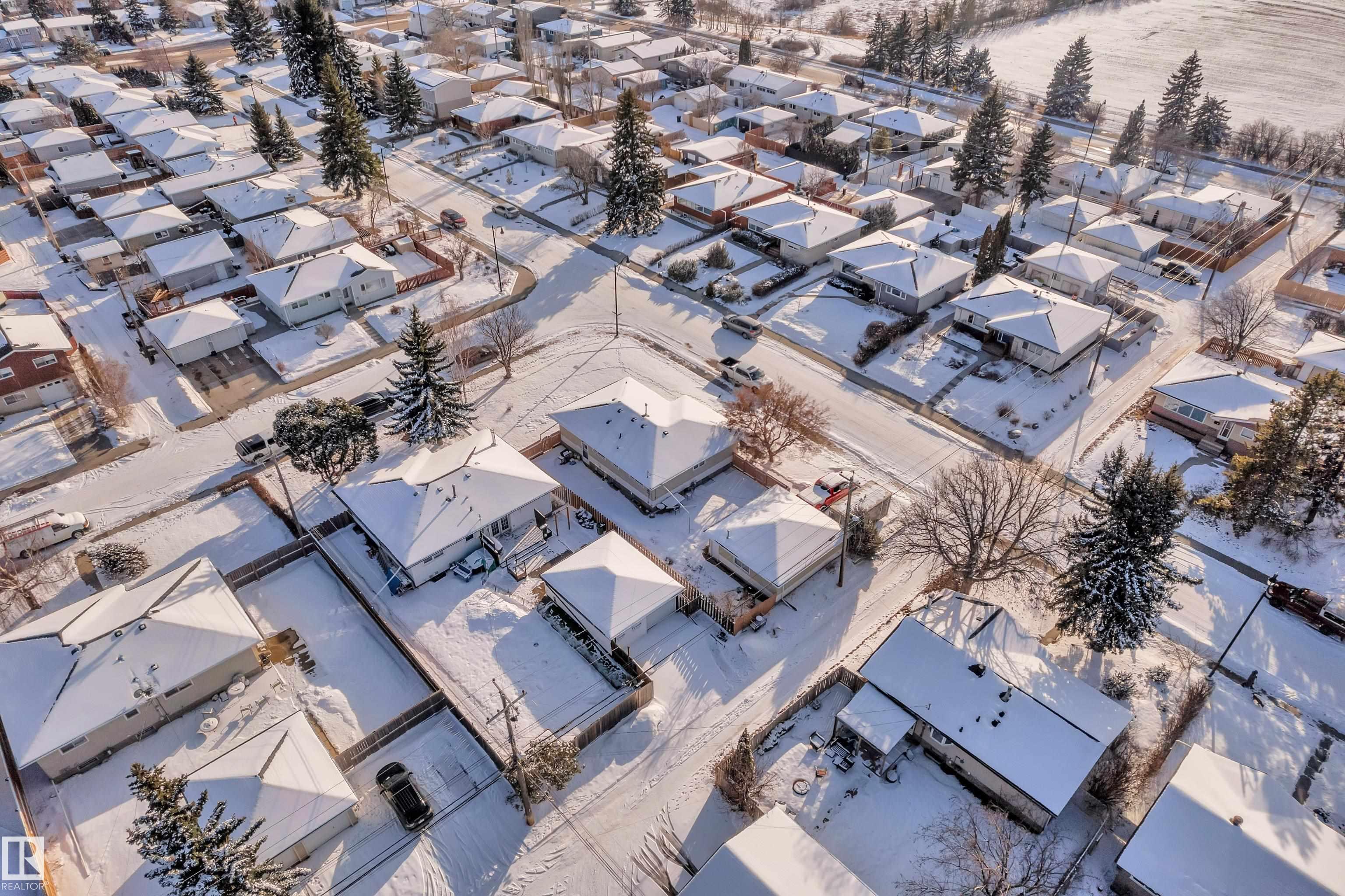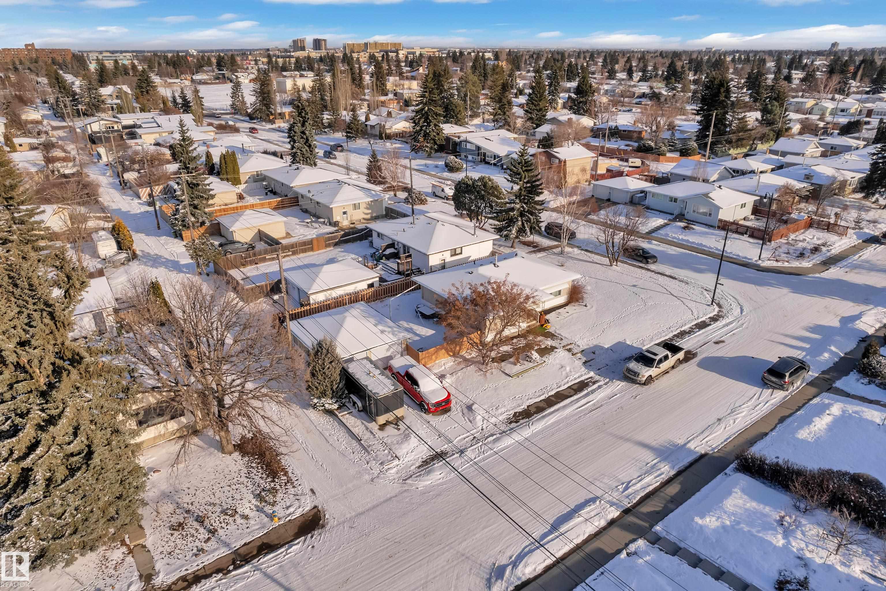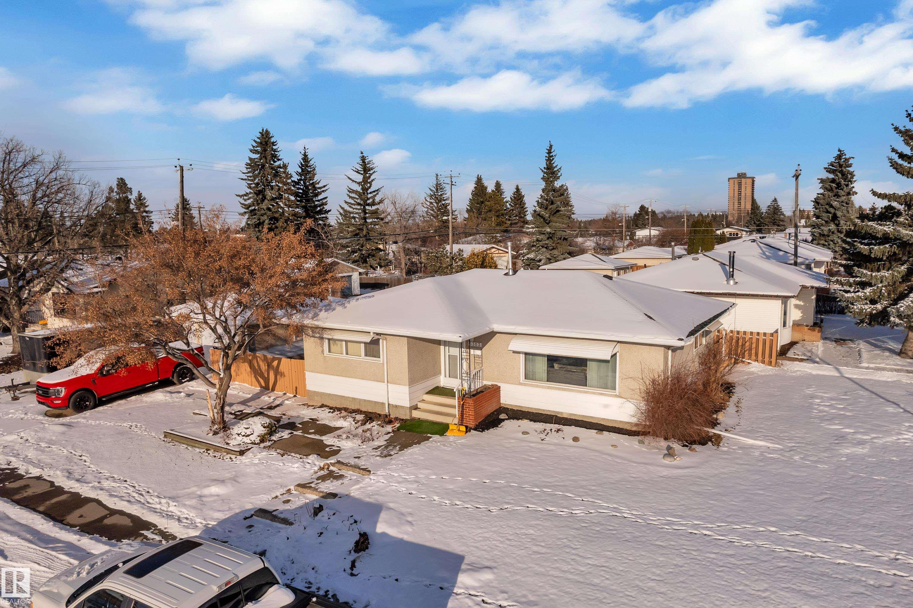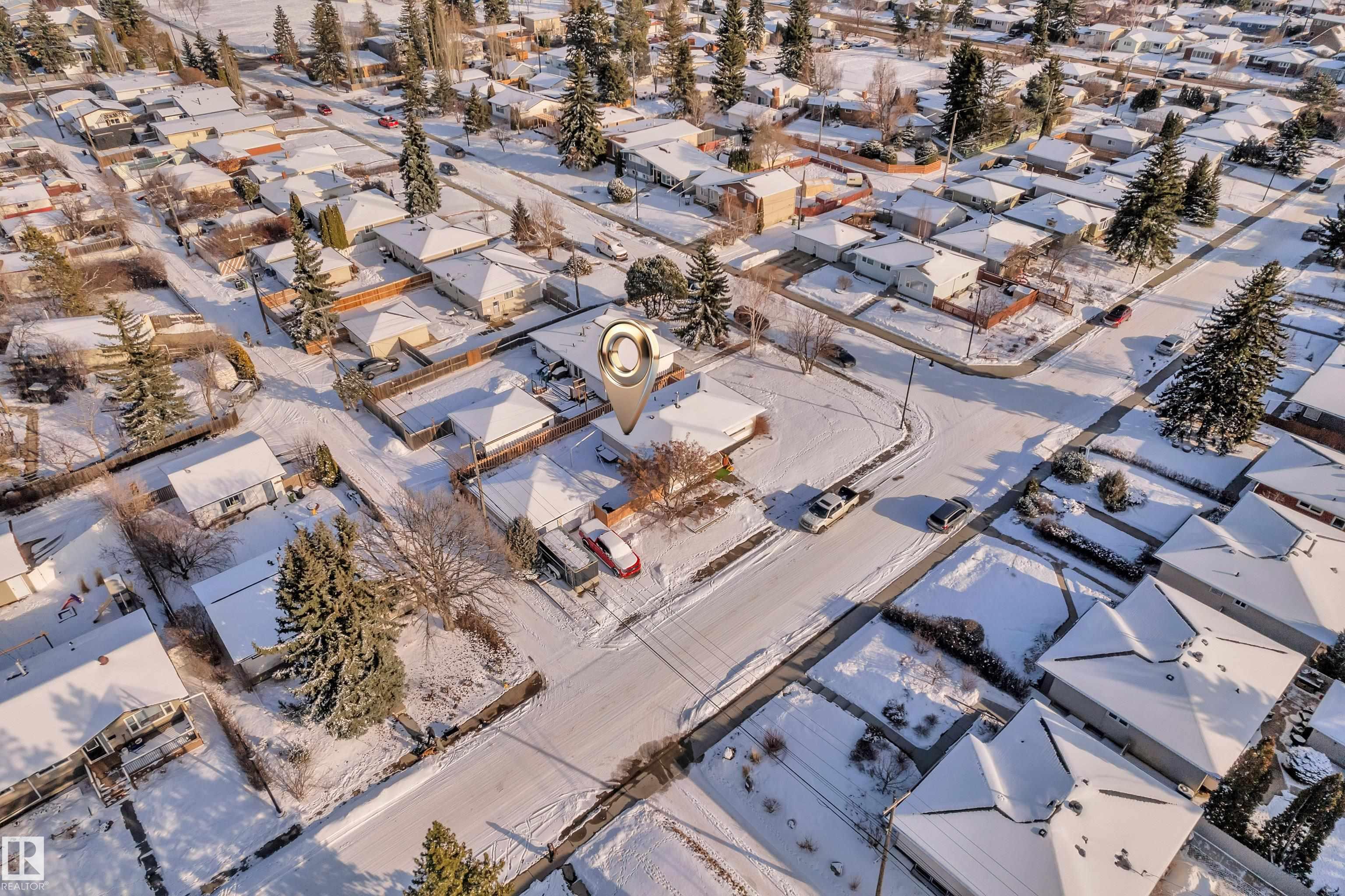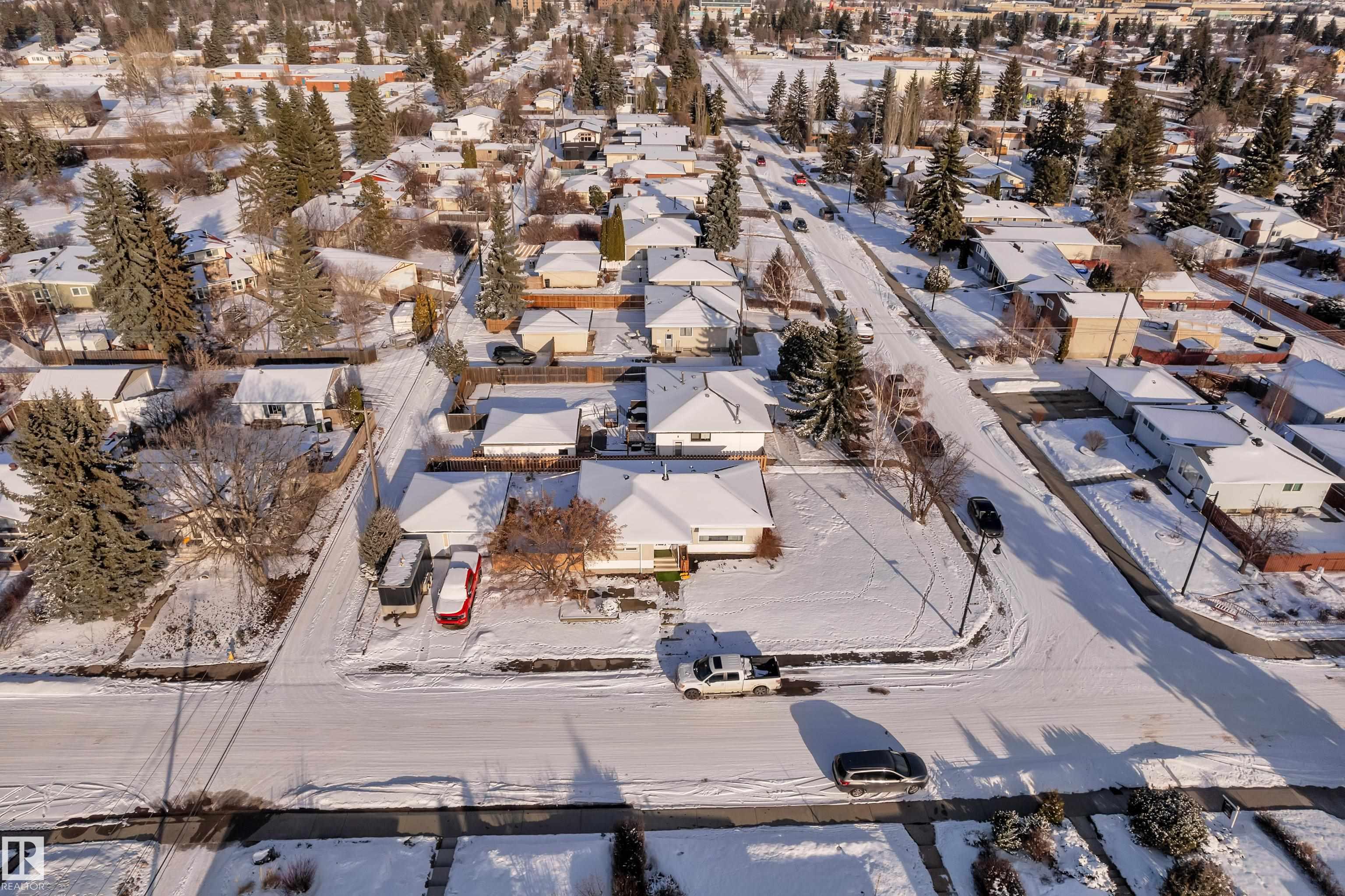 Meticulously maintained and fully finished bungalow in desirable Lendrum on a 60 × 120 ft corner lot! Bright living and dining areas showcase original ceilings and beautiful hardwood flooring. The main floor features an updated kitchen with refreshed cabinets, countertops, appliances and updated windows. Includes a spacious primary bedroom, two additional bedrooms, and a 4-piece bath. Separate rear entrance offers excellent suite potential. The basement, fully renovated in 2014, includes a large living area, bedroom, 3-piece bath, laundry, and plumbing/electrical rough-ins for a future kitchenette. Additional upgrades include furnace, hot water tank, and shingles (2017). Fully fenced yard with raised garden beds, green space, and room to expand for a patio. Double detached garage, aggregate driveway, and front sidewalk. Walking distance to schools, amenities, Southgate LRT, and quick access to Whitemud Drive. Rare corner lot offering strong future potential.