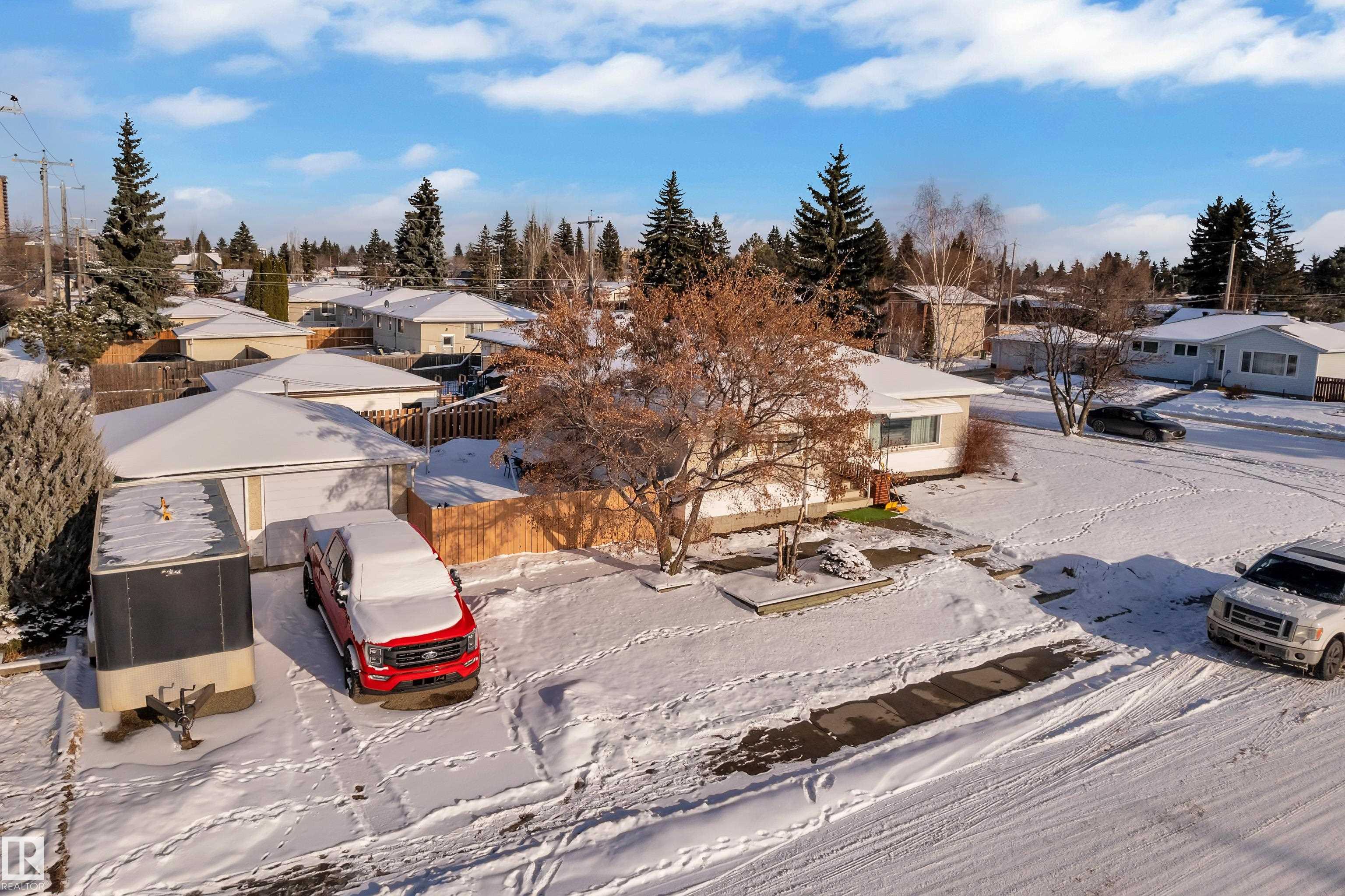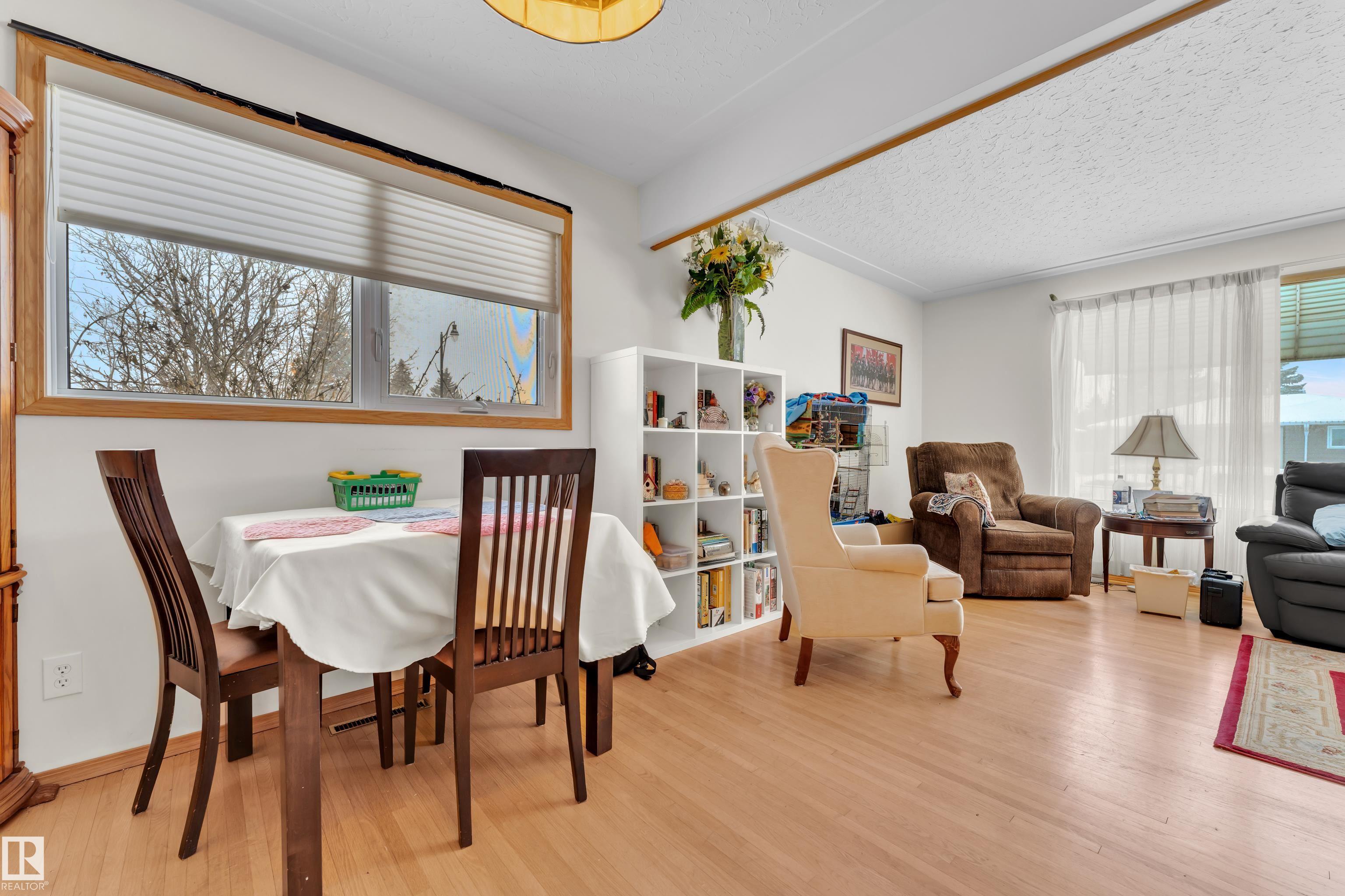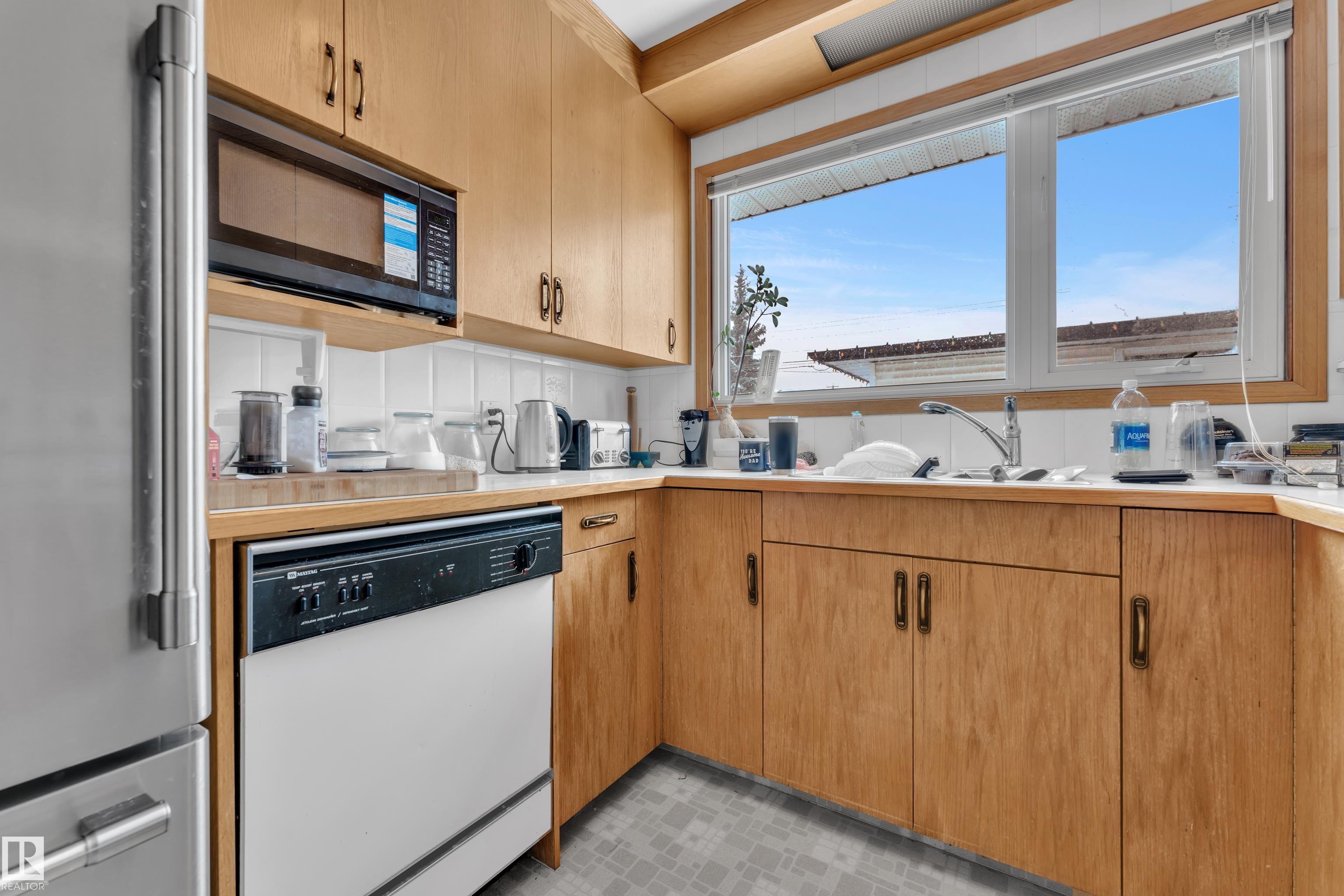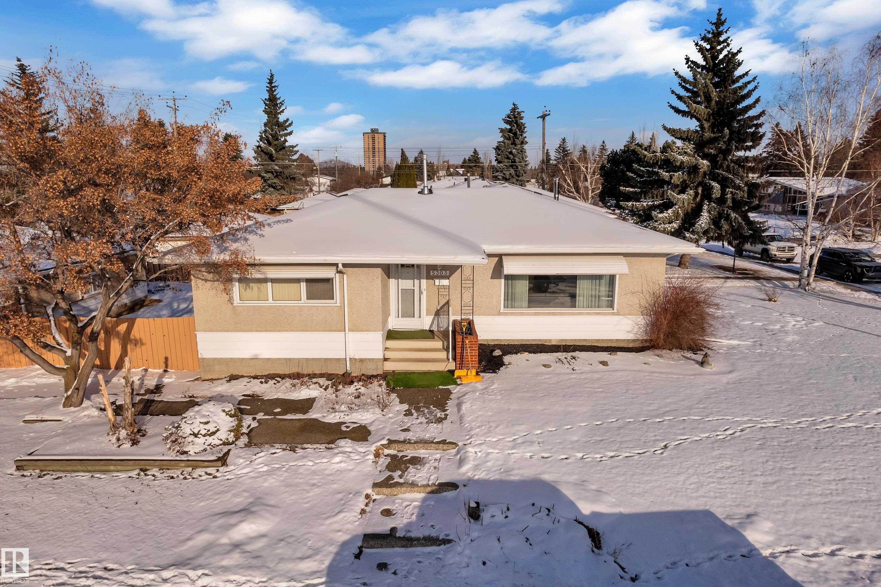 Meticulously maintained and fully finished bungalow in desirable Lendrum on a 60 × 120 ft corner lot! Bright living and dining areas showcase original ceilings and beautiful hardwood flooring. The main floor features an updated kitchen with refreshed cabinets, countertops, appliances and updated windows. Includes a spacious primary bedroom, two additional bedrooms, and a 4-piece bath. Separate rear entrance offers excellent suite potential. The basement, fully renovated in 2014, includes a large living area, bedroom, 3-piece bath, laundry, and plumbing/electrical rough-ins for a future kitchenette. Additional upgrades include furnace, hot water tank, and shingles (2017). Fully fenced yard with raised garden beds, green space, and room to expand for a patio. Double detached garage, aggregate driveway, and front sidewalk. Walking distance to schools, amenities, Southgate LRT, and quick access to Whitemud Drive. Rare corner lot offering strong future potential.