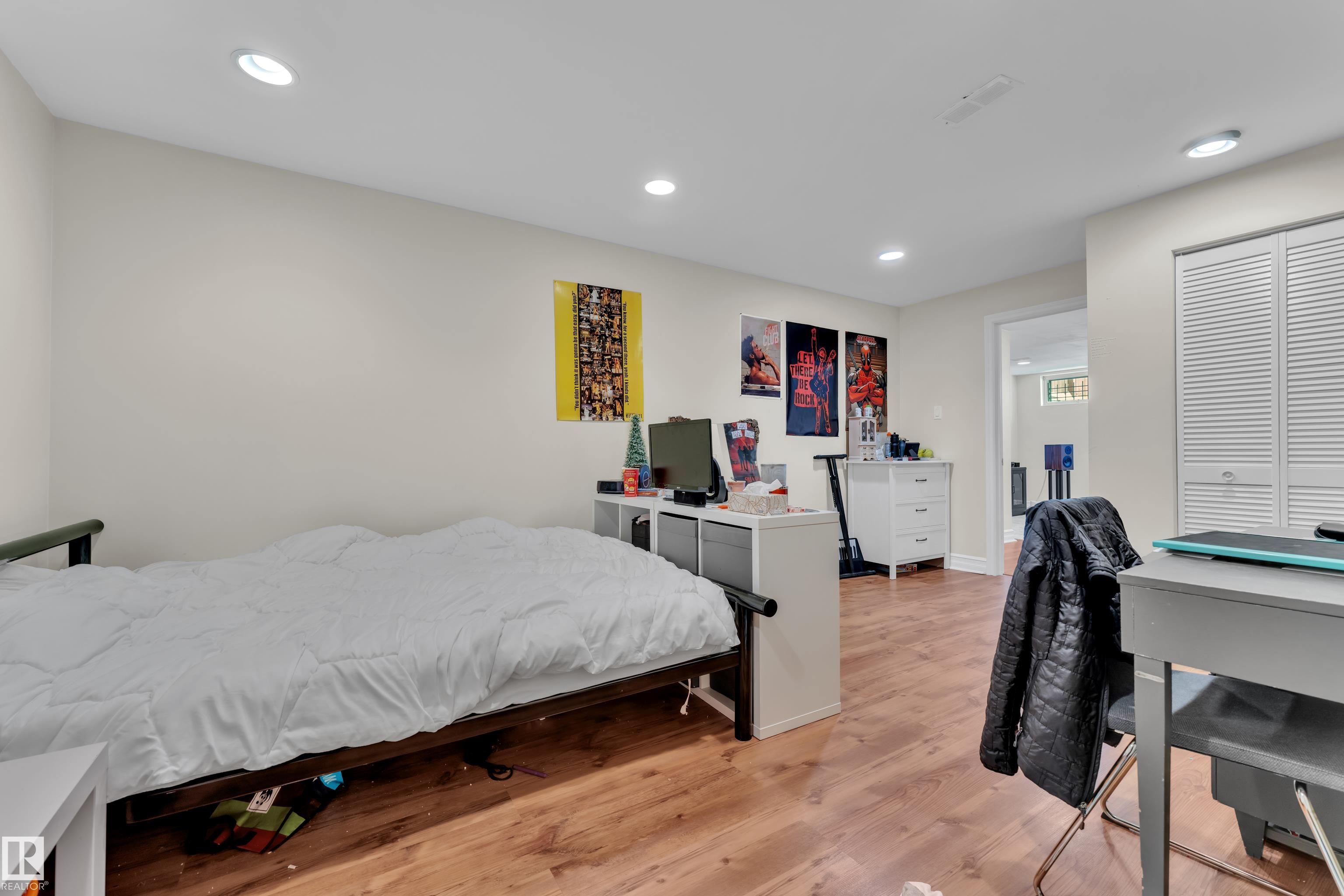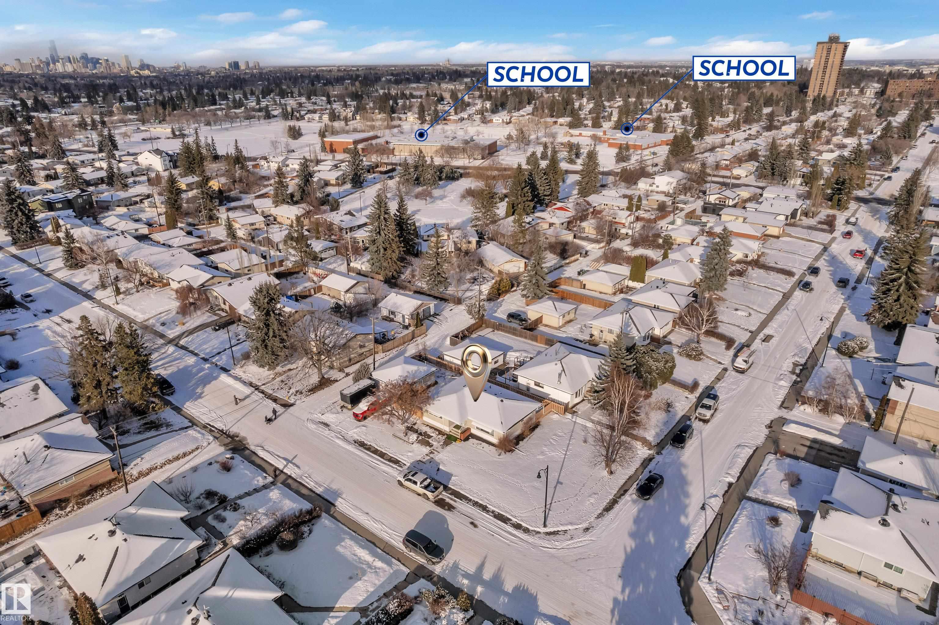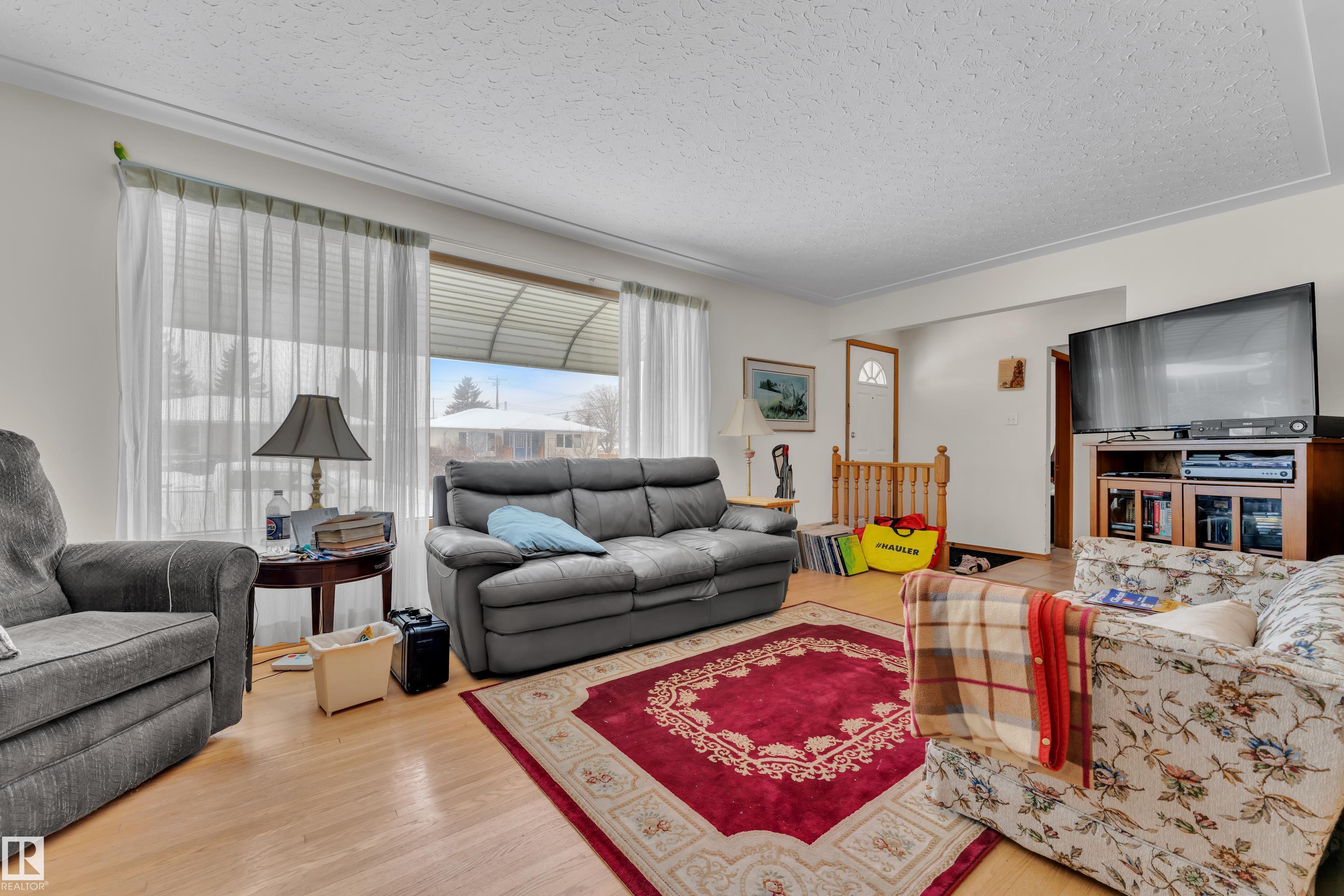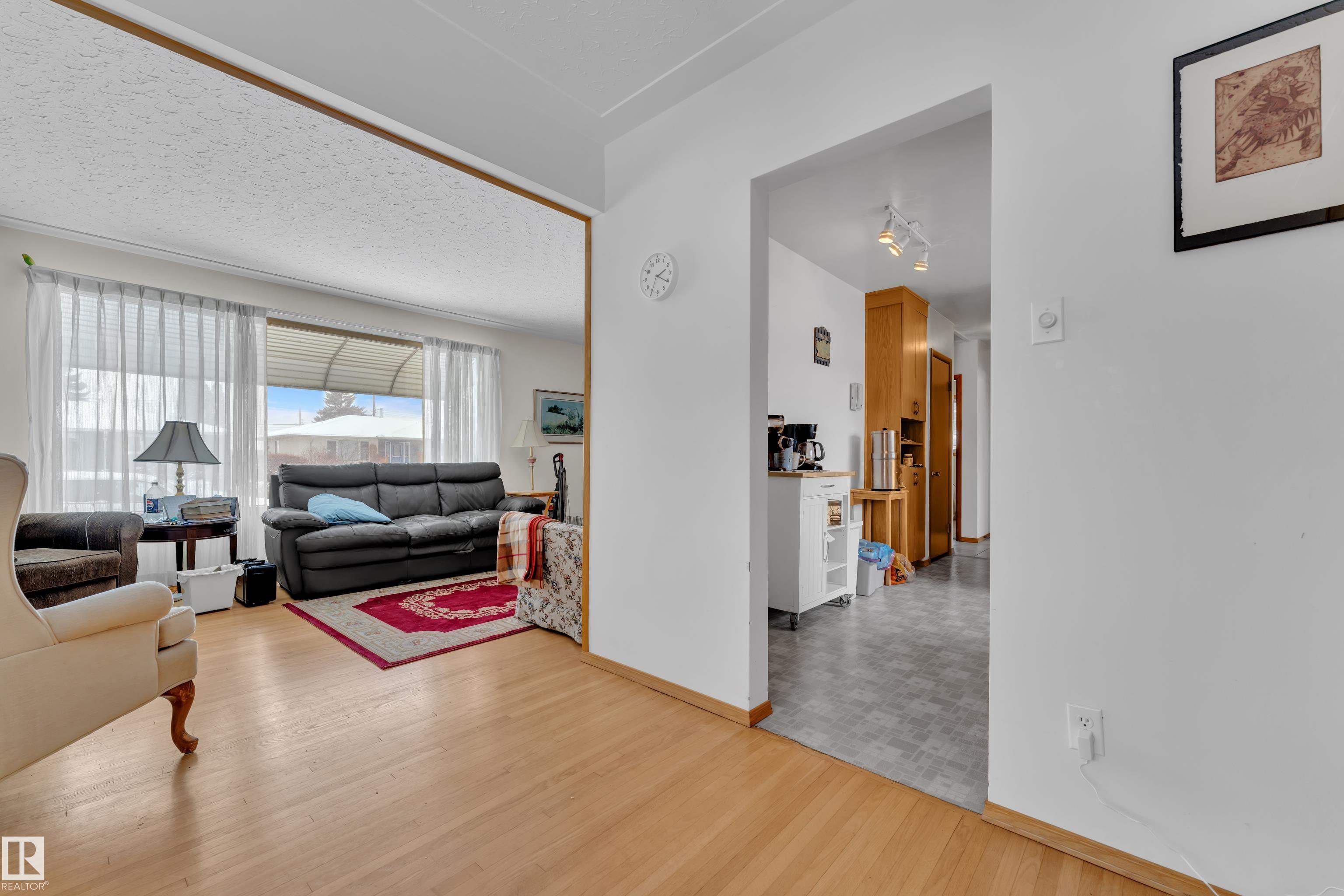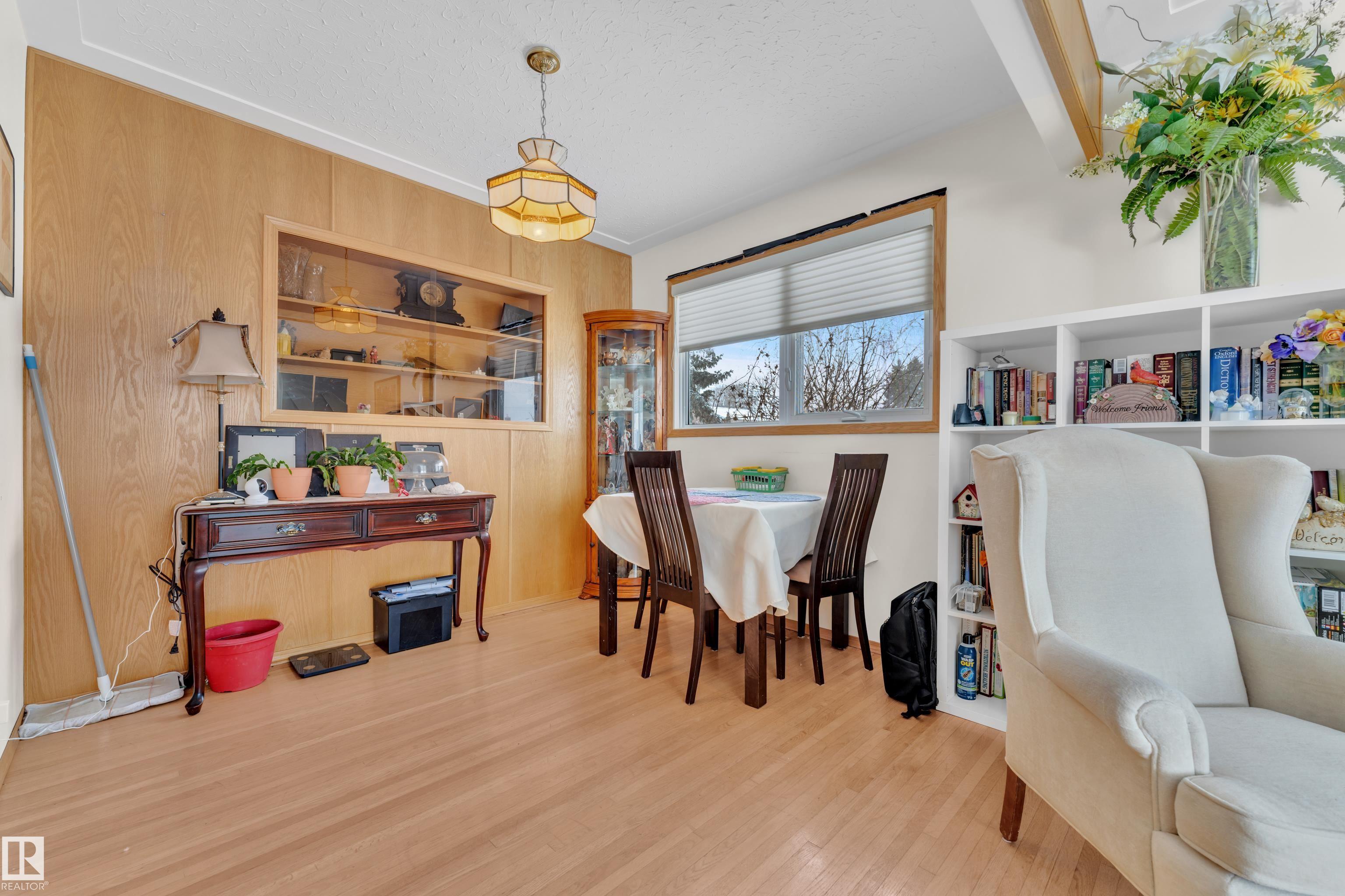 Meticulously maintained and fully finished bungalow in desirable Lendrum on a 60 × 120 ft corner lot! Bright living and dining areas showcase original ceilings and beautiful hardwood flooring. The main floor features an updated kitchen with refreshed cabinets, countertops, appliances and updated windows. Includes a spacious primary bedroom, two additional bedrooms, and a 4-piece bath. Separate rear entrance offers excellent suite potential. The basement, fully renovated in 2014, includes a large living area, bedroom, 3-piece bath, laundry, and plumbing/electrical rough-ins for a future kitchenette. Additional upgrades include furnace, hot water tank, and shingles (2017). Fully fenced yard with raised garden beds, green space, and room to expand for a patio. Double detached garage, aggregate driveway, and front sidewalk. Walking distance to schools, amenities, Southgate LRT, and quick access to Whitemud Drive. Rare corner lot offering strong future potential.