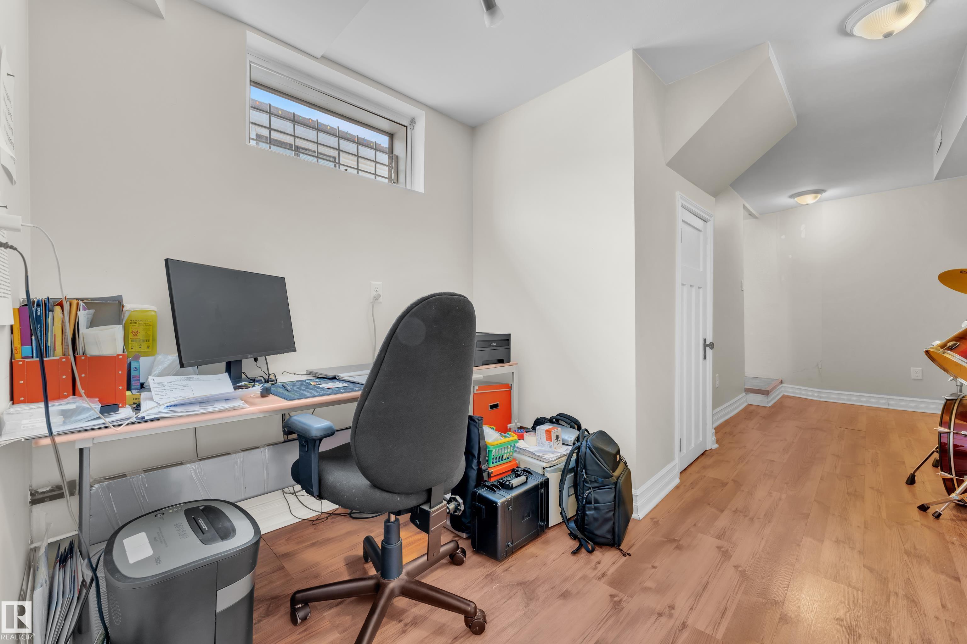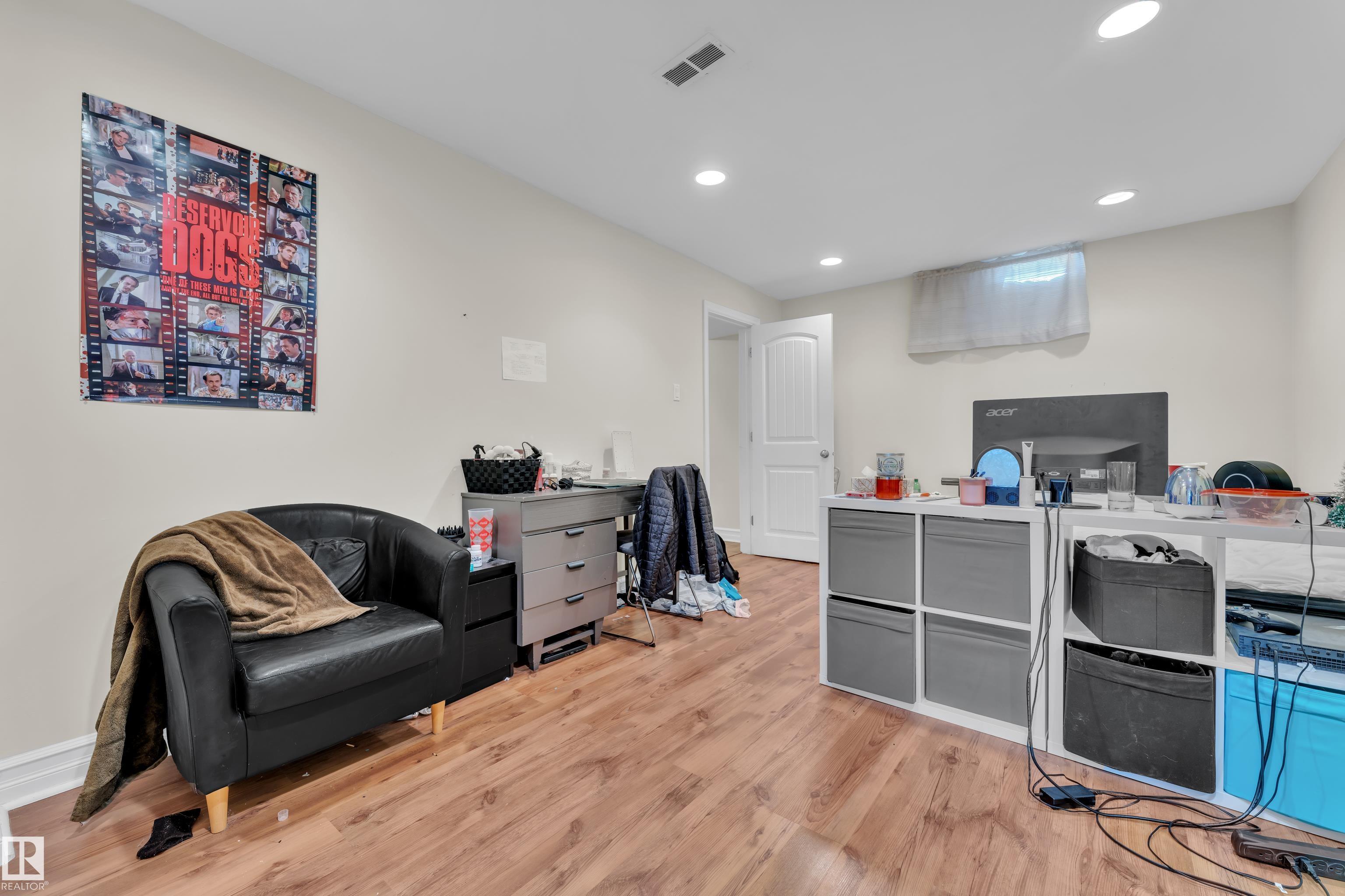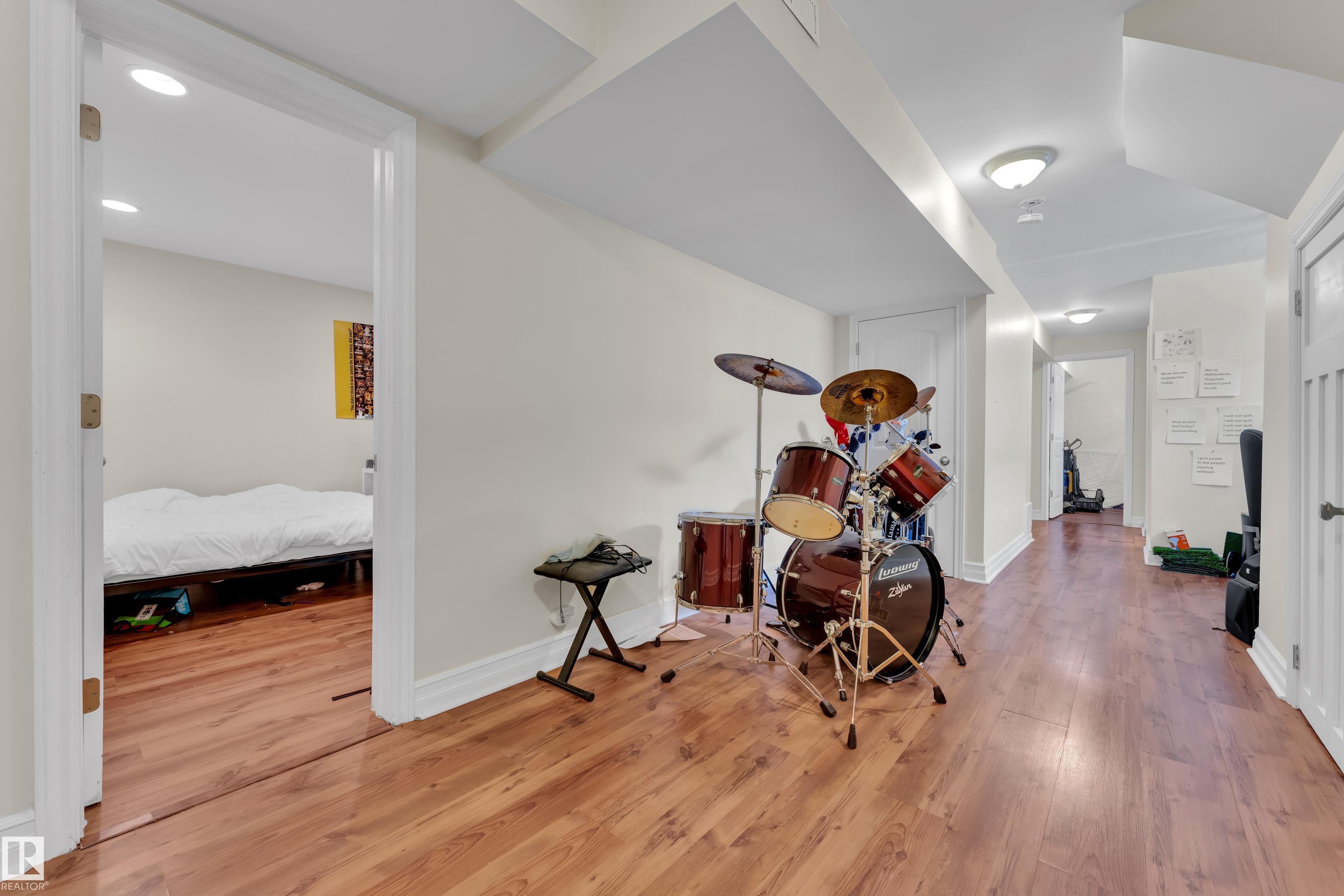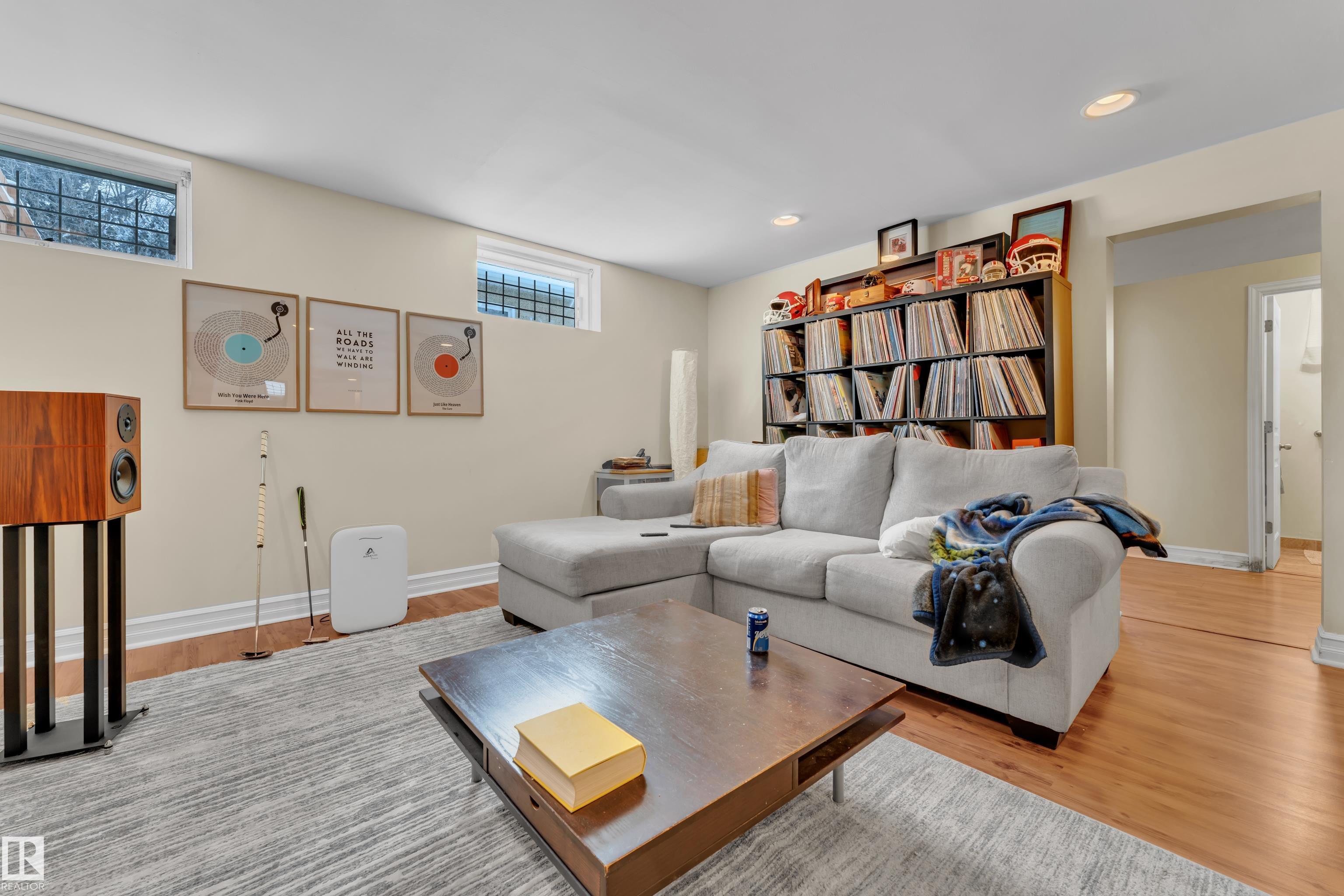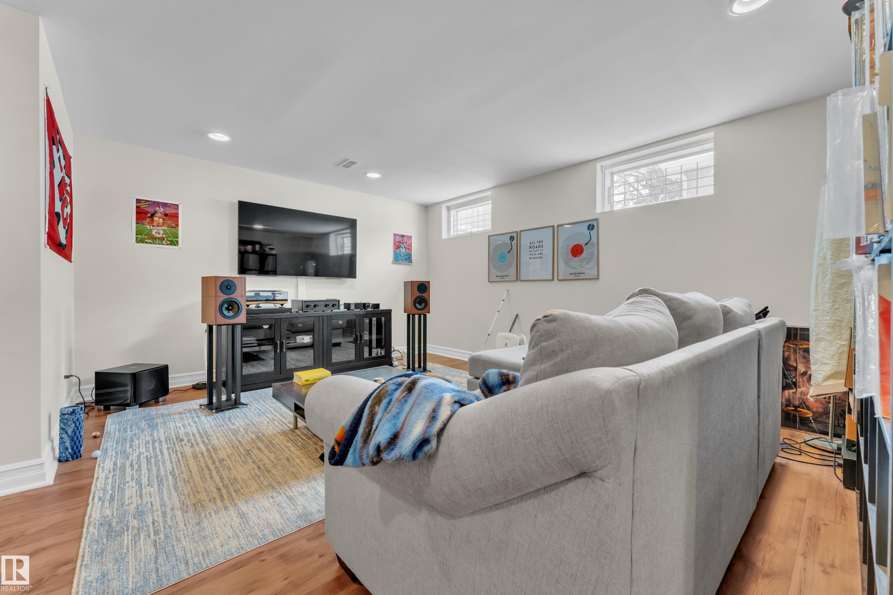 Meticulously maintained and fully finished bungalow in desirable Lendrum on a 60 × 120 ft corner lot! Bright living and dining areas showcase original ceilings and beautiful hardwood flooring. The main floor features an updated kitchen with refreshed cabinets, countertops, appliances and updated windows. Includes a spacious primary bedroom, two additional bedrooms, and a 4-piece bath. Separate rear entrance offers excellent suite potential. The basement, fully renovated in 2014, includes a large living area, bedroom, 3-piece bath, laundry, and plumbing/electrical rough-ins for a future kitchenette. Additional upgrades include furnace, hot water tank, and shingles (2017). Fully fenced yard with raised garden beds, green space, and room to expand for a patio. Double detached garage, aggregate driveway, and front sidewalk. Walking distance to schools, amenities, Southgate LRT, and quick access to Whitemud Drive. Rare corner lot offering strong future potential.