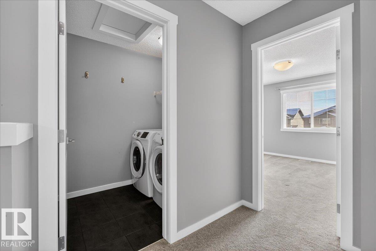 Visit REALTORŪ website for additional information.Welcome to this METICULOUSLY MAINTAINED 1,471 sqft 2017 half-duplex in Prescott, a desirable newer community in Spruce Grove. Pride of ownership is evident throughout. The main floor offers a open-concept layout featuring a bright kitchen with a LARGE ISLAND, stainless steel appliances, dining area, and comfortable living room, plus a convenient 2-piece bath. Upstairs includes a GENEROUS PRIMARY BEDROOM with a LARGE WALK-IN CLOSET and 3-piece ensuite, along with two additional bedrooms, a 4-piece bathroom, and a conveniently located laundry room. The unfinished basement provides roughed-in plumbing and excellent potential for future development. Enjoy the deck and nicely sized backyard, perfect for relaxing or entertaining. Complete with an attached single garage, CENTRAL AIR CONDITIONING, and within walking distance to schools and shopping.
