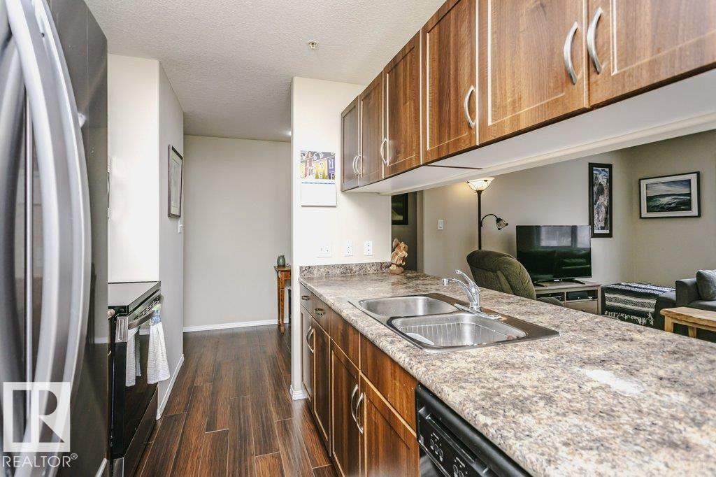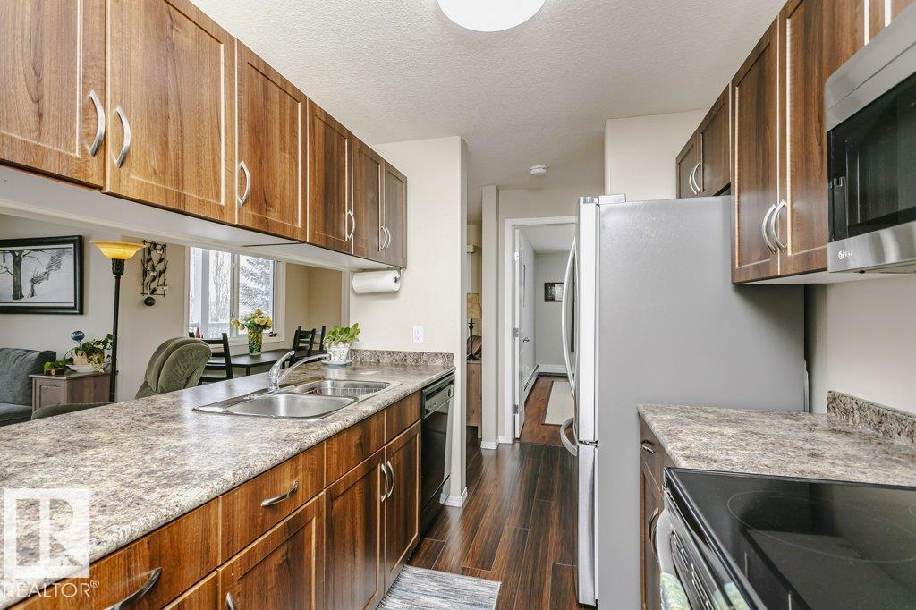 Bright and stylish second-floor corner end unit with an oversized wrap-around deck and desirable west exposure?perfect for soaking up evening sun. This well-maintained 2-bedroom, 2-bath condo features an efficient galley kitchen with upgraded appliances, a formal dining area, and a comfortable living space enhanced by laminate flooring and fresh modern paint throughout. The spacious primary bedroom offers a private ensuite, while the second bedroom and full bath provide flexibility for guests or home office use. Enjoy the convenience of in-suite laundry, additional storage, and a heated underground parkade. Ideally located close to public transit and just minutes from shopping, restaurants, grocery stores, and pharmacies. A fantastic opportunity for first-time buyers, downsizers, or investors seeking low-maintenance living in a prime location.