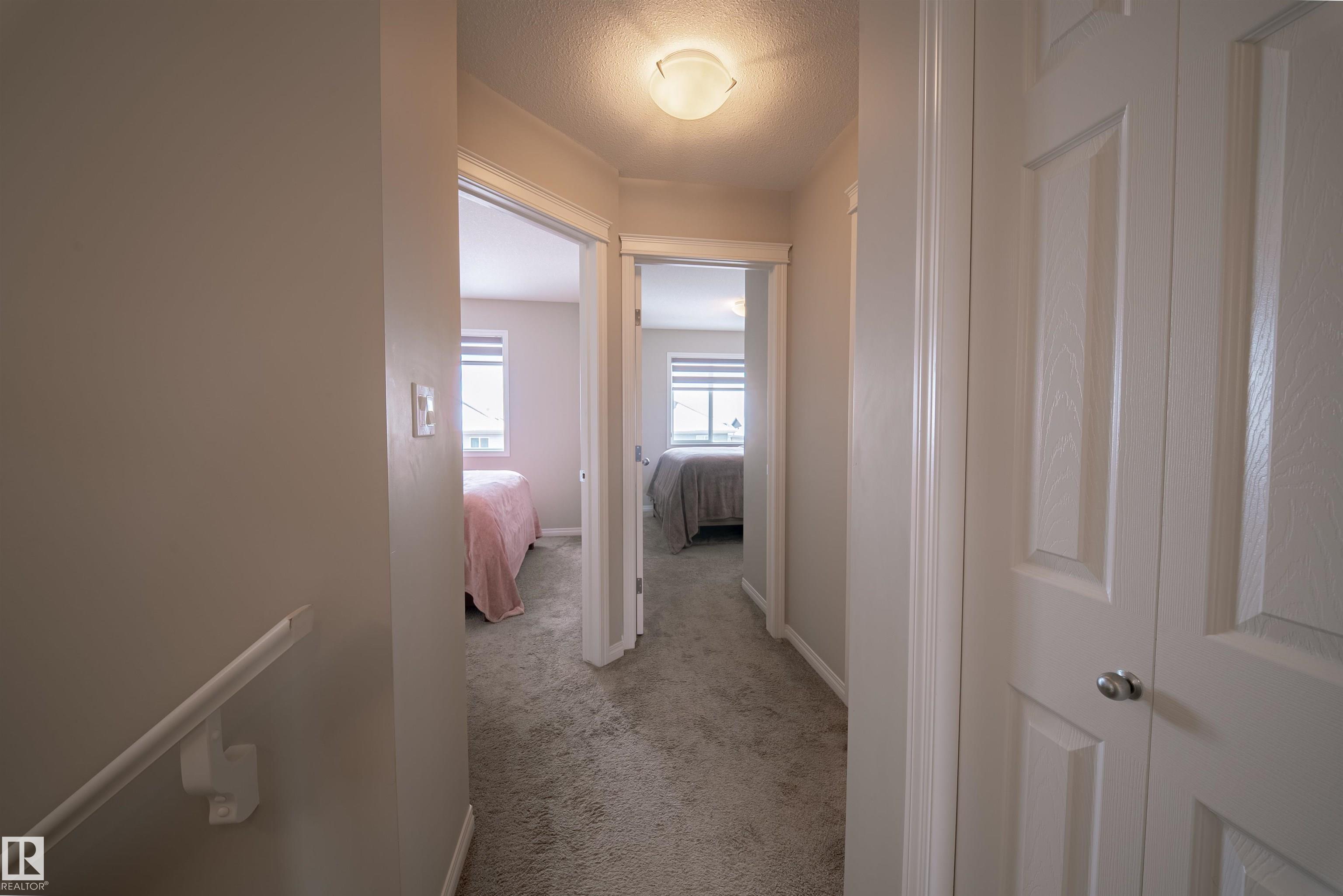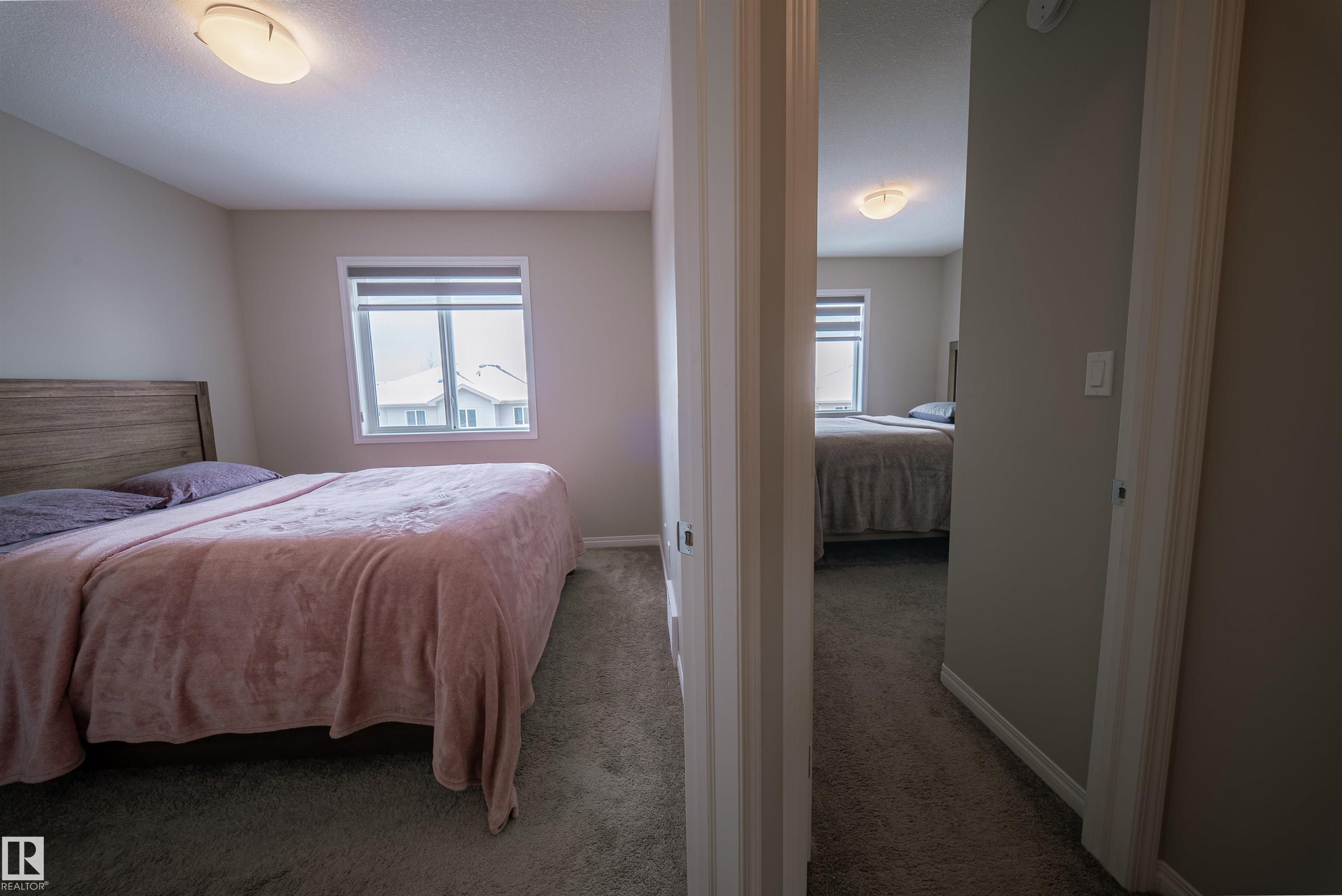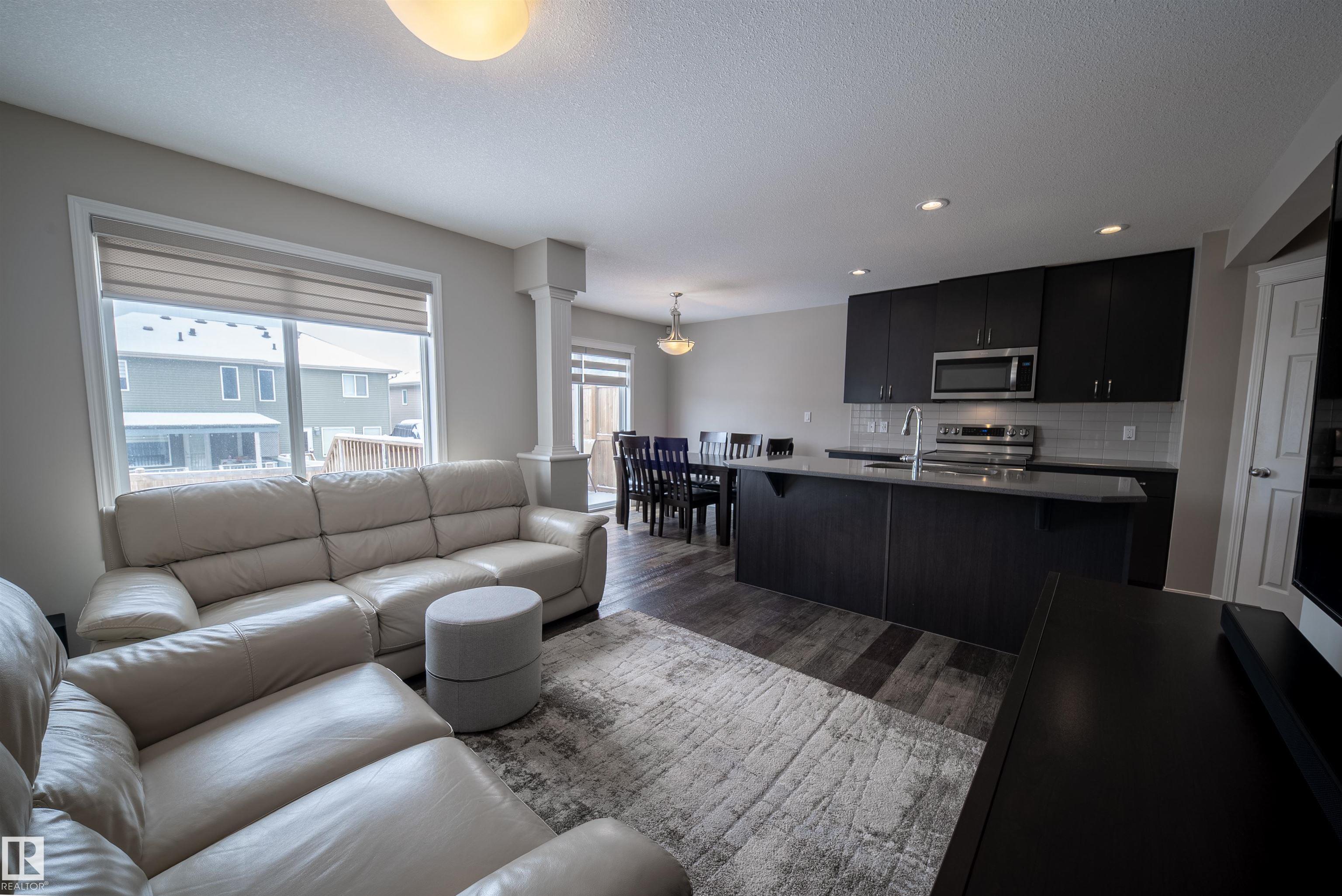 Welcome to this well maintained half duplex in the heart of Walker. A welcoming foyer sets the tone as you step inside. The main floor is anchored by a well-appointed kitchen with a centre island with quartz countertops, opening seamlessly into the dining and living areas, ideal for everyday living and effortless entertaining. A walk-through pantry, powder room, and functional mudroom complete the space. A private deck extends your living space outdoors. Upstairs, three bedrooms provide comfort and privacy. The primary bedroom features an ensuite with dual vanities, with quartz countertops carried throughout every bathroom. Upper floor laundry adds convenience right where you need it. The basement offers a separate entrance, roughed in for a future bathroom, with excellent potential for additional living space. Centralized A/C and double pane windows ensure year round comfort. Ideally situated near Shauna May Seneca School, Watt Common, and Movati Athletic Club with easy Henday access via 50 Street.