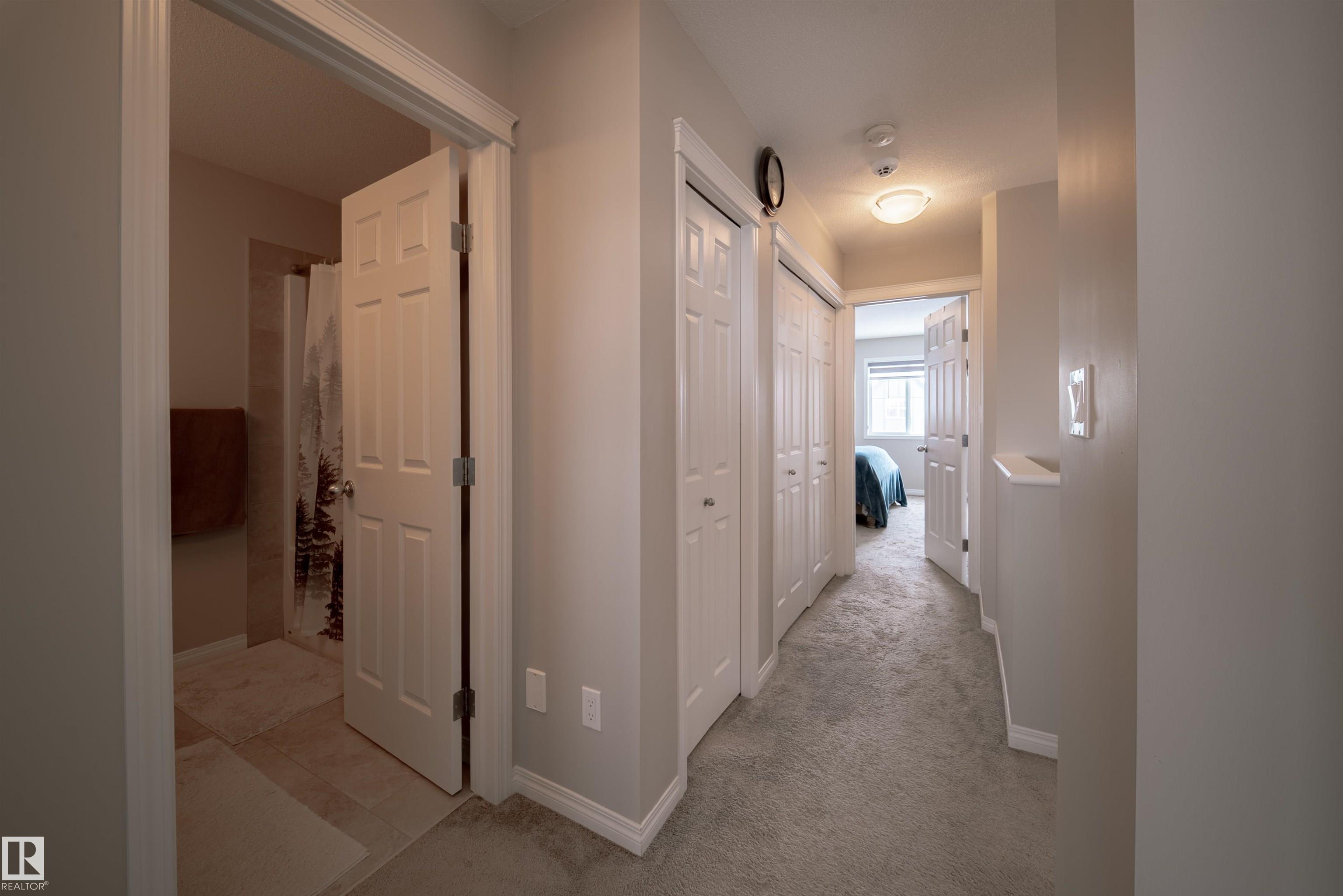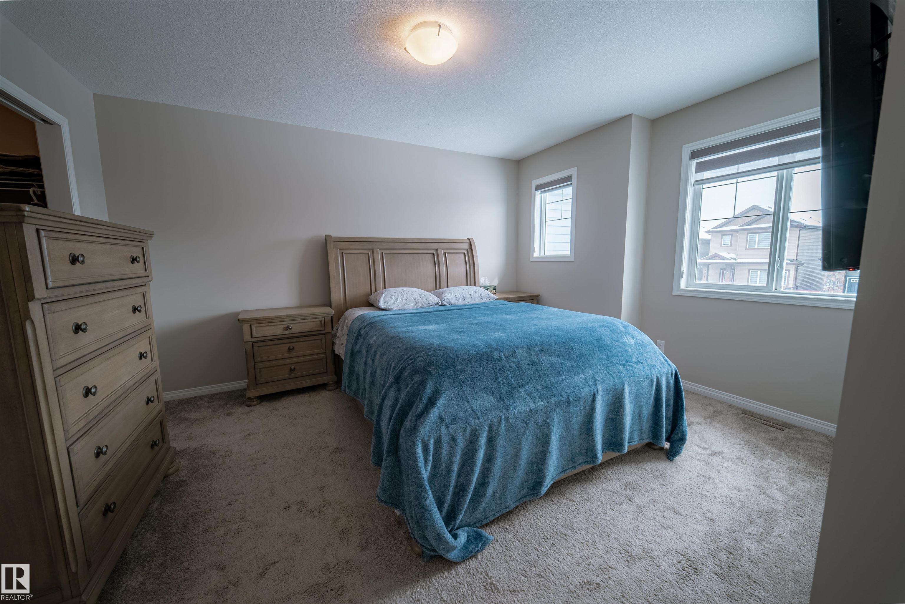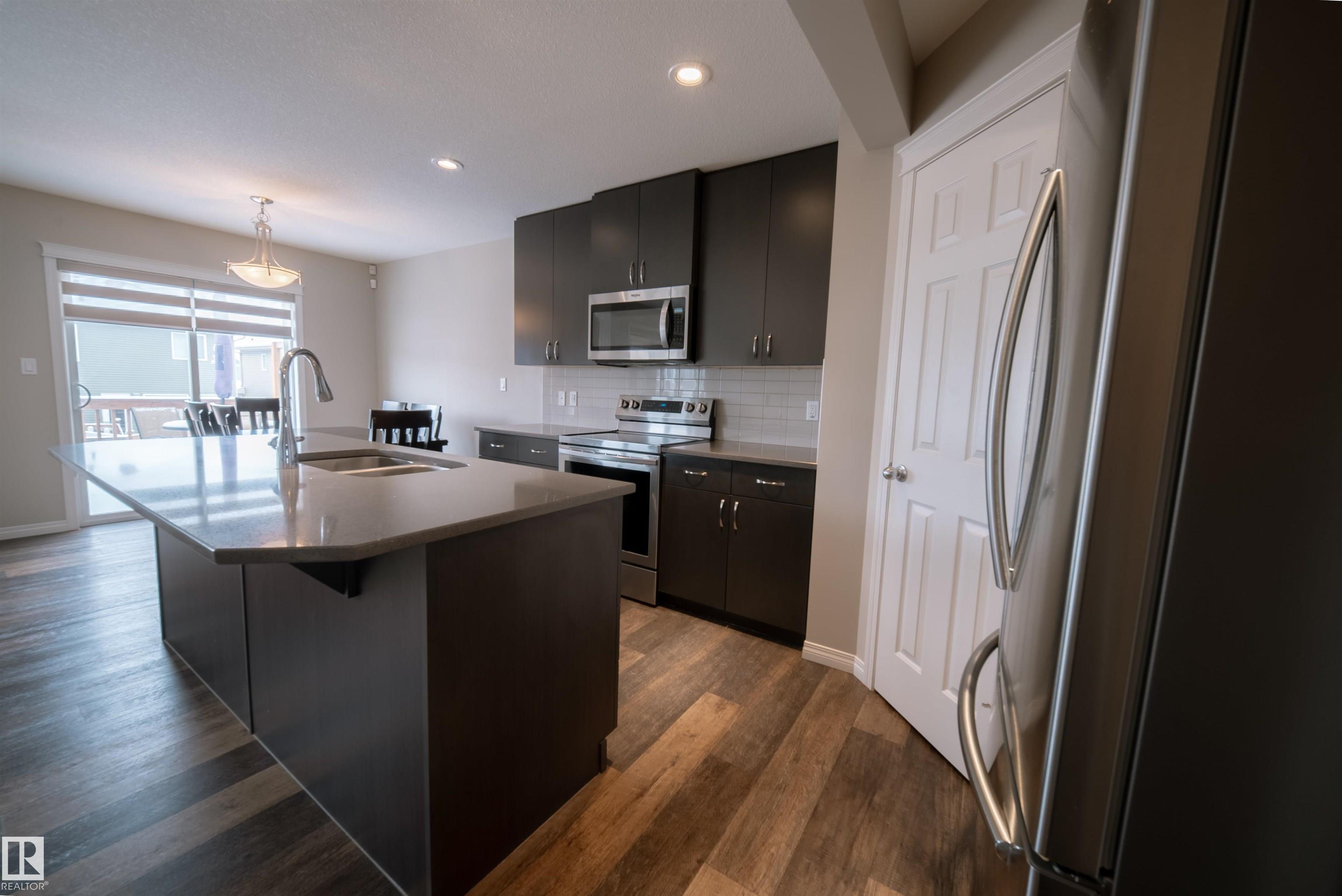 Welcome to this well maintained half duplex in the heart of Walker. A welcoming foyer sets the tone as you step inside. The main floor is anchored by a well-appointed kitchen with a centre island with quartz countertops, opening seamlessly into the dining and living areas, ideal for everyday living and effortless entertaining. A walk-through pantry, powder room, and functional mudroom complete the space. A private deck extends your living space outdoors. Upstairs, three bedrooms provide comfort and privacy. The primary bedroom features an ensuite with dual vanities, with quartz countertops carried throughout every bathroom. Upper floor laundry adds convenience right where you need it. The basement offers a separate entrance, roughed in for a future bathroom, with excellent potential for additional living space. Centralized A/C and double pane windows ensure year round comfort. Ideally situated near Shauna May Seneca School, Watt Common, and Movati Athletic Club with easy Henday access via 50 Street.