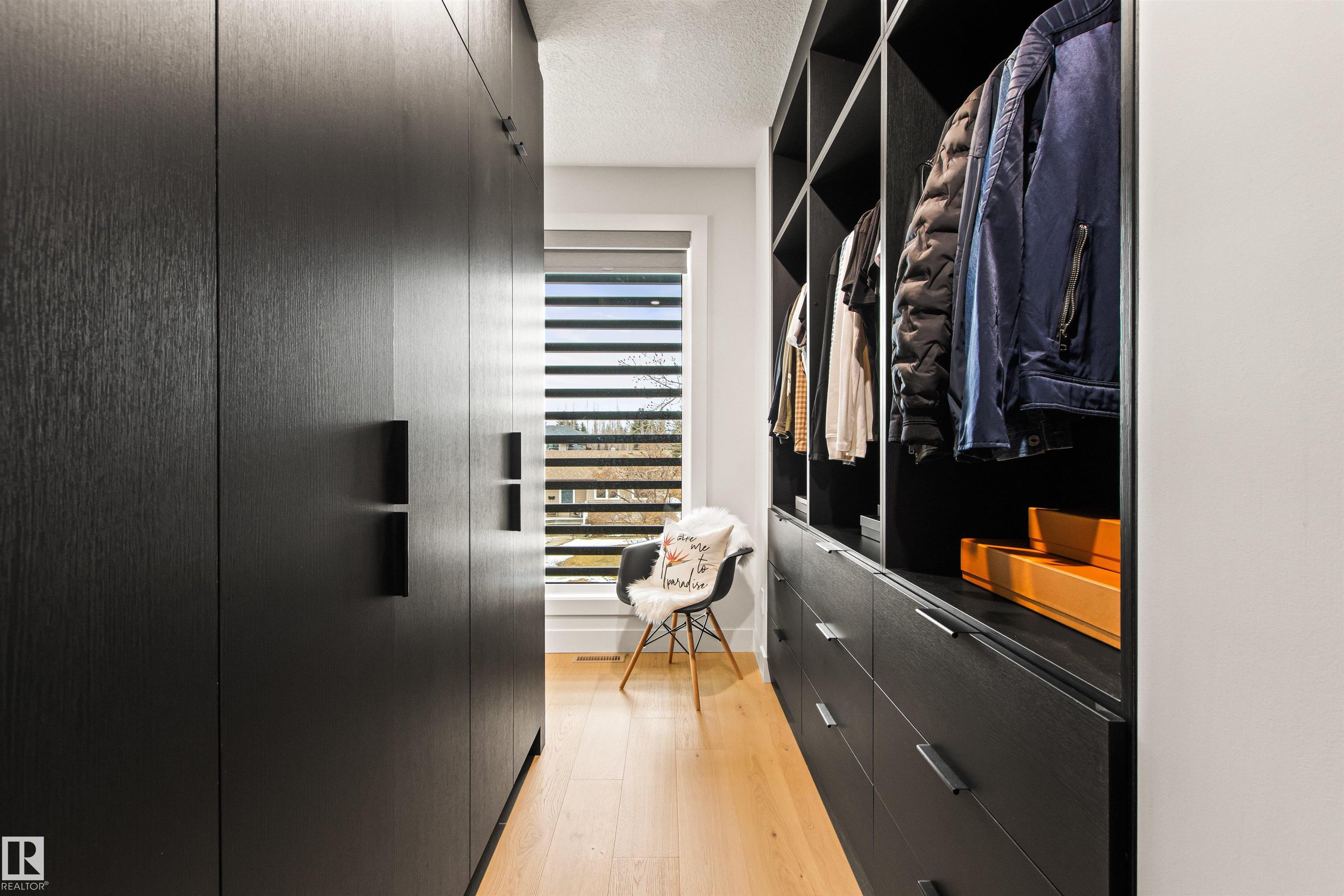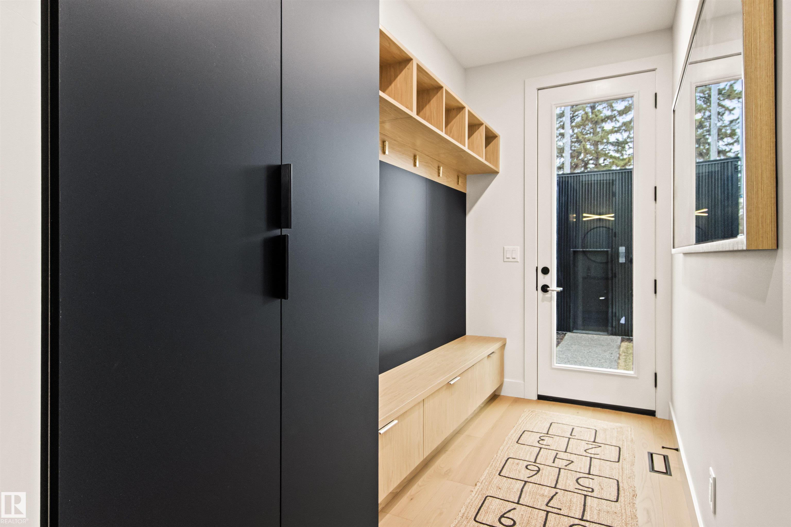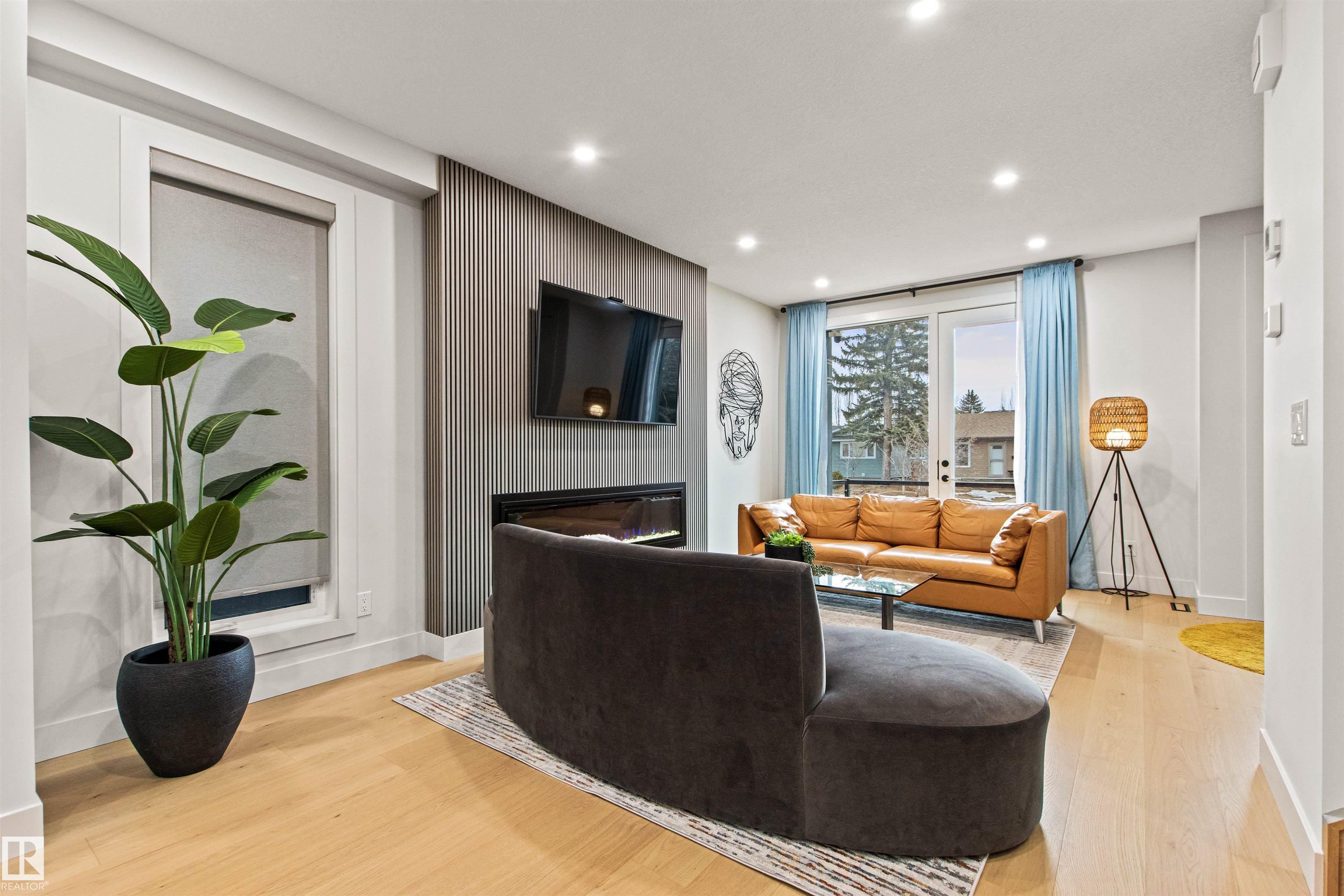 Welcome to Parkview & this truly TURNKEY property! Developed on 3 levels with superb workmanship. Engineered HARDWOOD throughout, 9' CEILINGS, & fantastic layout. Kitchen cabinets & closets by ESSENCE CABINETS. Showstopper kitchen has large waterfall QUARTZ island & high end BOSCH appliances ( including gas stove & 2 ovens: electric & gas). Living room has GARDEN doors leading to a front patio. Dining area, mud room & 2 pc bath complete the main level. Upstairs you find 3 bedrooms (including Primary suite with spacious closet & beautiful ensuite bath) & main bath. Basement has SEPARATE entrance & provides 2 additional bedrooms, family room (with wet bar, dishwasher & mini fridge), full bath, laundry hookup & utility room. NAVIEN tankless water heater, central A/C make life comfortable. Property is FENCED & LANDSCAPED. Exposed AGGREGATE concrete sidewalks & patios, ACRYLIC stucco & metal exterior add to a rich feeling of this property. DOUBLE detached garage is insulated. Make a move!