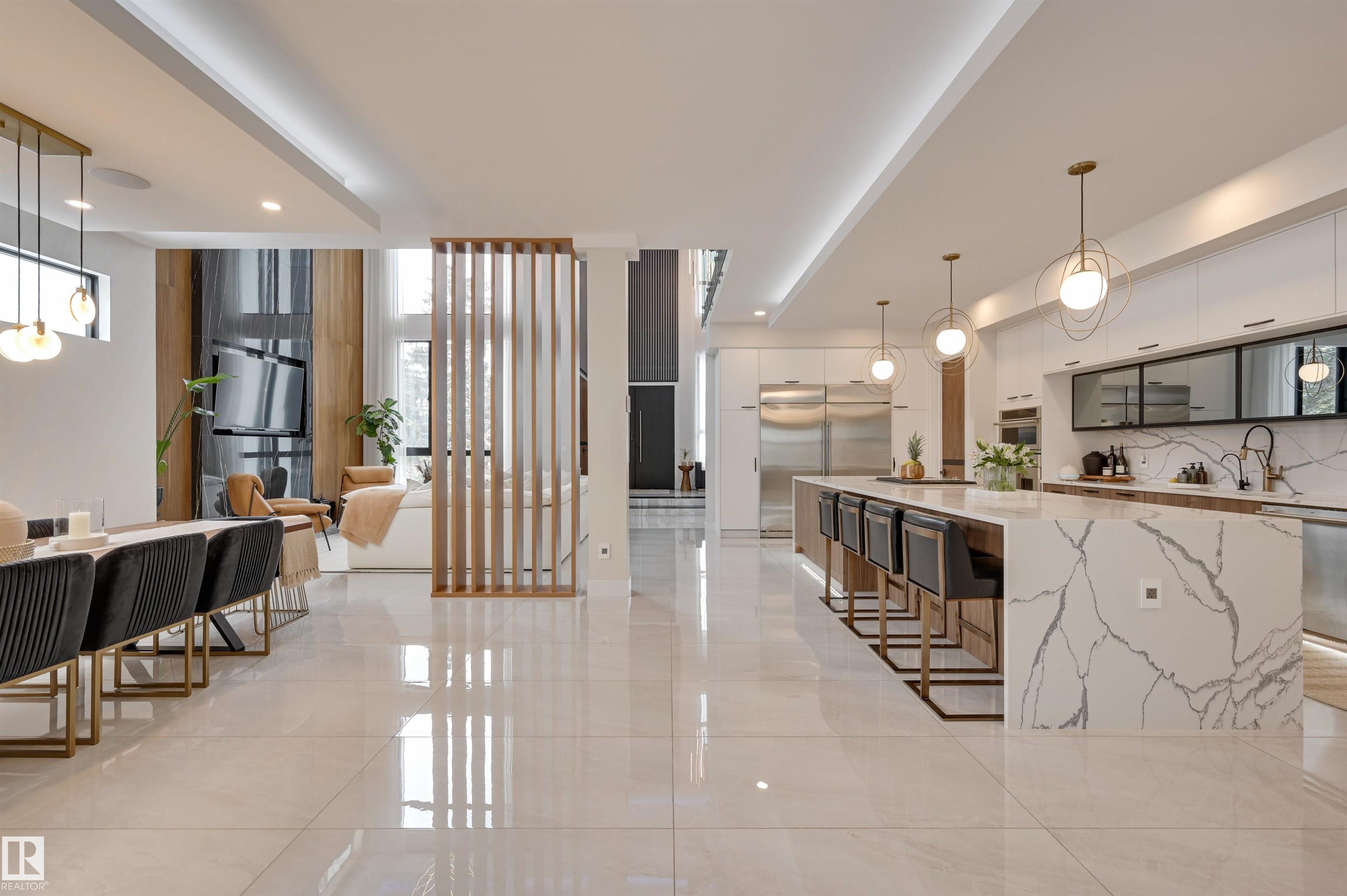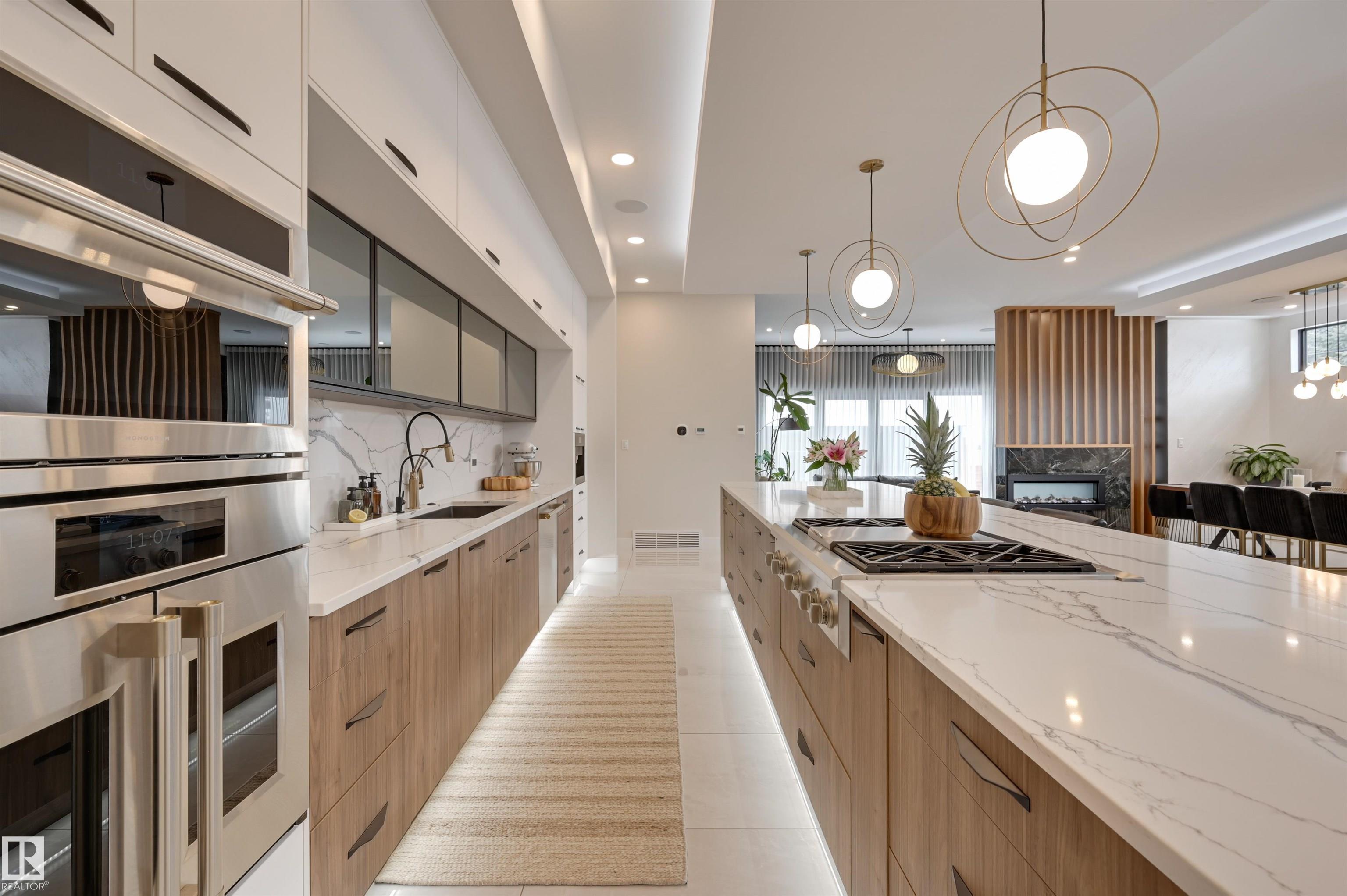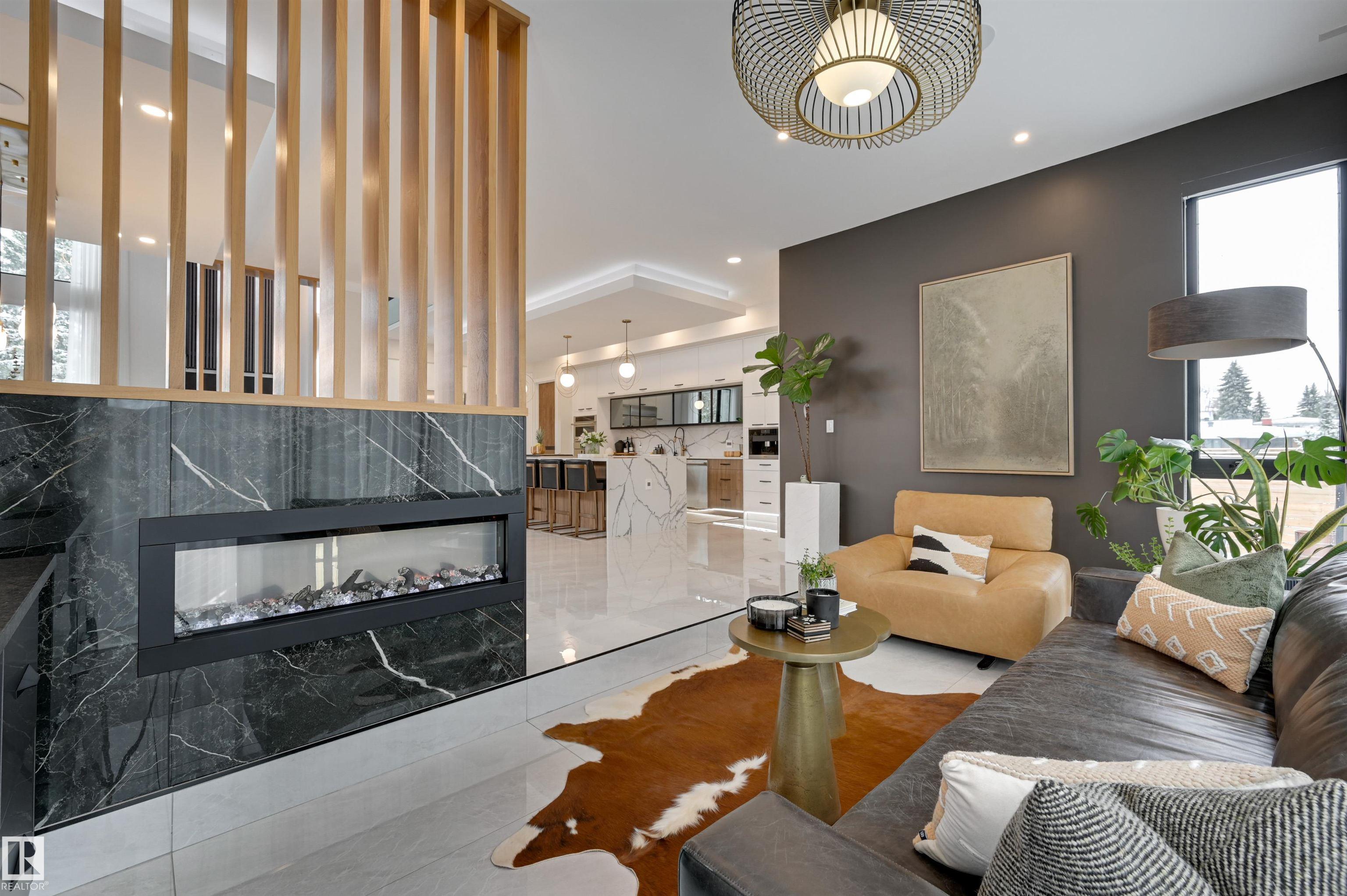 Welcome to this breathtaking custom luxury residence, masterfully designed with exceptional craftsmanship and uncompromising quality throughout. Architecturally inspired, this stunning home showcases Italian imported windows, state-of-the-art mechanical systems, and exquisite attention to detail. The main living area offers grand scale, refined proportions, & a seamless blend of timeless elegance and contemporary sophistication. The chef?s kitchen is beautifully appointed with quartz countertops, oversized island, premium appliances, & butler?s pantry. Striking open-concept living room with 2-storey fireplace, clerestory windows, & rich acoustic wood detailing. Full upper-level primary retreat with spa-inspired ensuite and walk-in closet. Gorgeous 4-season room, private patio, main floor bedroom with ensuite, & office. Deluxe basement with bar, entertainment area, & 2 additional bedrooms with ensuites. Detached Triple garage with a 1 Bed/1 Bath Garage Suite. A rare offering of luxury, design, & lifestyle.