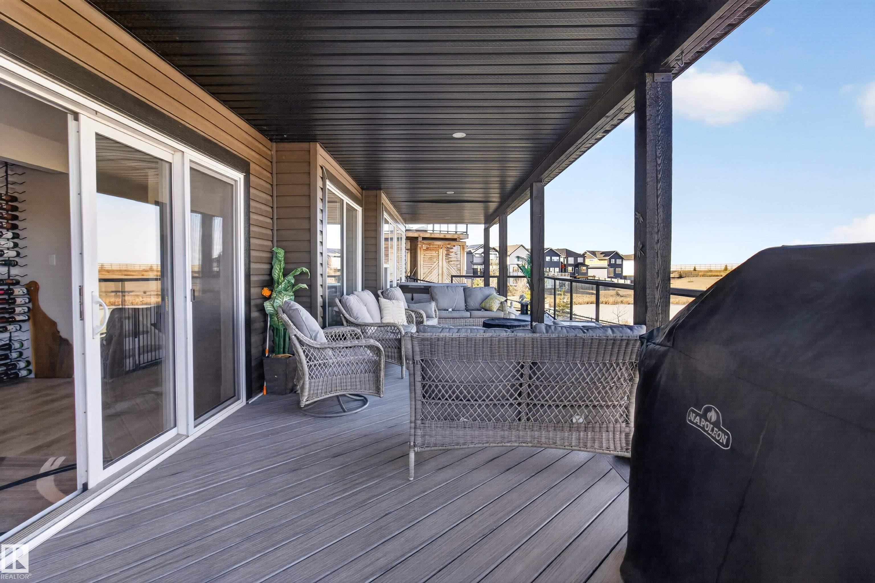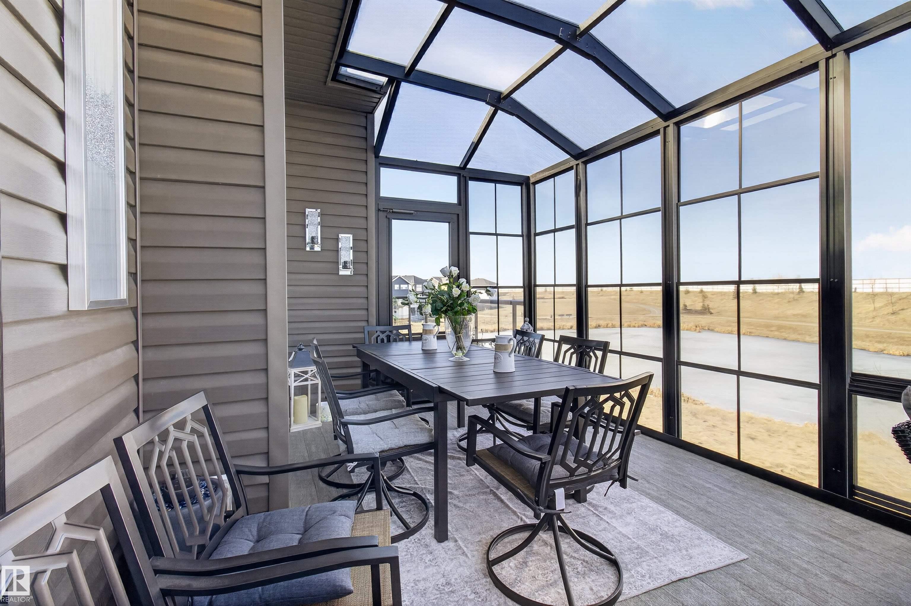 GORGEOUS WALKOUT BUNGALOW! BACKING THE POND & TREED SETTING! Open concept with 10ft ceilings on the main, high end quality finishings, and an abundance of windows throughout. Over 2700 sq ft of total living space including a FULLY FINISHED walkout basement. STUNNING KITCHEN! Gorgeous granite countertops, waterfall island, pantry, stainless steel appliances, gas stove & beautiful cabinetry. Generous dining area, luxury vinyl plank flooring, spacious living room & electric fireplace. HUGE UPPER DECK & BEAUTIFUL 3 SEASON SUN ROOM! Enjoy the amazing views! Primary Bedroom with luxurious 5-piece ensuite & walk-in closet. Flex room/den, laundry & powder room. Central A/C & hot water on demand. The basement offers a family room, games area, wet bar & wine feature wall, 2 bedrooms, gorgeous 3 piece bathroom, utility room, & storage space. FABULOUS COMPOSITE DECK! Maintenance-free backyard with artificial turf & bubble rock. OVERSIZED & HEATED double attached garage with epoxy flooring. You'll LOVE this home!