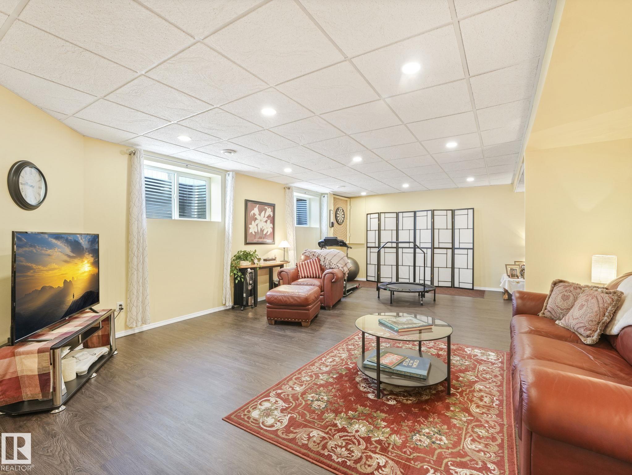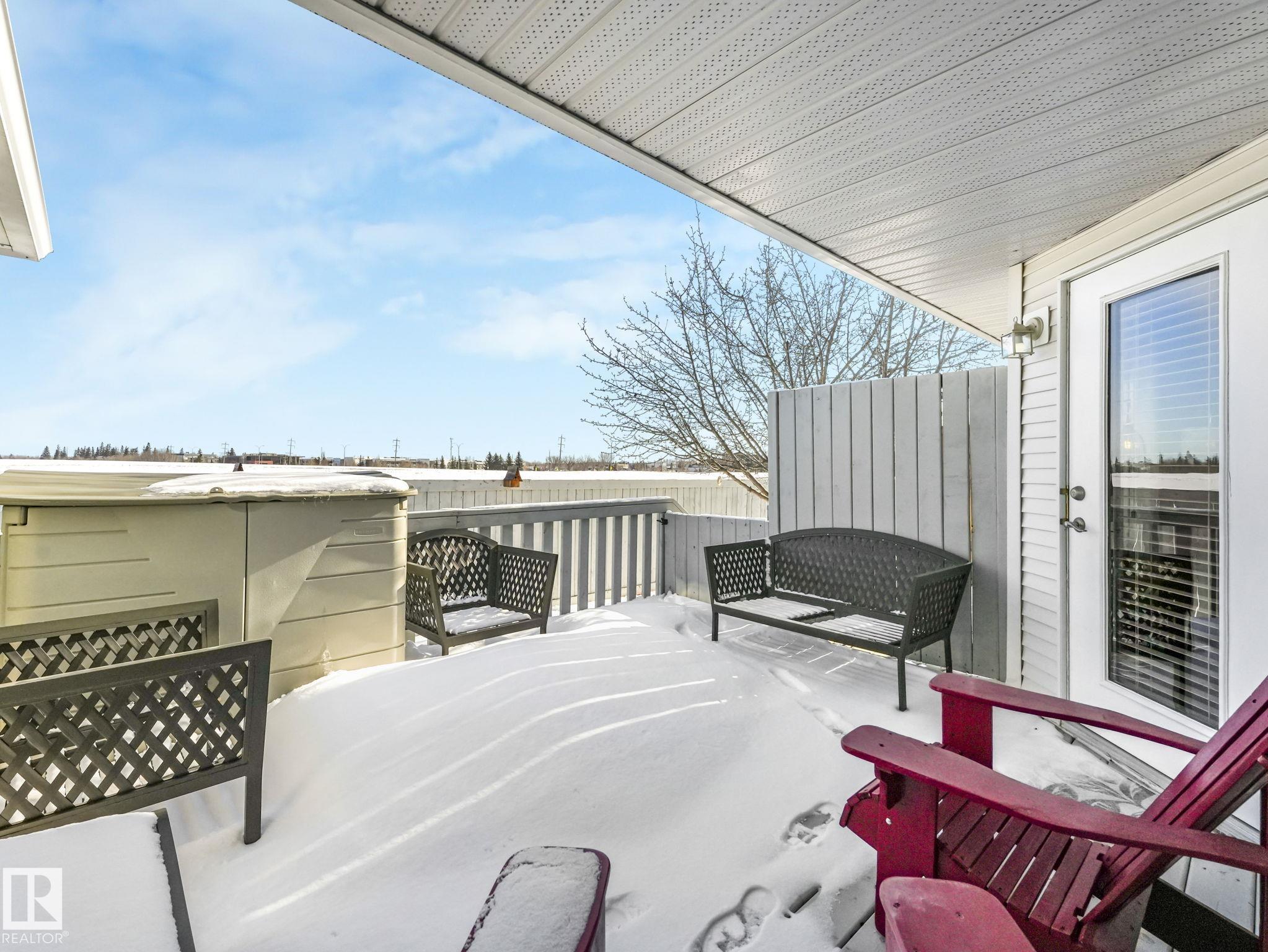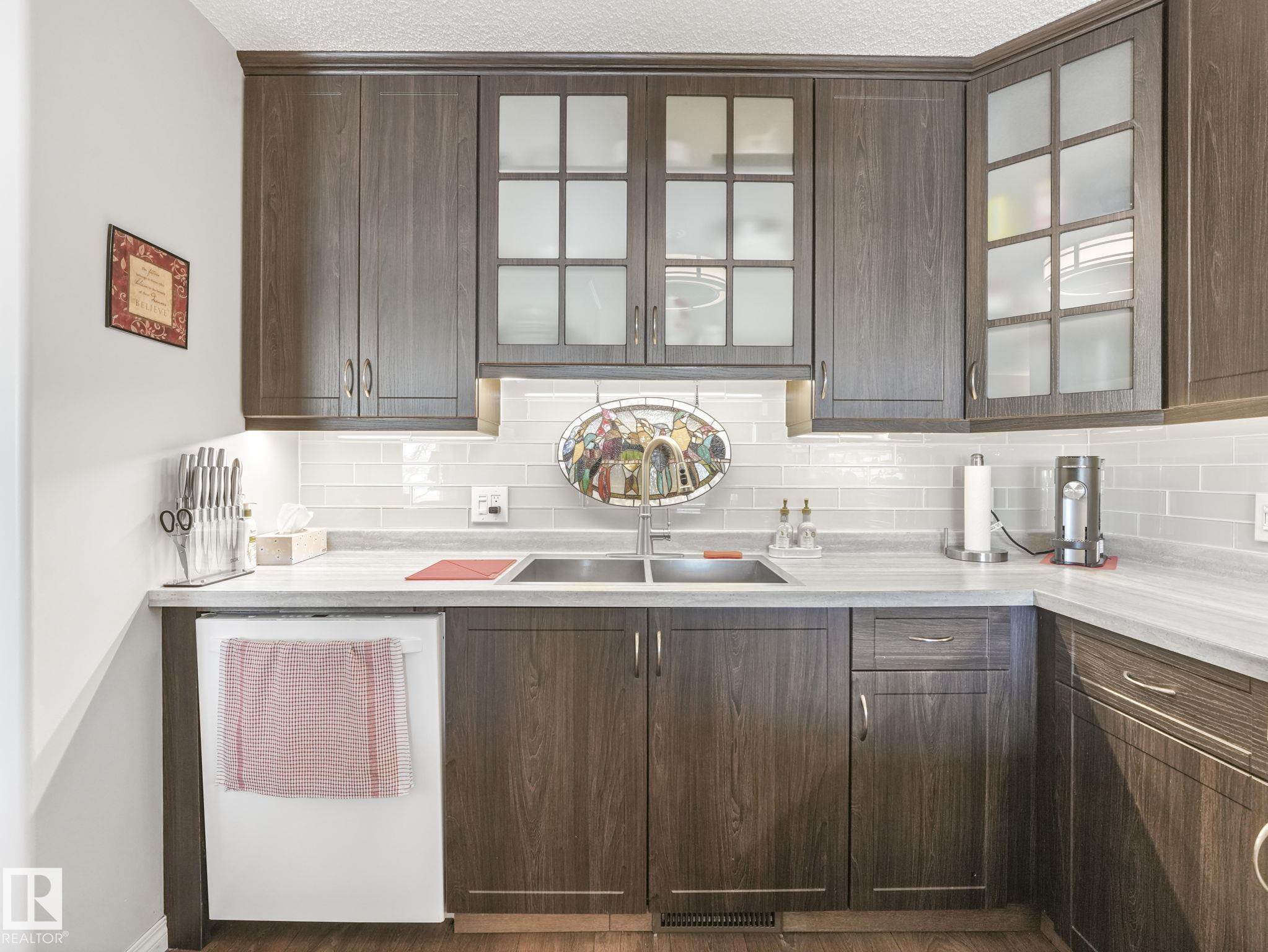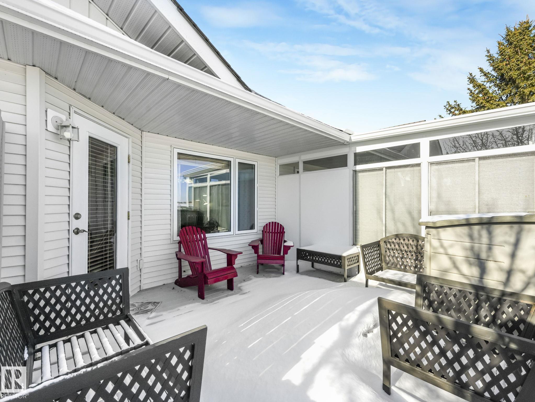 Mint condition truly turnkey bungalow in a prestigious adult (45+) condo in the St.Albert community of Kingswood. Impeccably maintained bungalow with fresh paint, luxury vinyl plank flooring on the main floor, delivering modern, worry-free living with all major updates already completed. Low condo fees ($375) in this quiet, well-managed complex where exterior maintenance is fully handled. The home offers 2 bedrooms, 1.5 bathrooms, main-floor laundry, a fully finished basement, and a large attached insulated garage. Bright and open main floor with lots of east facing windows throughout looking over a farmers field. Major upgrades include kitchen cabinets, counter-tops, tile back-splash, furnace, central A/C, newer appliances, a newer deck (coming soon), and updated door hardware?clear evidence of pride of ownership. Enjoy exceptional amenities including a party room, library, games room, guest suite, and direct access to walking trails. Steps from Servus Place Rec Centre and short drive to all amenities.