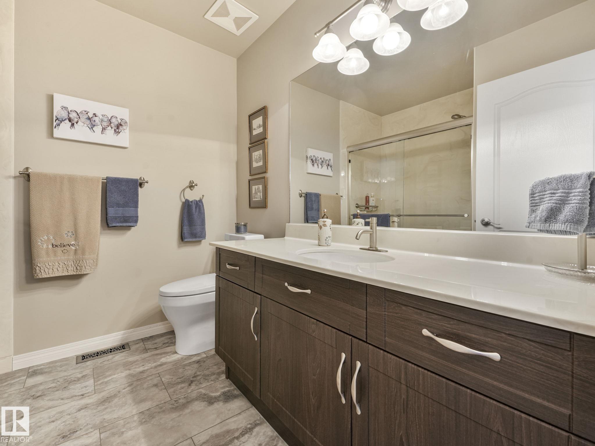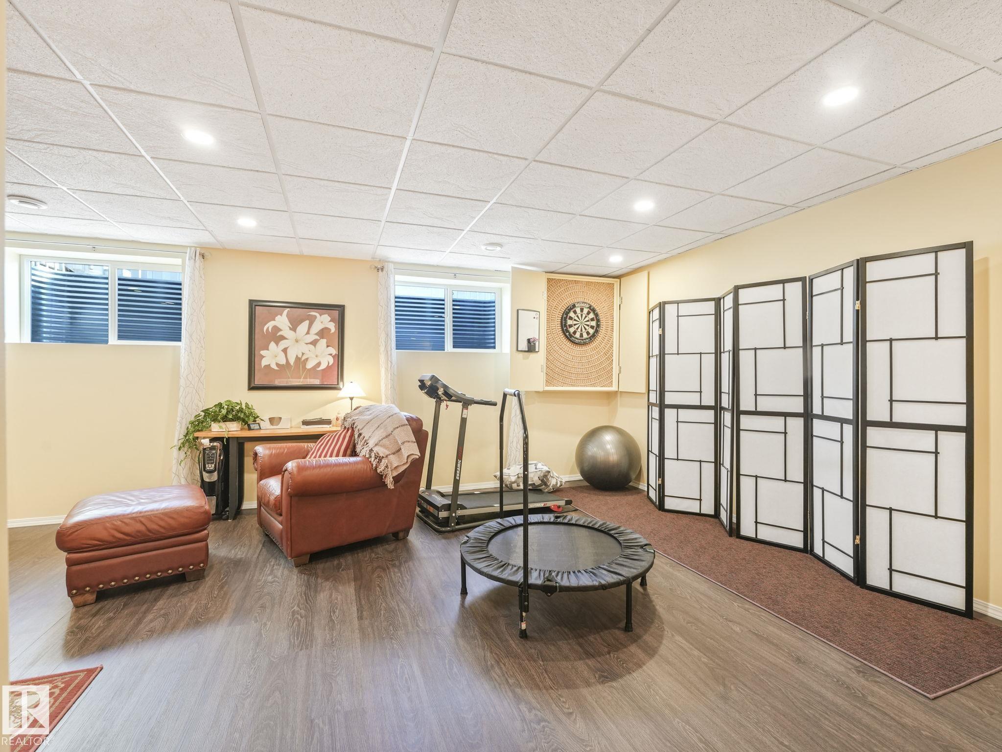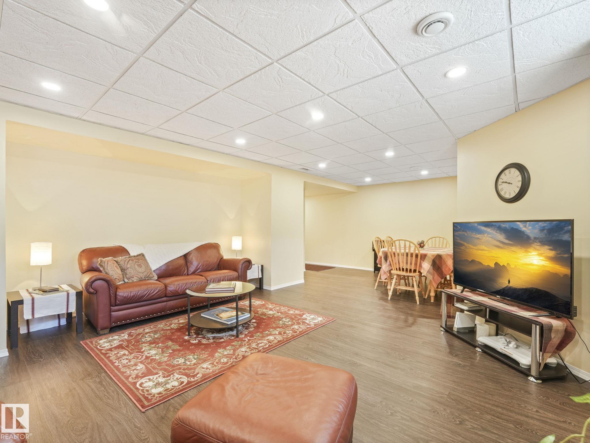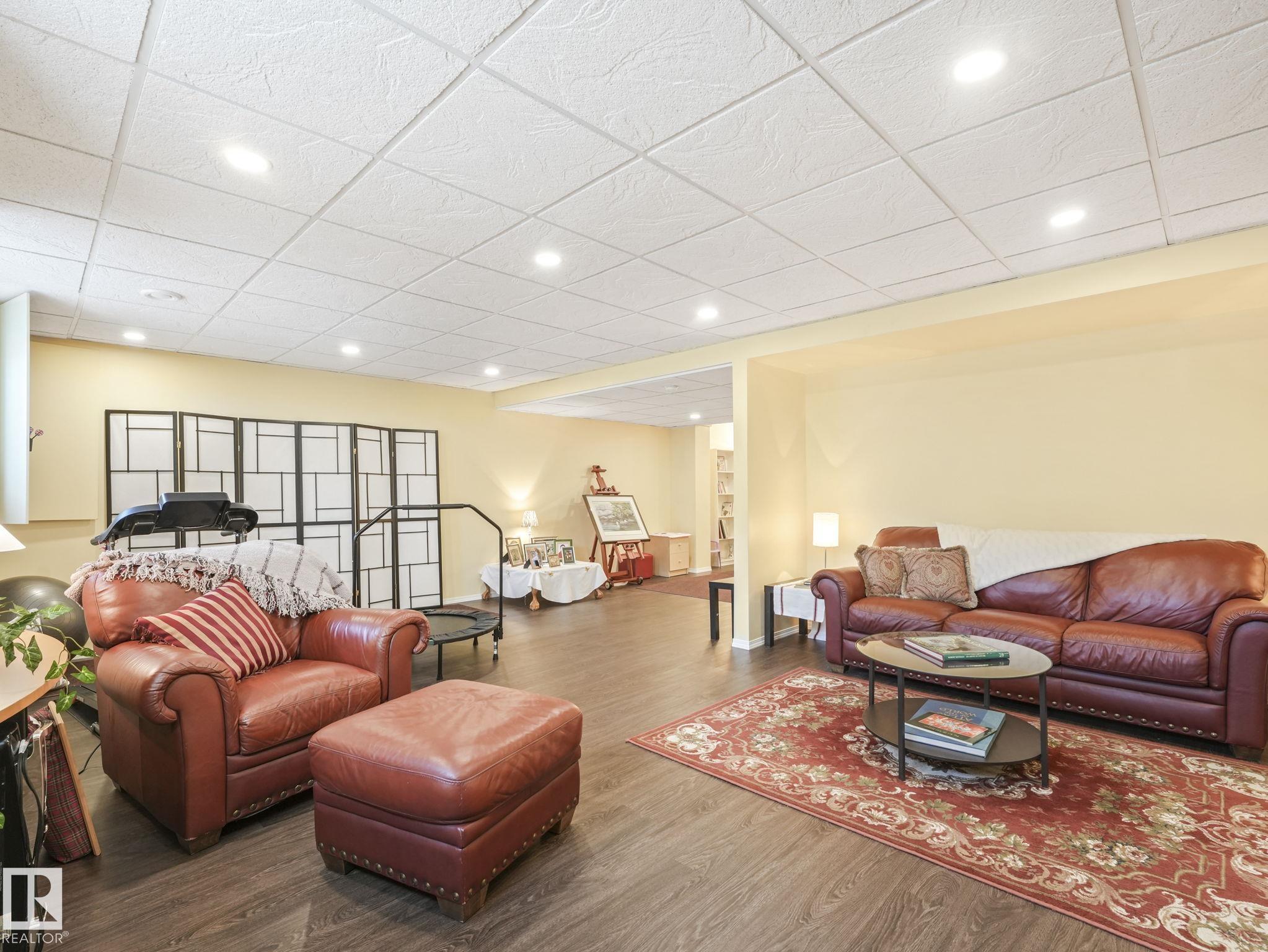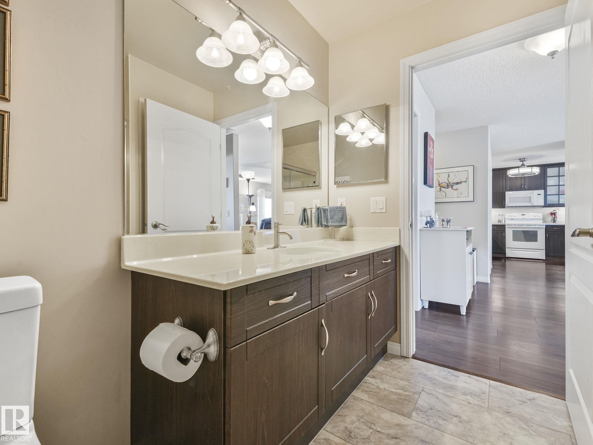 Mint condition truly turnkey bungalow in a prestigious adult (45+) condo in the St.Albert community of Kingswood. Impeccably maintained bungalow with fresh paint, luxury vinyl plank flooring on the main floor, delivering modern, worry-free living with all major updates already completed. Low condo fees ($375) in this quiet, well-managed complex where exterior maintenance is fully handled. The home offers 2 bedrooms, 1.5 bathrooms, main-floor laundry, a fully finished basement, and a large attached insulated garage. Bright and open main floor with lots of east facing windows throughout looking over a farmers field. Major upgrades include kitchen cabinets, counter-tops, tile back-splash, furnace, central A/C, newer appliances, a newer deck (coming soon), and updated door hardware?clear evidence of pride of ownership. Enjoy exceptional amenities including a party room, library, games room, guest suite, and direct access to walking trails. Steps from Servus Place Rec Centre and short drive to all amenities.