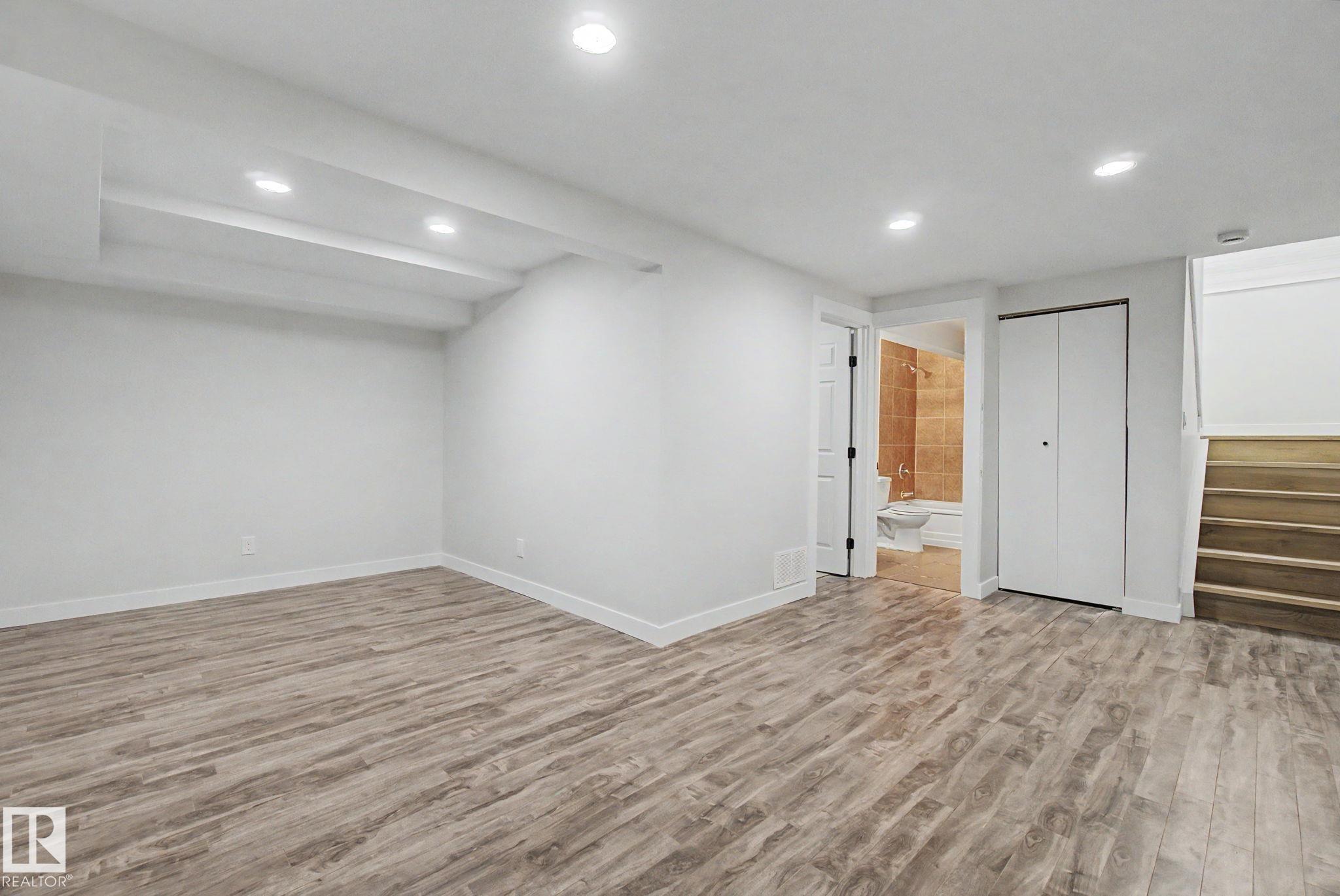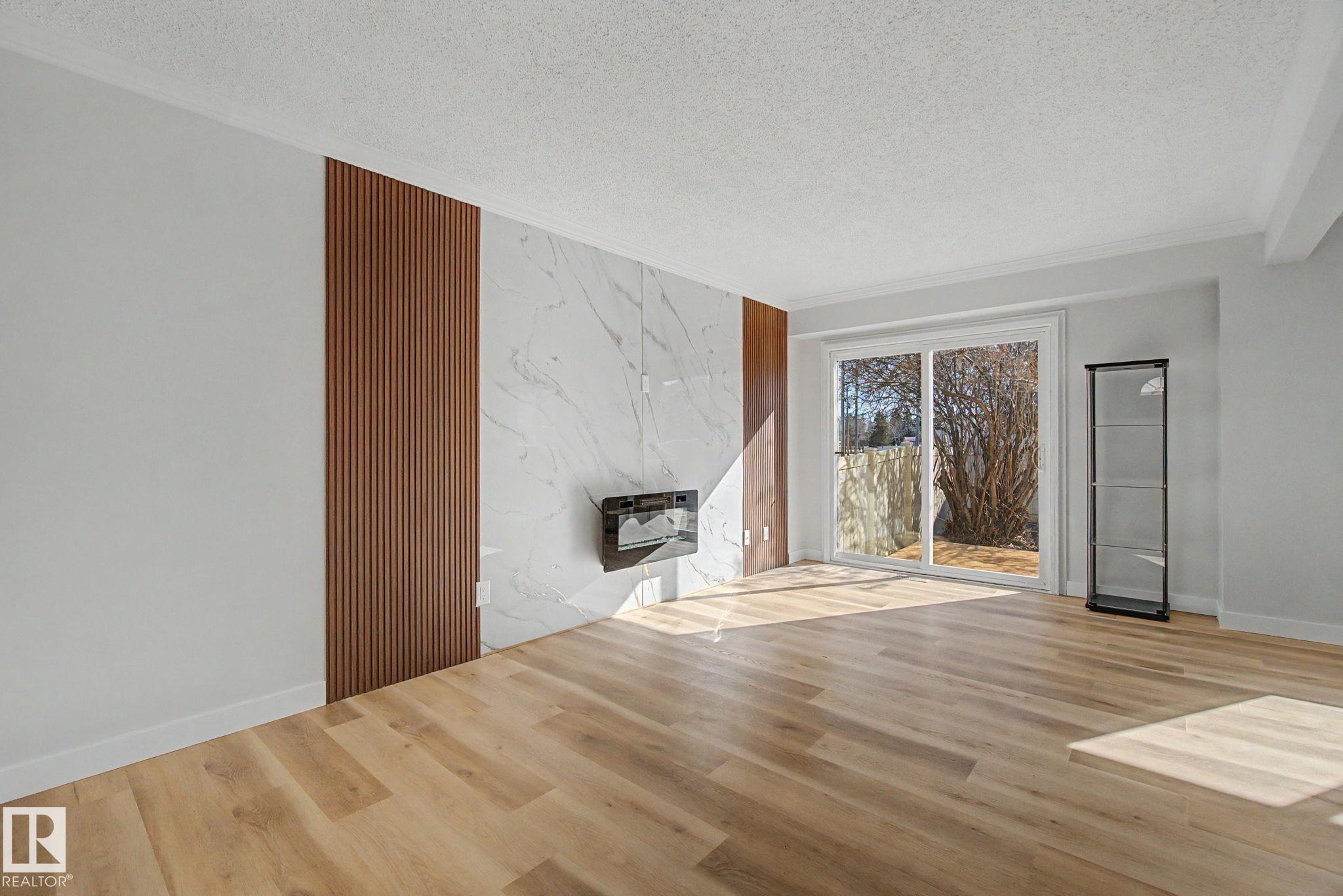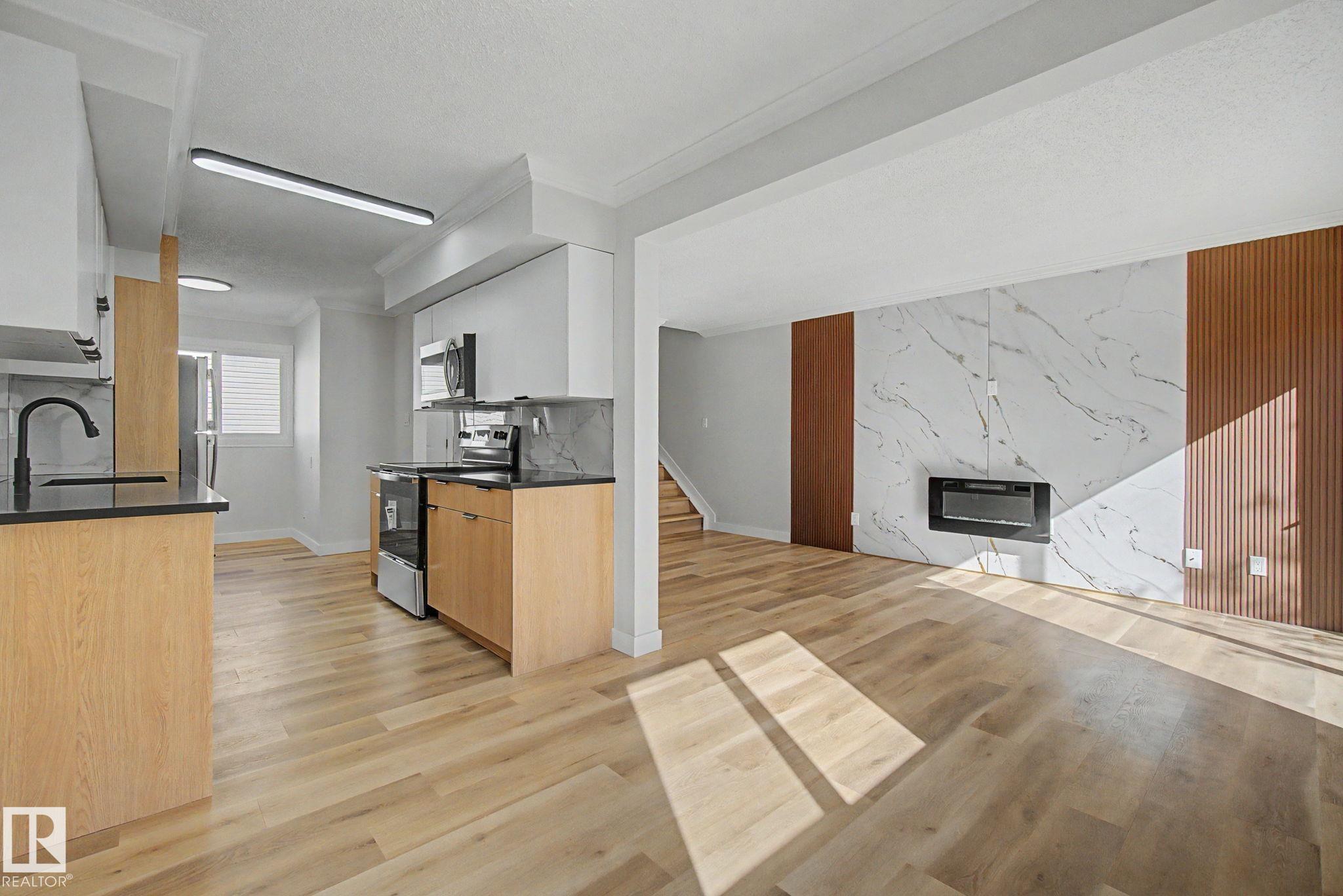 Discover this beautifully FULLY UPGRADED & RENOVATED corner townhouse featuring 3 bedrooms, 2 full bathrooms, and a fully finished basement. Being a corner unit offers extra privacy, more natural light, and additional outdoor space ? a rare find! Freshly painted throughout. Brand new vinyl plank flooring on both main and upper levels, plus hardwood flooring in the basement. The main floor welcomes you with a bright living room featuring a beautiful wall with an electric fireplace. The kitchen boasts customized two-tone cabinets, black quartz countertops, and brand new stainless steel appliances. New lighting throughout. Upstairs, the master bedroom has its own feature wall. Two additional bedrooms and a 4-piece bathroom complete the upper level. Fully finished basement offers second full bathroom and even more living space - ideal for a media room, home gym, or play area. Gorgeous feature walls on stairs add a designer touch you won't find elsewhere. New composite deck. Low condo fees. Move-in ready!!!