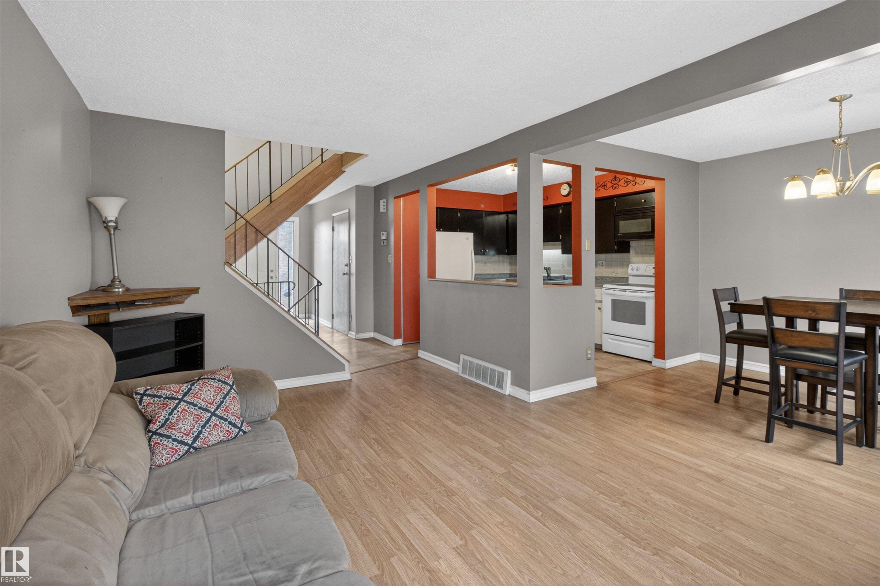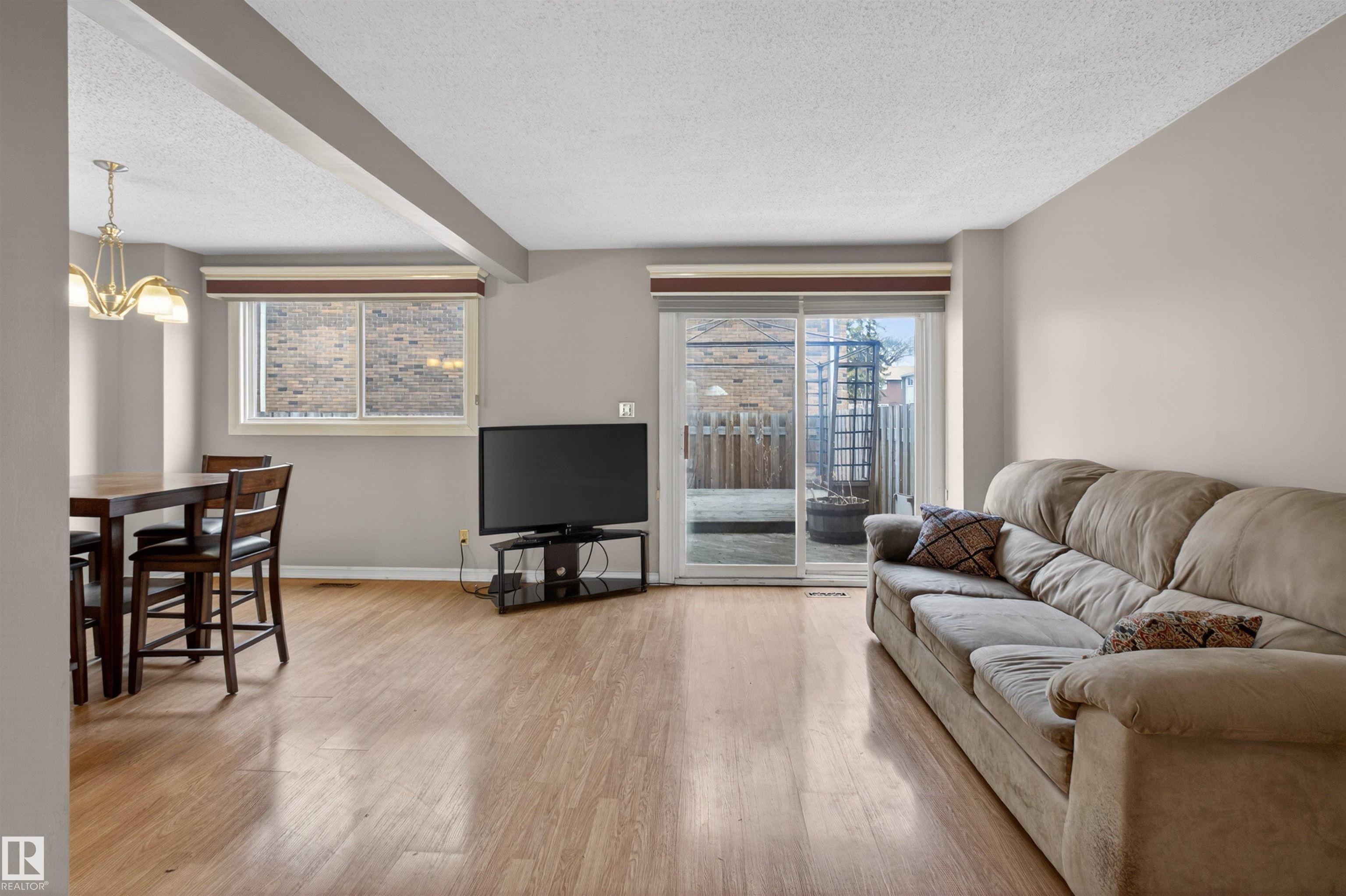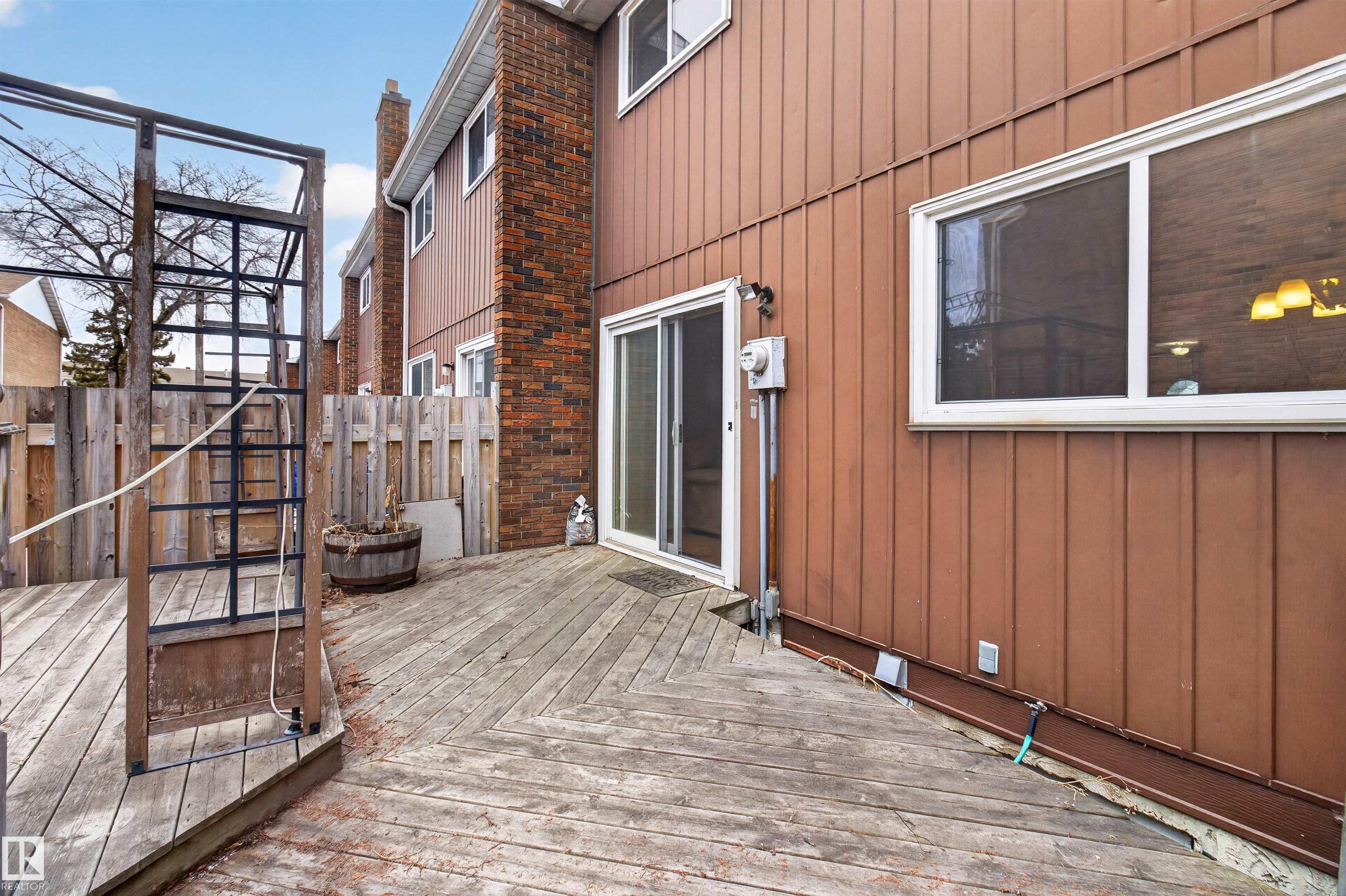 Townhouse with attached garage in a great location. This bright and inviting home features 3 bedrooms upstairs, 1.5 baths, a spacious foyer, and a sun filled living and dining area that offers plenty of room for everyday living and entertaining. Upstairs, the spacious primary bedroom features double doors and access to a private balcony. The fully finished basement adds extra living space for a rec room, home office, or gym. Outside, enjoy the private fenced backyard with a wood deck and gazebo, perfect for relaxing or summer gatherings. The complex has seen updates including newer windows, doors, and fences. With laminate flooring, this is a fantastic opportunity for first time buyers, investors, or anyone looking for a comfortable home in a well kept community. A must see!