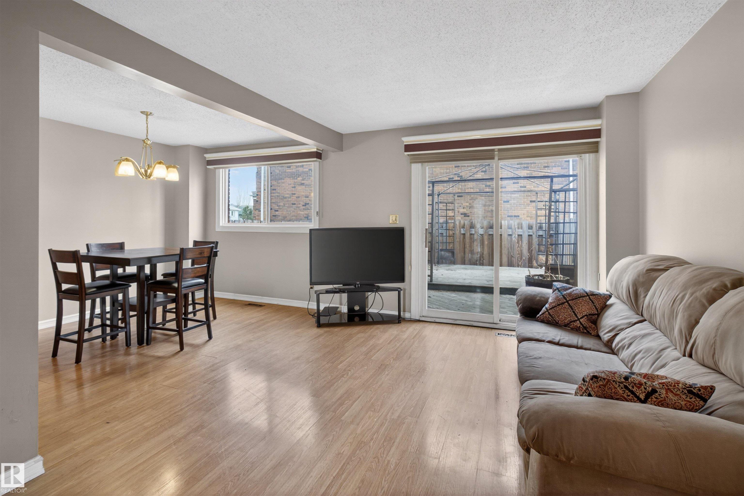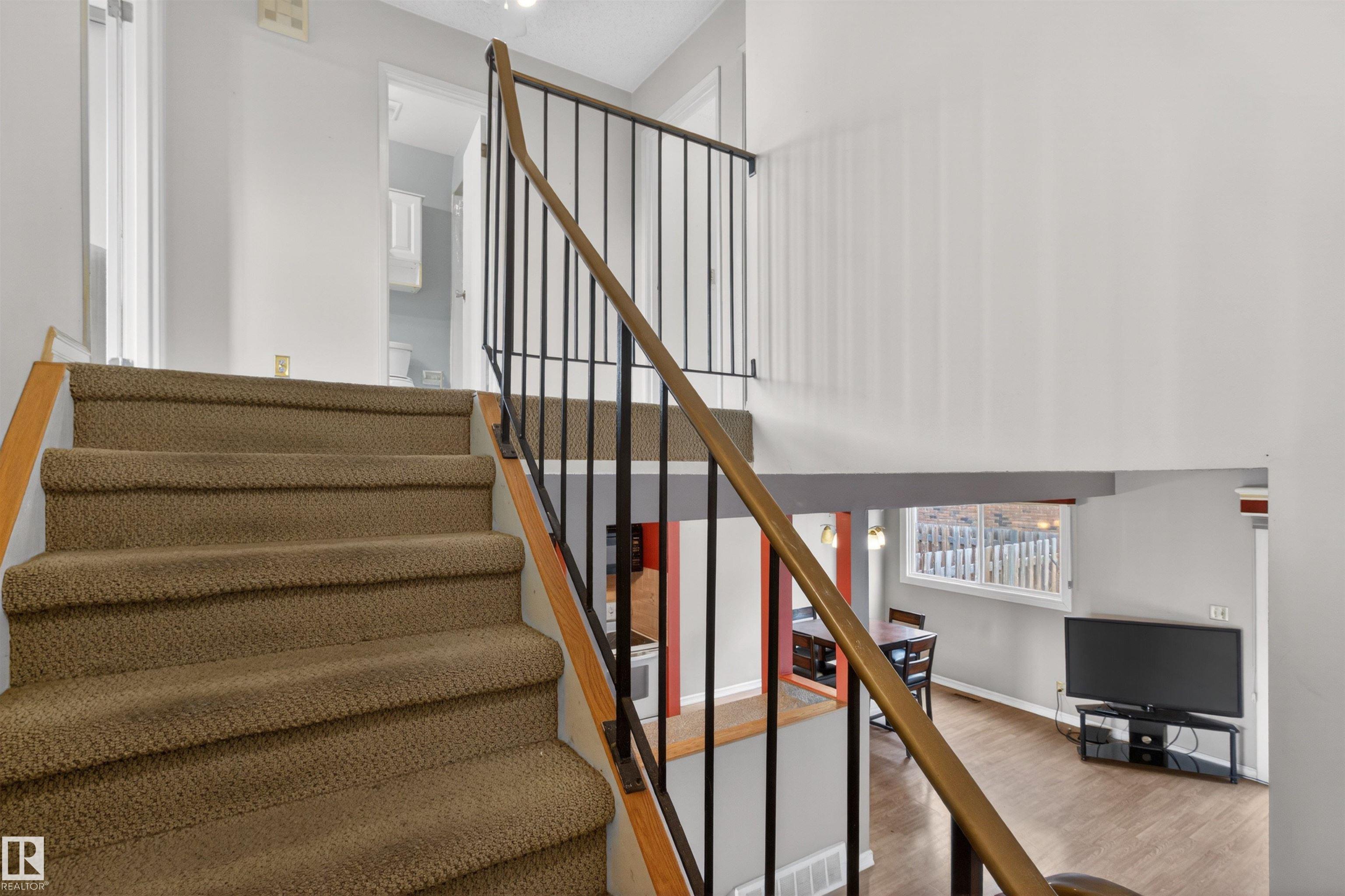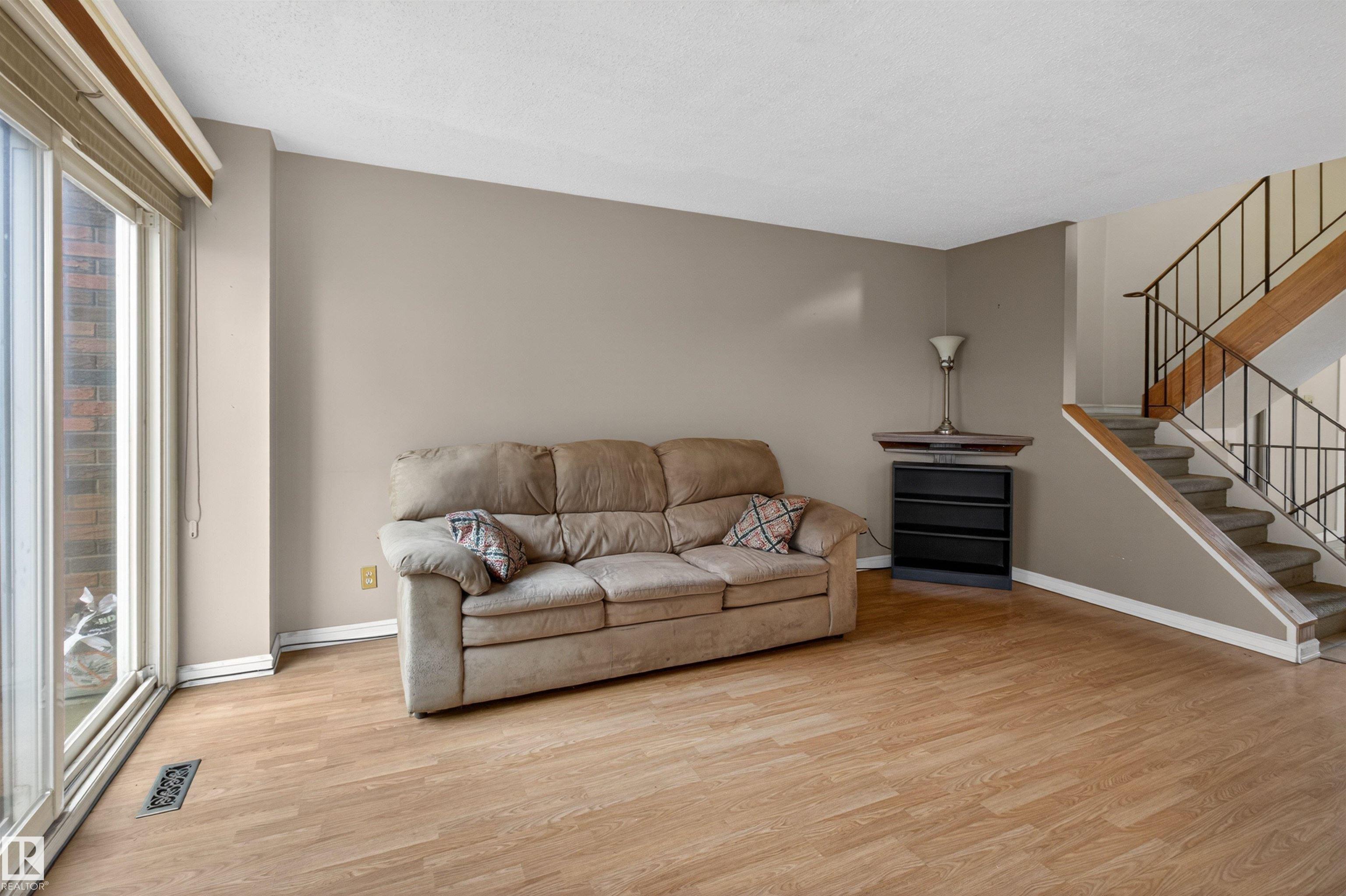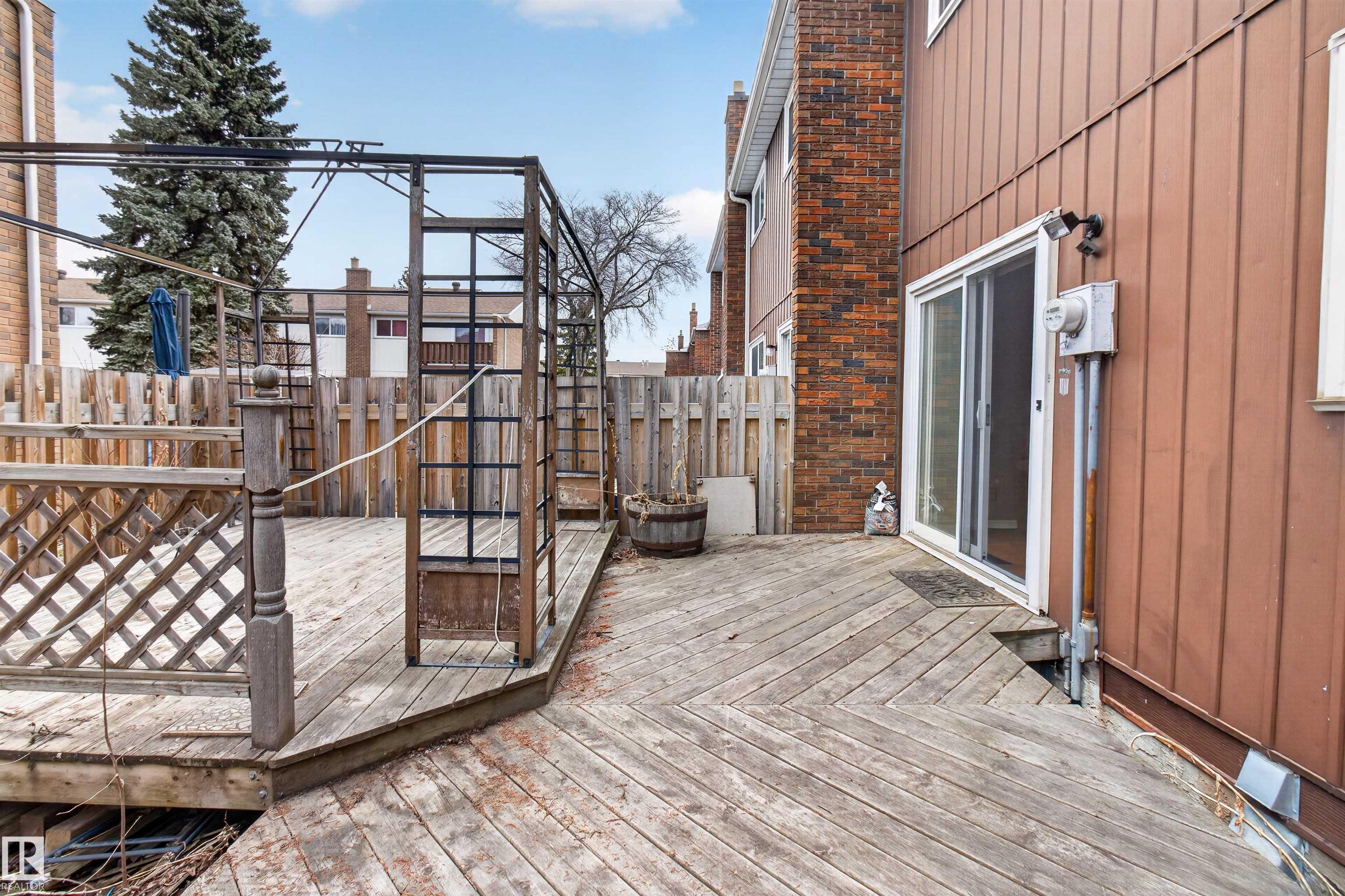 Townhouse with attached garage in a great location. This bright and inviting home features 3 bedrooms upstairs, 1.5 baths, a spacious foyer, and a sun filled living and dining area that offers plenty of room for everyday living and entertaining. Upstairs, the spacious primary bedroom features double doors and access to a private balcony. The fully finished basement adds extra living space for a rec room, home office, or gym. Outside, enjoy the private fenced backyard with a wood deck and gazebo, perfect for relaxing or summer gatherings. The complex has seen updates including newer windows, doors, and fences. With laminate flooring, this is a fantastic opportunity for first time buyers, investors, or anyone looking for a comfortable home in a well kept community. A must see!