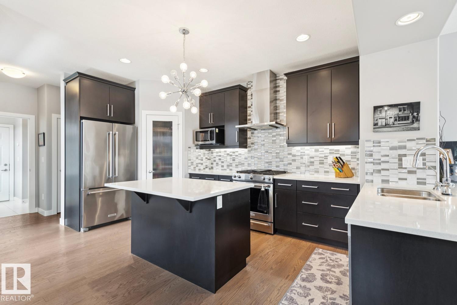 BETTER THAN NEW! FORMER SHOWHOME luxury triplex built by Kimberley Homes. This 1838 sqft END UNIT offers 3 bed/2.5 baths and shows like new! The striking open-concept main floor features gleaming hardwood throughout, a lavish U-shaped kitchen w/premium cabinetry, quartz counters, and high-end s.s. appliances. Dining nook w/soaring 18' ceilings, large living area w/stunning tile fireplace, and numerous of windows that allow for an abundance of natural light. Upstairs you will find the primary suite w/walk-in closet and spa-like 5-pc ensuite, two additional bedrooms, bonus area, and additional 4-pc bath. Outside you will enjoy the private deck w/pergola, double attached garage and low maintenance landscaping. Prime Salisbury Village location, walkable to schools, shopping and all amenities. Affordable luxury in a great location!