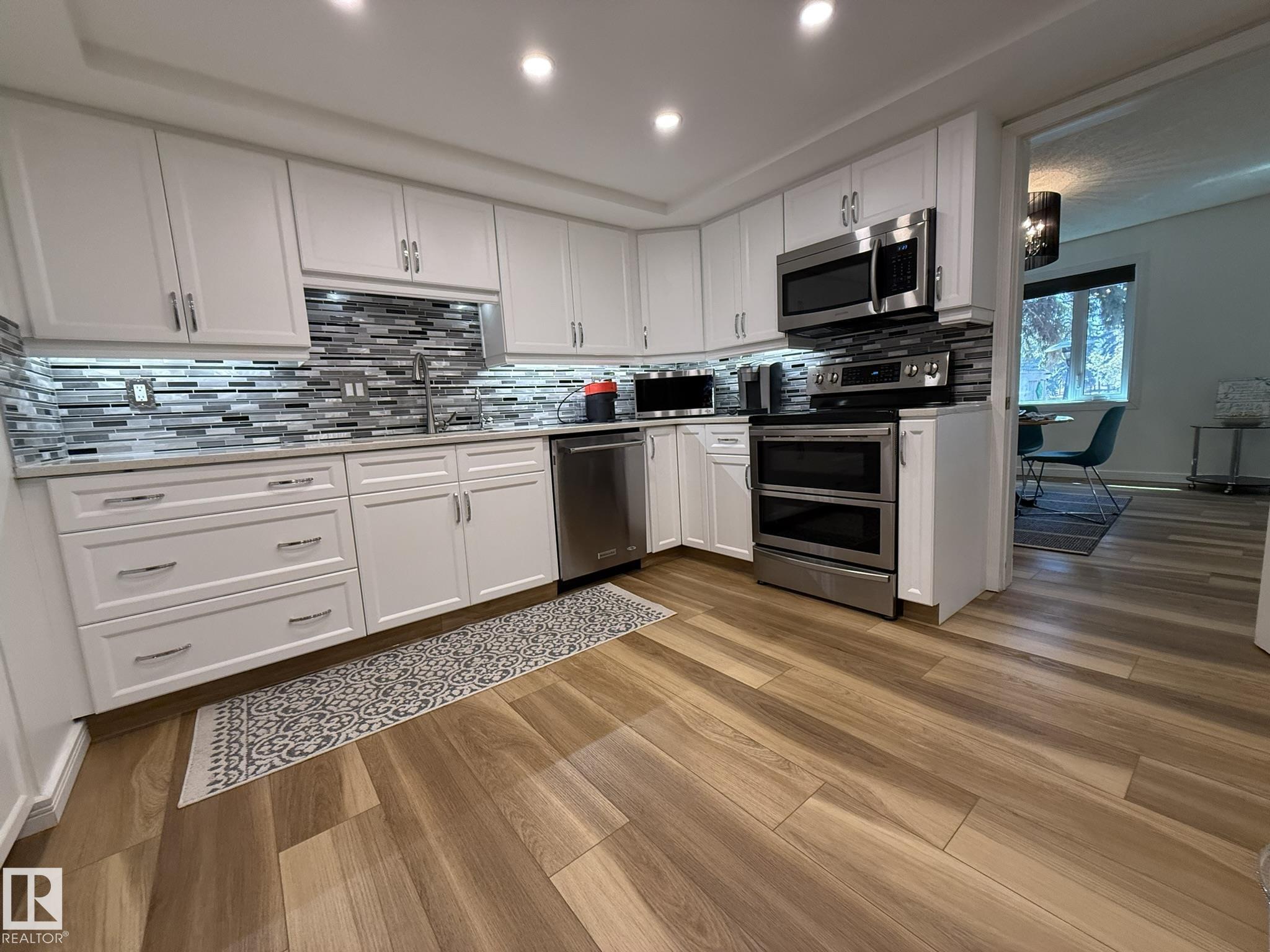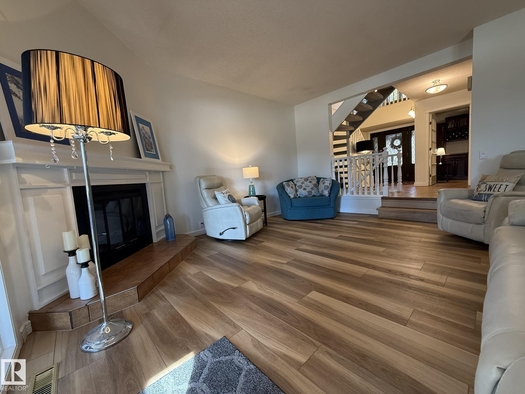 Welcome to this Upgraded 2Storey TOWNHOUSE, Double Att. 21x19 Garage w/EPOXY FLOORING & Lg CABINETS with FULL A/C, With w/over 2900Sq.Ft of Living Space backing "THE LAKE" In the complex of "HARBOUR PARK!" Upon entry you are greeted with LUXURY VINYL PLANK FLOORING. NEW TRIPLE PANE WINDOWS, and all NEW PAINT on the main & upper floor. The upgraded kitchen has newer cabinets, QUARTZ COUNTERTOPS, DISTILLED WATER DISPENSER & SOFTENER, 5 S/S Appliances, Pantry/Kitchen Nook, Main floor laundry/2pc Bath and a large dining room for 6+Guests. The sunken living room has a corner gas fireplace with a garden door onto your large SOUTH FACING DECK! The upper floor has a BONUS ROOM, an oversized 2nd Bdrm w/a full 4pc Bathroom, along w/an Oversized Primary Bedroom w/a comfy seating area & a PRIVATE BALCONY, An upgraded 3pc ENSUITE w/Heated floors & a large WALK-IN SHOWER. The F/F Basement has a Family Room, Den & Large Storage Room. Great quiet complex, with walking trails, shopping, & K-6 School.