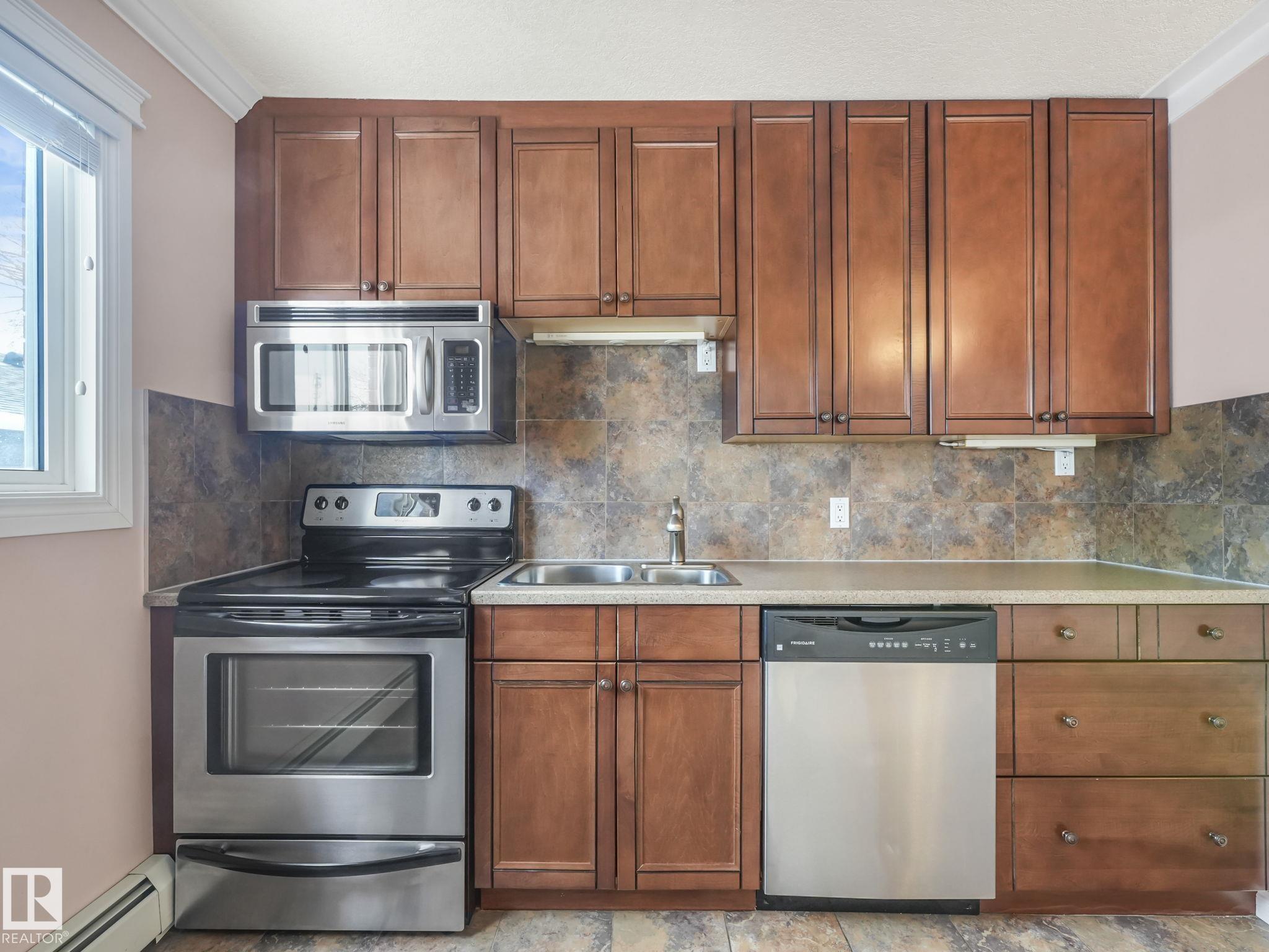 Welcome to Queen Mary Park! This nicely renovated 1-bedroom + 1 bath condo offers approx. 553 sq. ft. of stylish & comfortable space, perfectly situated on the 2nd floor. Unit features modern carpet & ceramic tile floors, upgraded kitchen & bathroom cabinetry, sleek stainless steel appliances & elegant crown molding. The building has also undergone significant improvements, incl.; newer vinyl windows, upgraded balcony doors with glass railings, and recently replaced asphalt shingles?providing added value & peace of mind. Convenient access to common laundry located on the lower level, as well as ample on-street parking. Ideally located just minutes from shopping, amenities, and public transit, this home offers easy access to downtown and the Brewery District?perfect for walking or biking. Excellent opportunity for students or investors, with close proximity to MacEwan & NAIT. Affordable condo fees & exceptional value in a trendy central location! *Photos are of a similar suite (same layout & finishings).