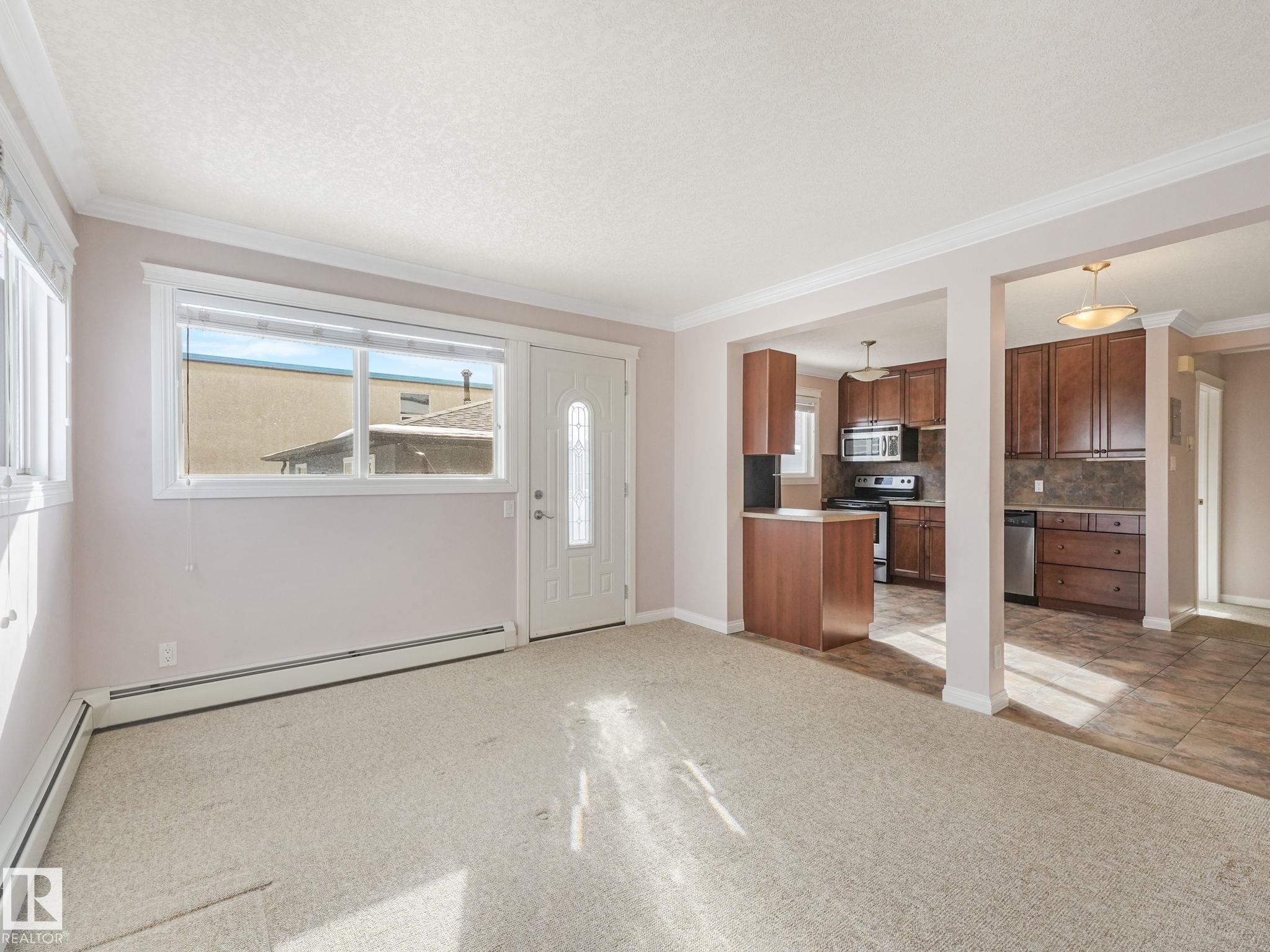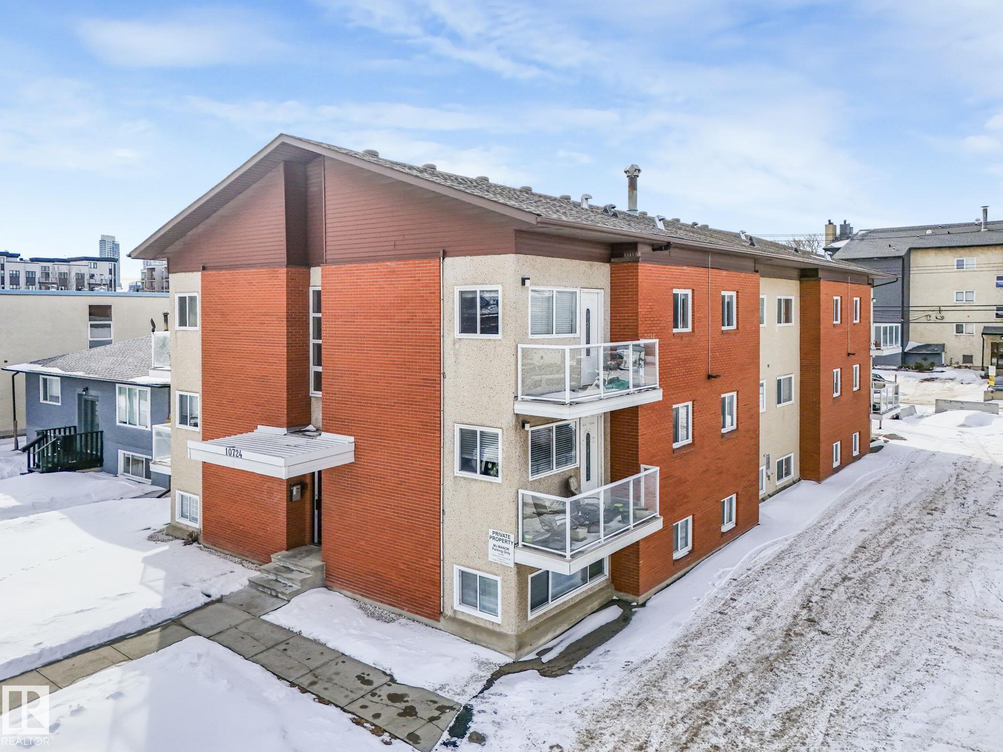 Welcome to Queen Mary Park! This nicely renovated 1-bedroom + 1 bath condo offers approx. 564 sq. ft. of stylish & comfortable space, perfectly situated on the TOP FLOOR. Unit features modern carpet & ceramic tile floors, upgraded kitchen & bathroom cabinetry, sleek stainless steel appliances & elegant crown molding. The building has also undergone significant improvements, incl.; newer vinyl windows, upgraded balcony doors with glass railings, and recently replaced asphalt shingles?providing added value & peace of mind. Convenient access to common laundry located on the lower level, as well as ample on-street parking. Ideally located just minutes from shopping, amenities, and public transit, this home offers easy access to downtown and the Brewery District?perfect for walking or biking. Excellent opportunity for students or investors, with close proximity to MacEwan & NAIT. Affordable condo fees & exceptional value in a trendy central location! *Photos are of a similar suite (same layout & finishings).