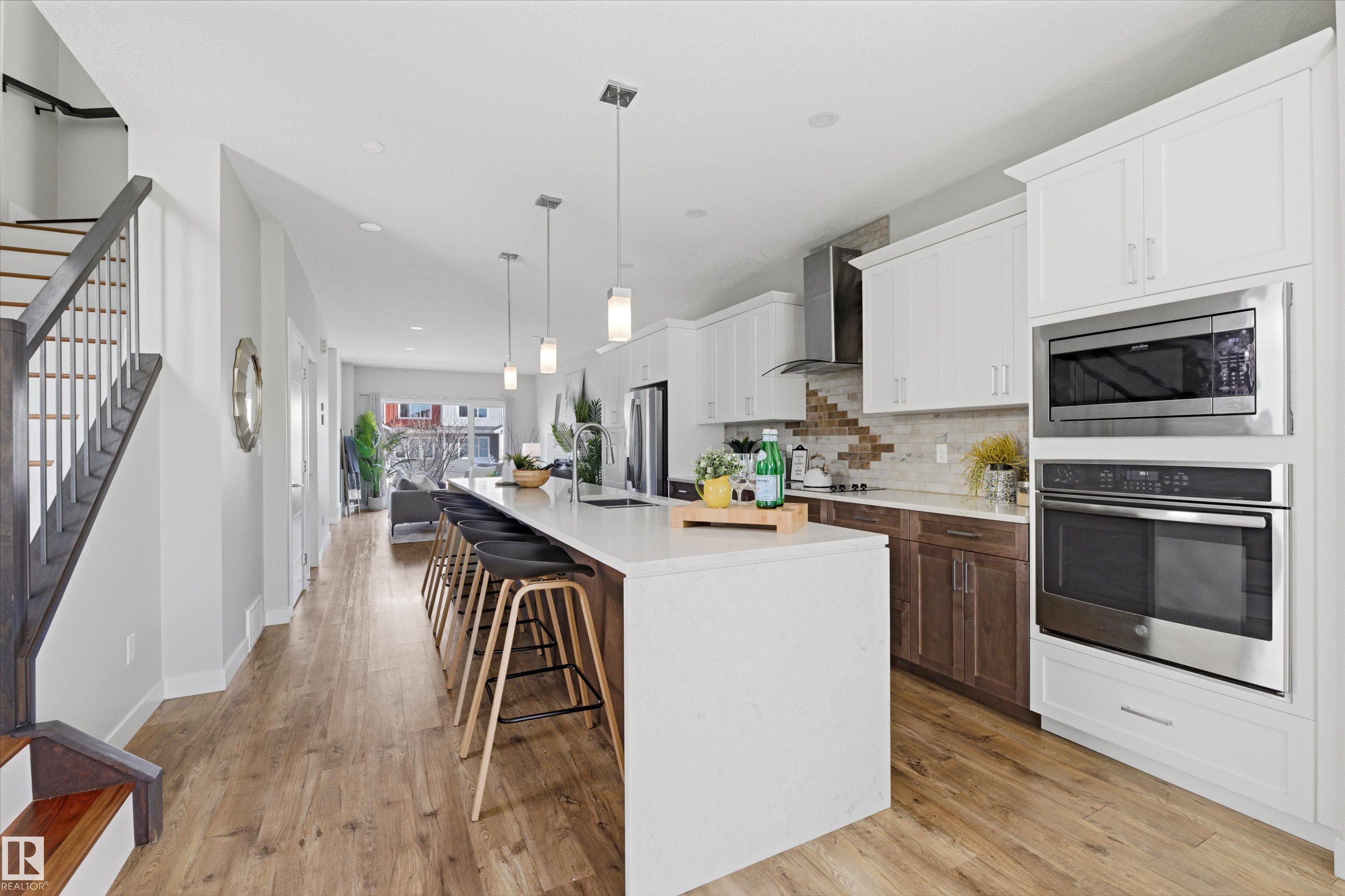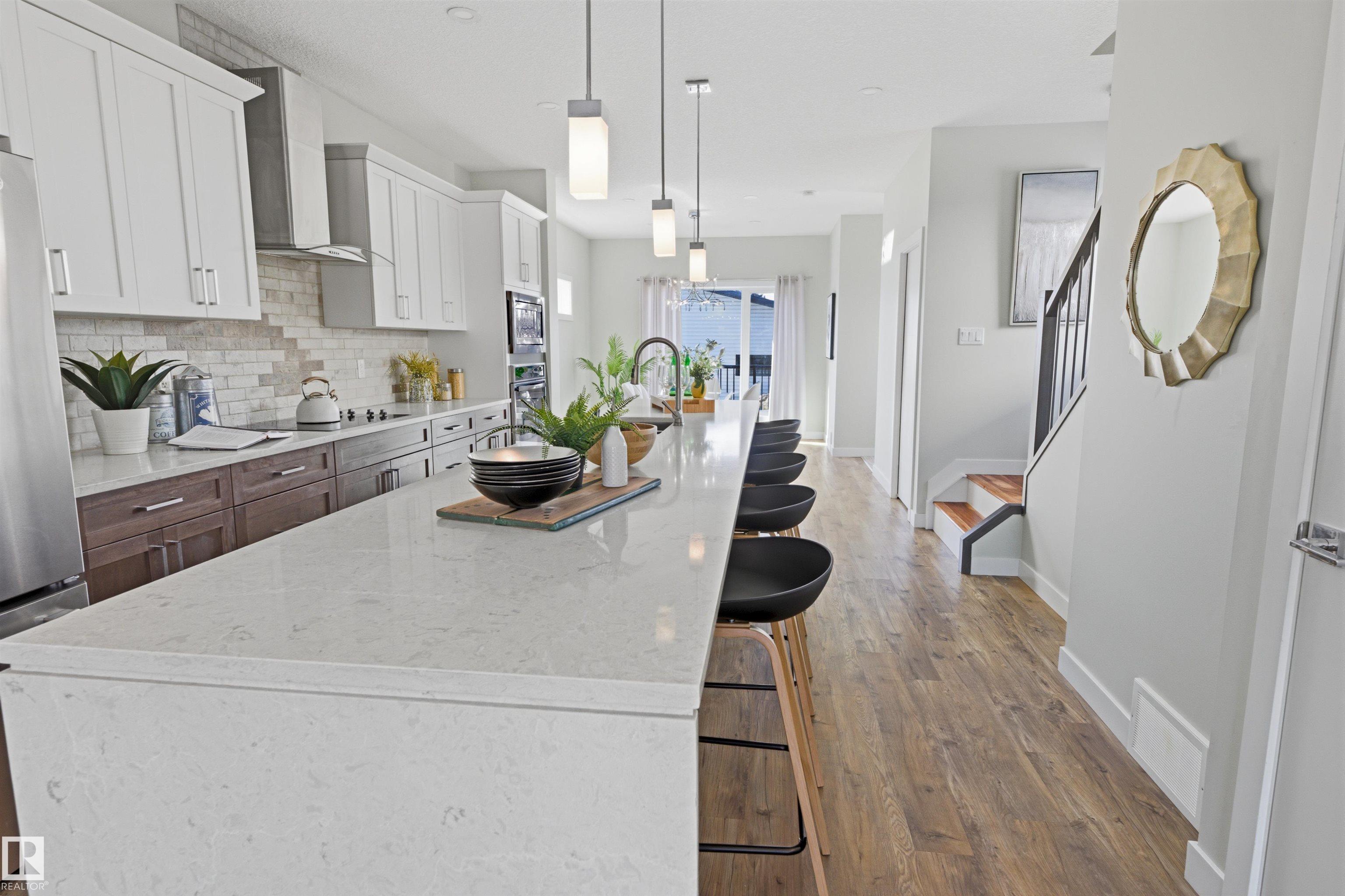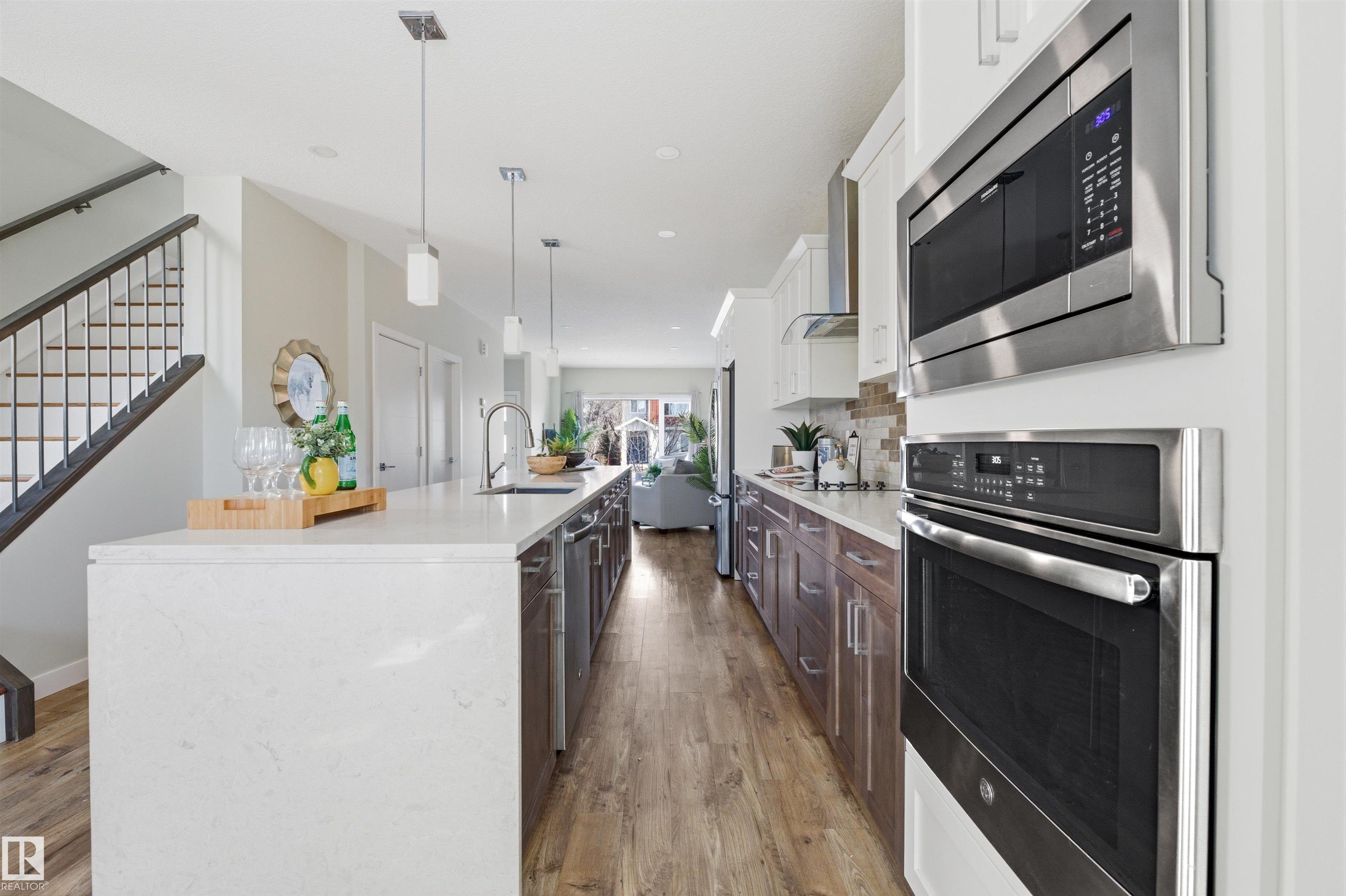 Exceptional value in this extremely well-loved 2-storey home in West Jasper Place, just steps to MacKinnon Ravine/Crestwood, new Valley Line LRT, minutes to Downtown. Open concept main floor is filled with loads of natural light and perfect for entertaining. GOURMET kitchen with GRANITE countertops, Massive island, STAINLESS steel appliances, twin oven/microwave built-in, and high-end dark/light cabinetry. Dining area opens to WEST back yard, massive deck, and double garage. Living area features gas fireplace. 3 generous bedrooms up, including spacious primary bedroom with a 5-piece (spa-inspired) ensuite and soaker tub. Upper floor laundry with sink. Half finished basement has suite potential (side entrance). Beautifully landscaped, stucco exterior. Private, fenced yard. This home is loaded with extras and drips with pride of ownership.
