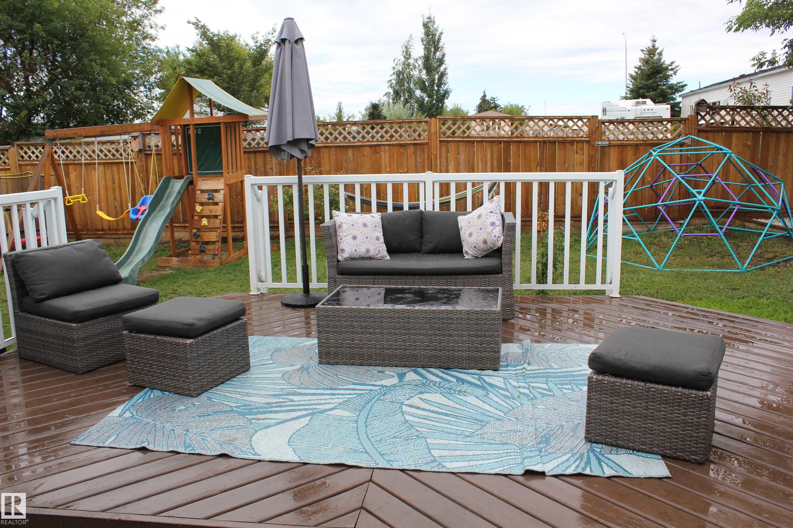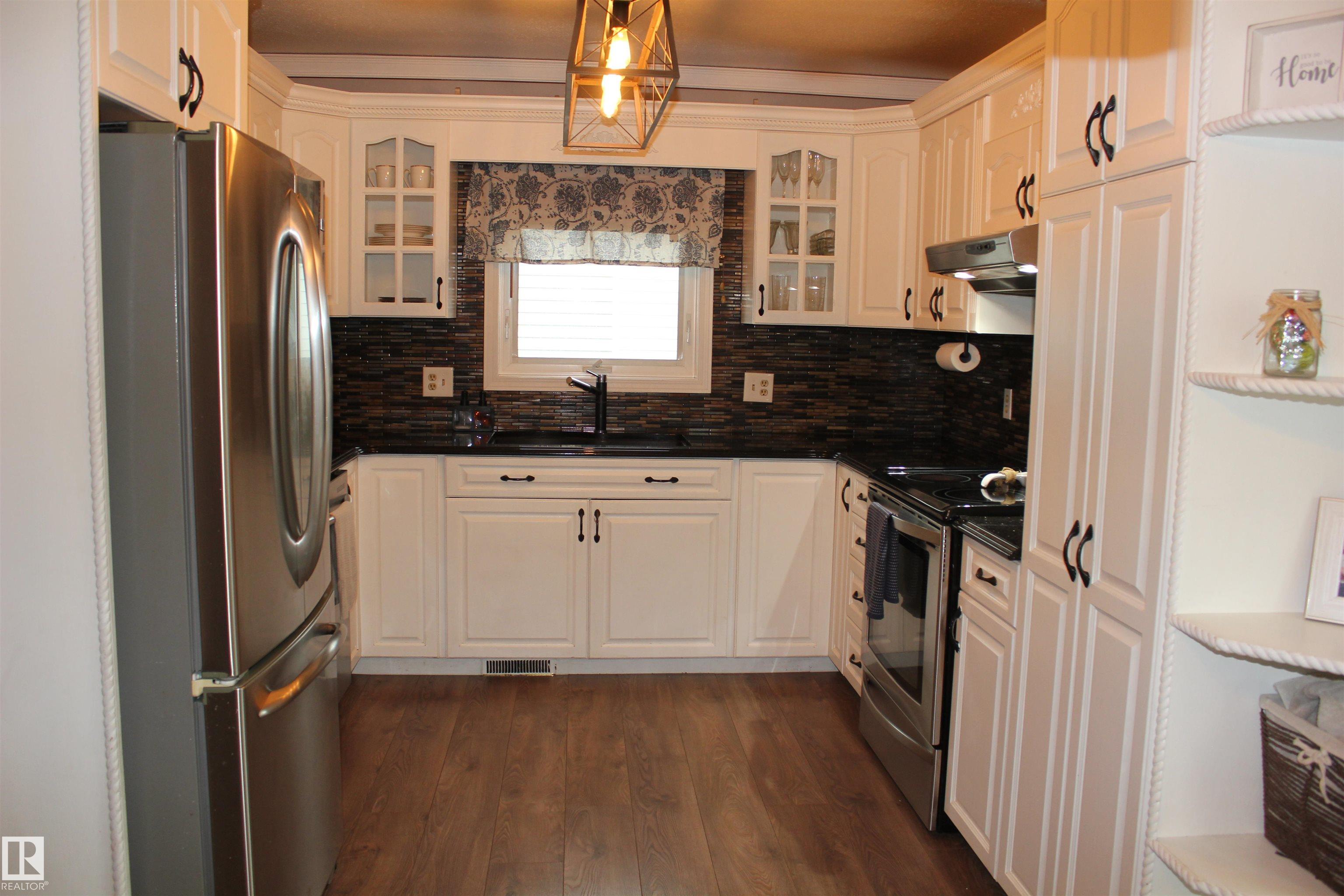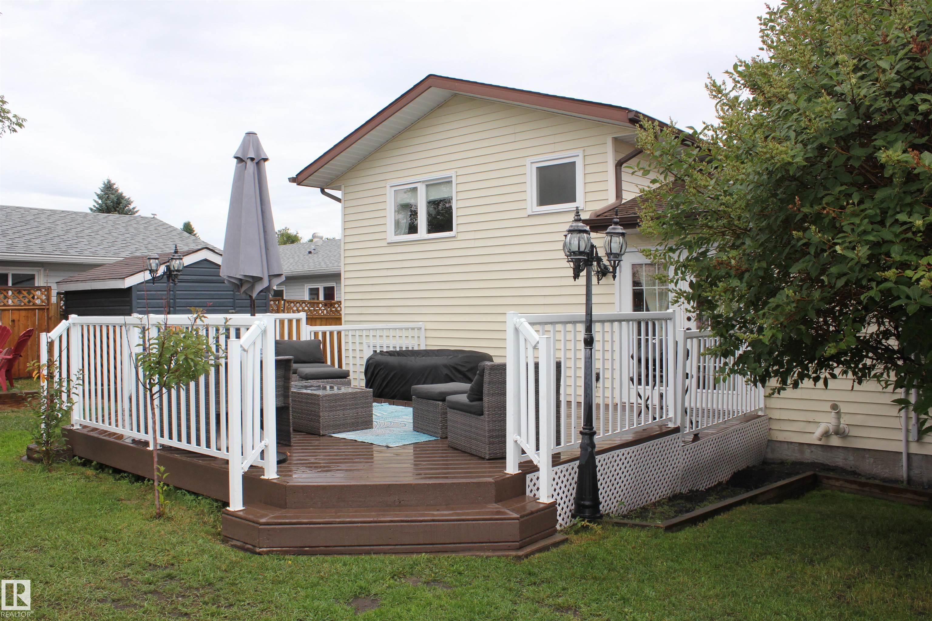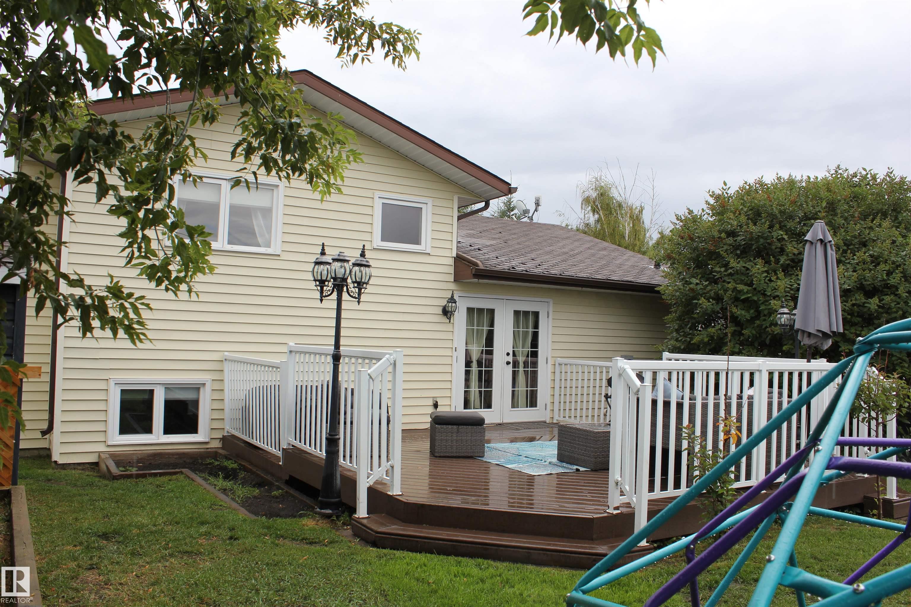 Welcome to this beautiful updates 4-level split home offering 1693 sqft of finished living space across 3 levels, plus an additional unfinished level perfect for storage, a home gym or hobby space. The spacious home features 4 bedrooms and 2 full baths, along with a large inviting family room with a cozy fireplace. The primary bedroom offers a walk-in closet and a convenient barn door access to the main bath. The kitchen has been tastefully upgraded with bright white cabinetry, a pantry with pullout drawers, granite counter tops, SS appliances and a sleek glass tile backsplash. Enjoy new flooring throughout, including durable vinyl plank and plush carpeting in the upstairs bedrooms. Additional updates - fresh paint, a newer high efficiency furnace, new HWT, updated light fixtures & a drop ceiling in the family room. Backyard features a 2-tier deck with metal railing, play area and 2 sheds. Property is located in a family friendly neighborhood in Elk Point. Property blends space, style & functionality.